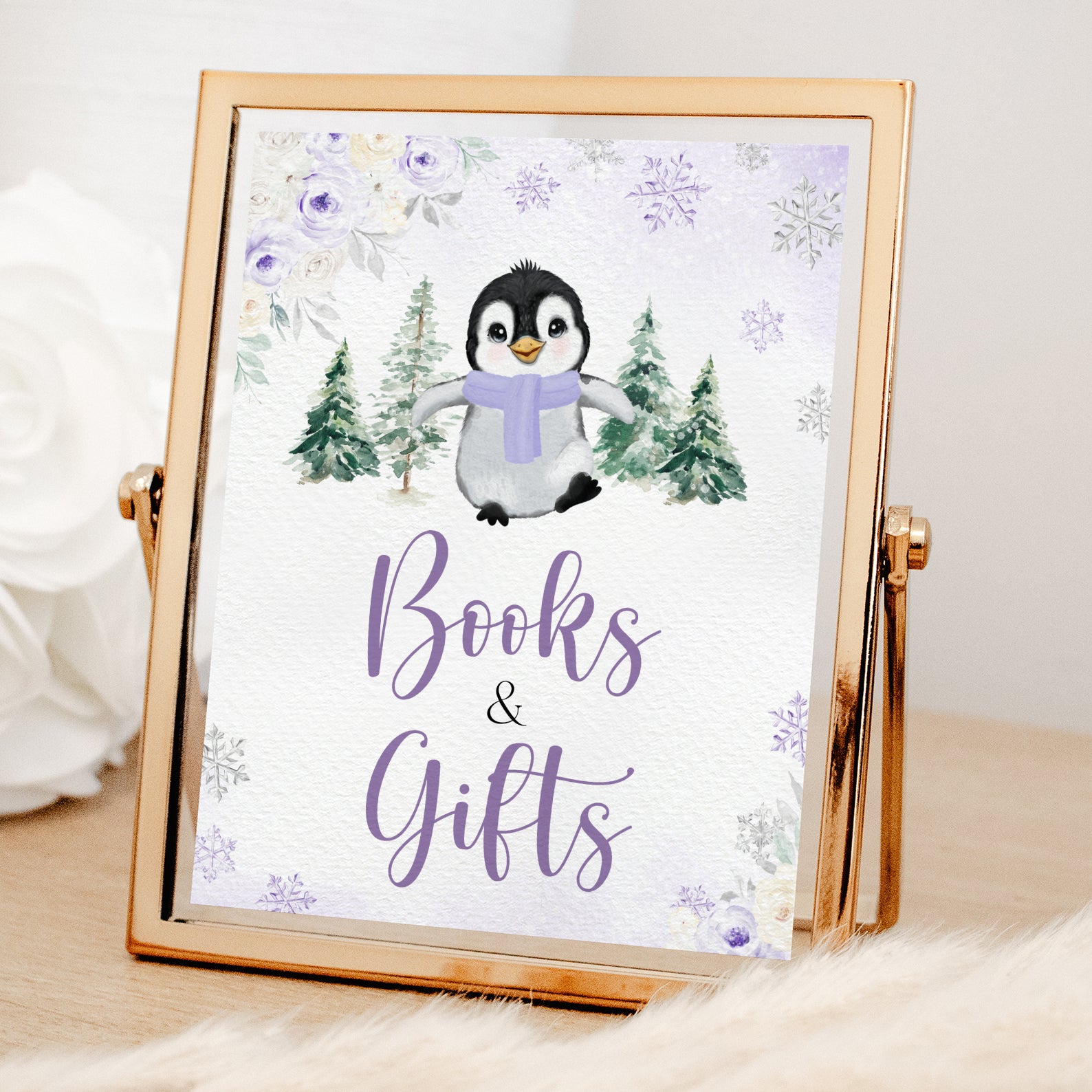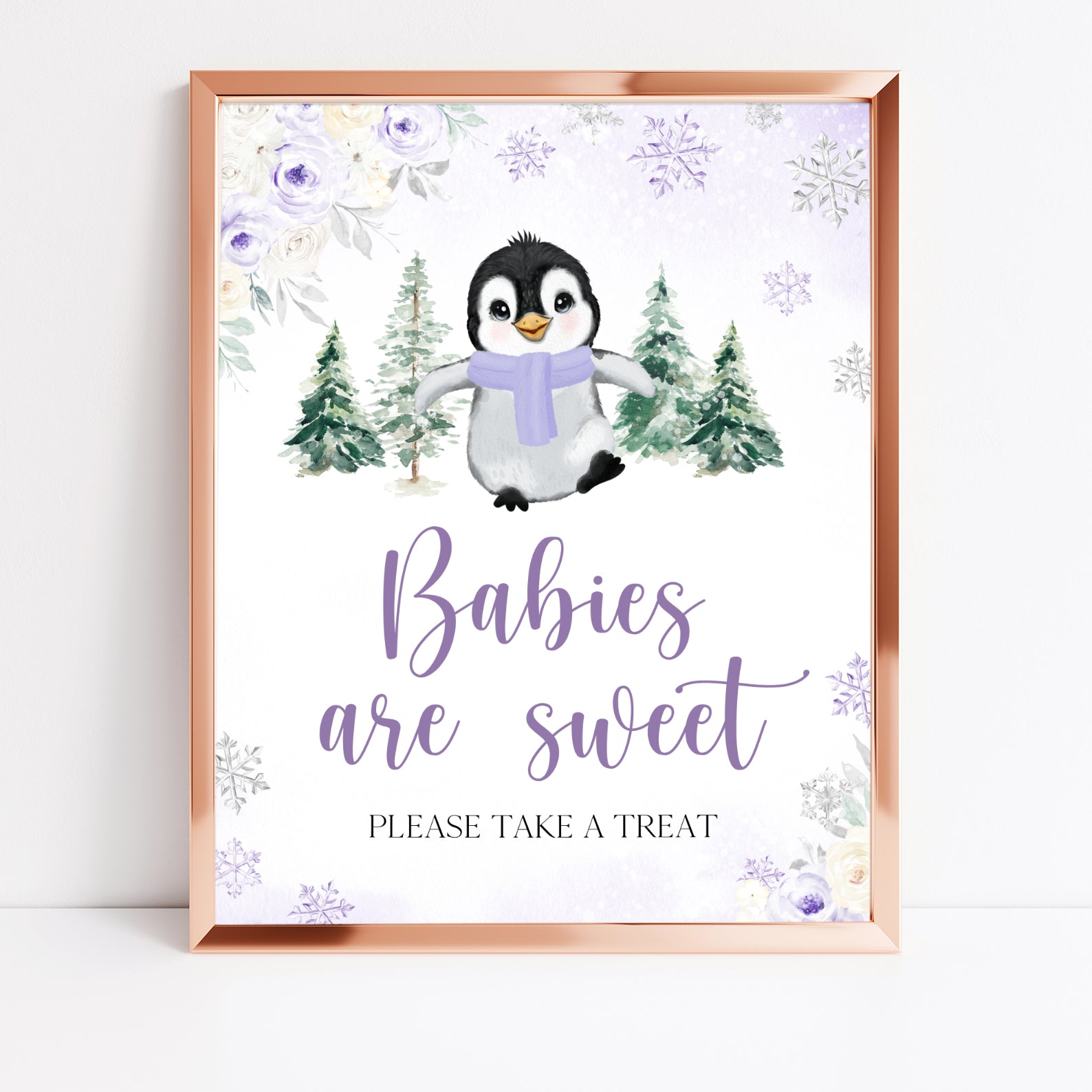 - Purchase this Penguin Baby It's Cold Outside: Winter Baby Shower Purple Table Sign template