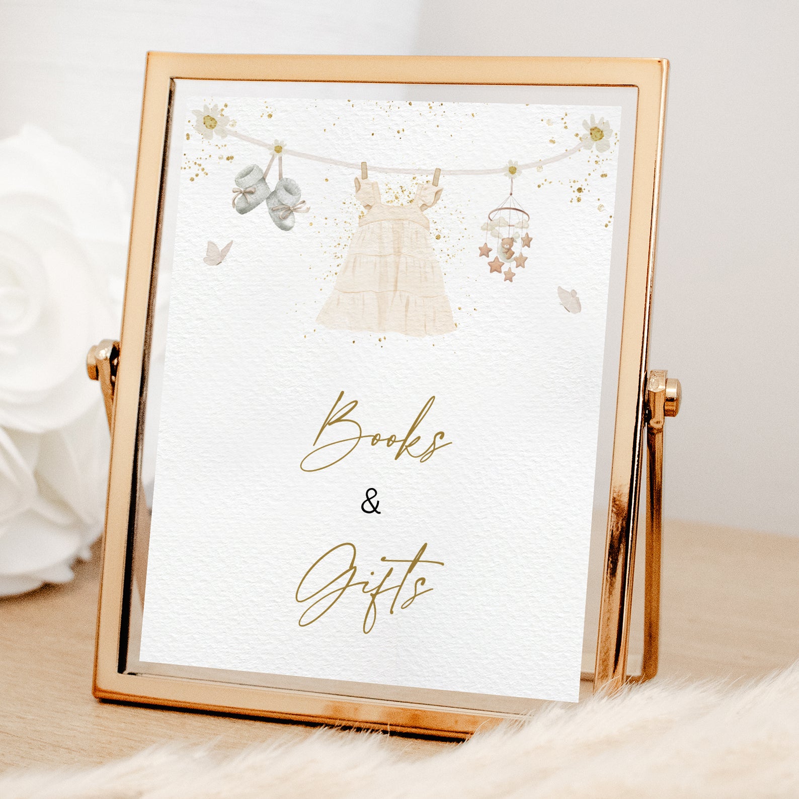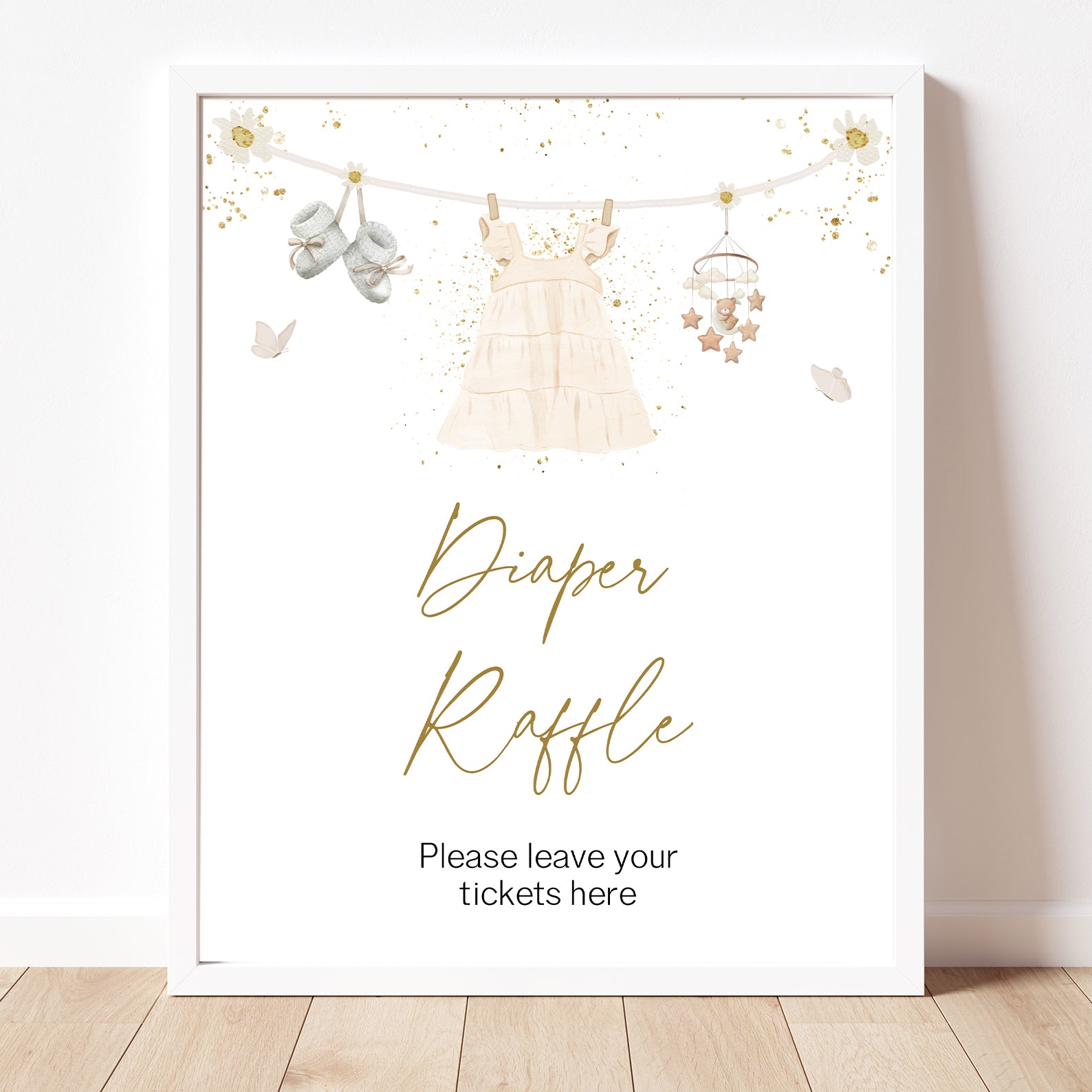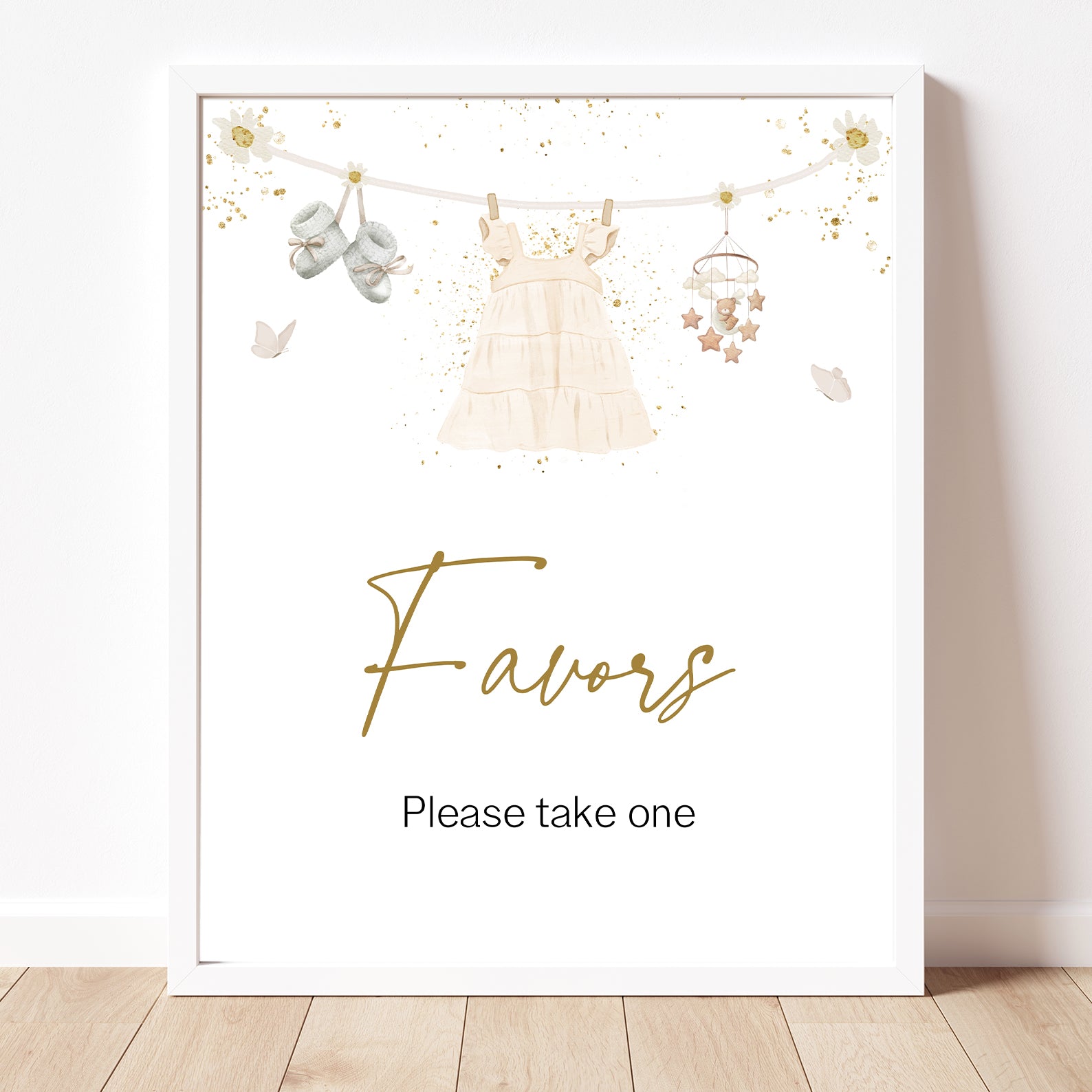 Add a royal touch to your baby shower with these elegant table signs! Featuring delicate baby shoes, a charming baby dress, and a whimsical crib mobile adorned with floral accents, each sign is designed with soft pastel hues, gold glitter sparkles, and fluttering butterflies. This set includes Babies Are Sweet, Books & Gifts, Diaper Raffle, Don't Say Baby, Drinks, Envelope Station, Favors, Food, Late Night Diapers, and Mom-osa Bar—perfect for a magical celebration fit for your little princess!