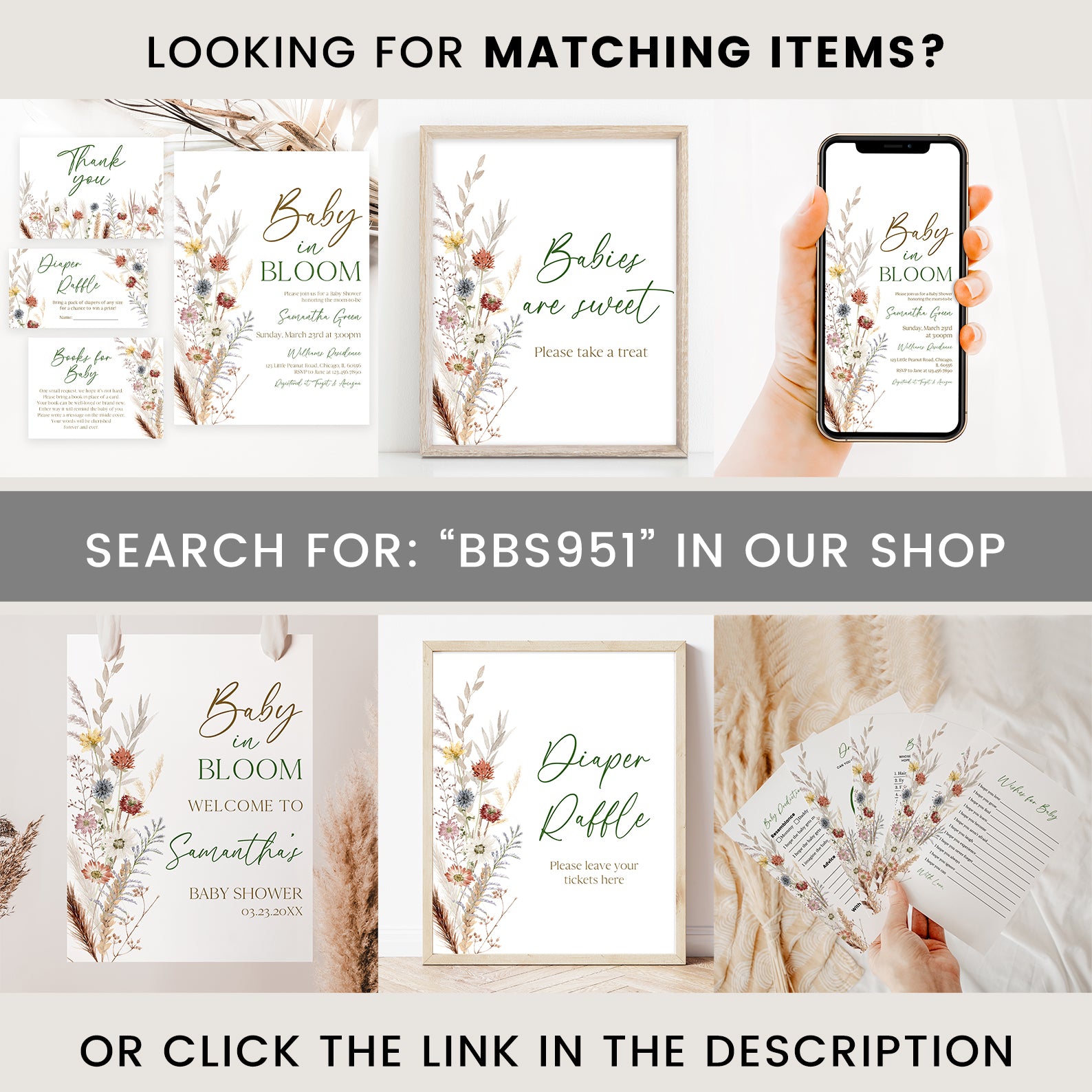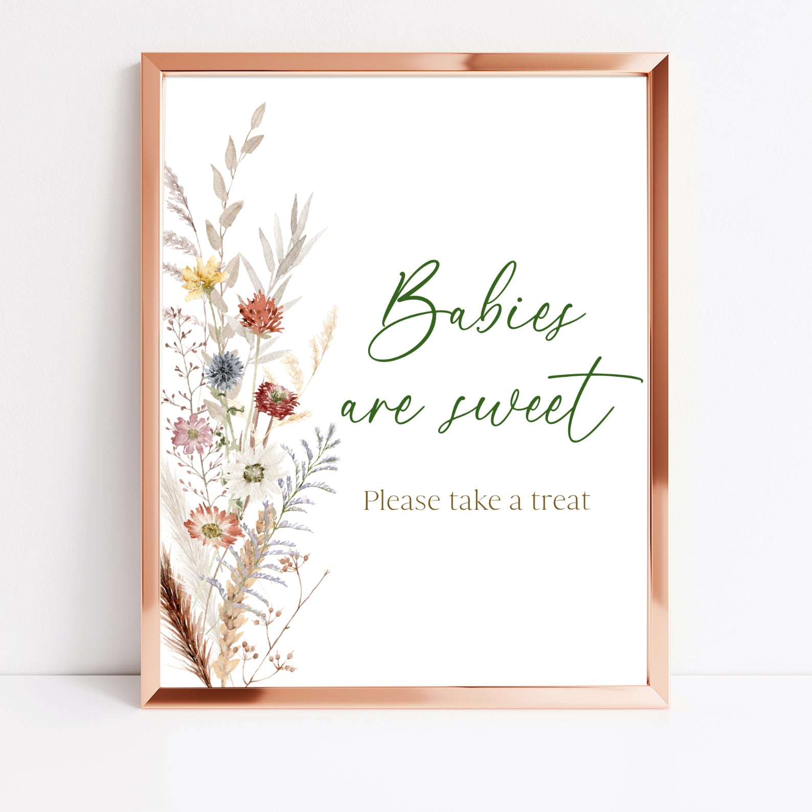 - Purchase this Spring Baby Shower Table Sign with Boho Wildflower Bouquet Design template