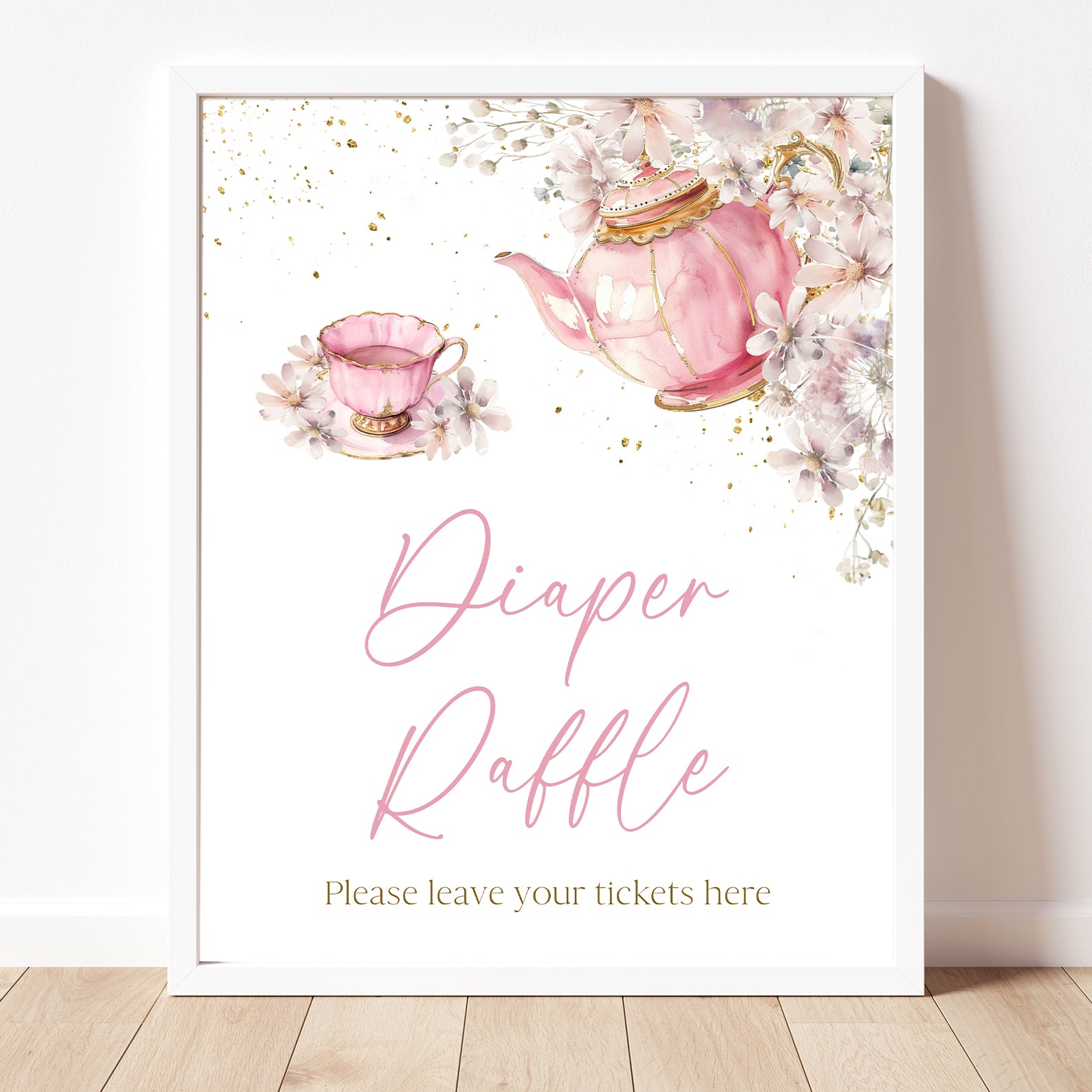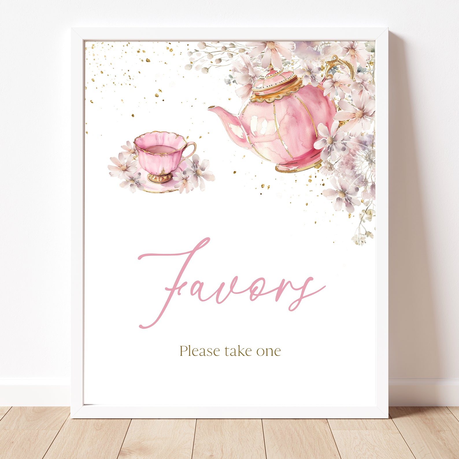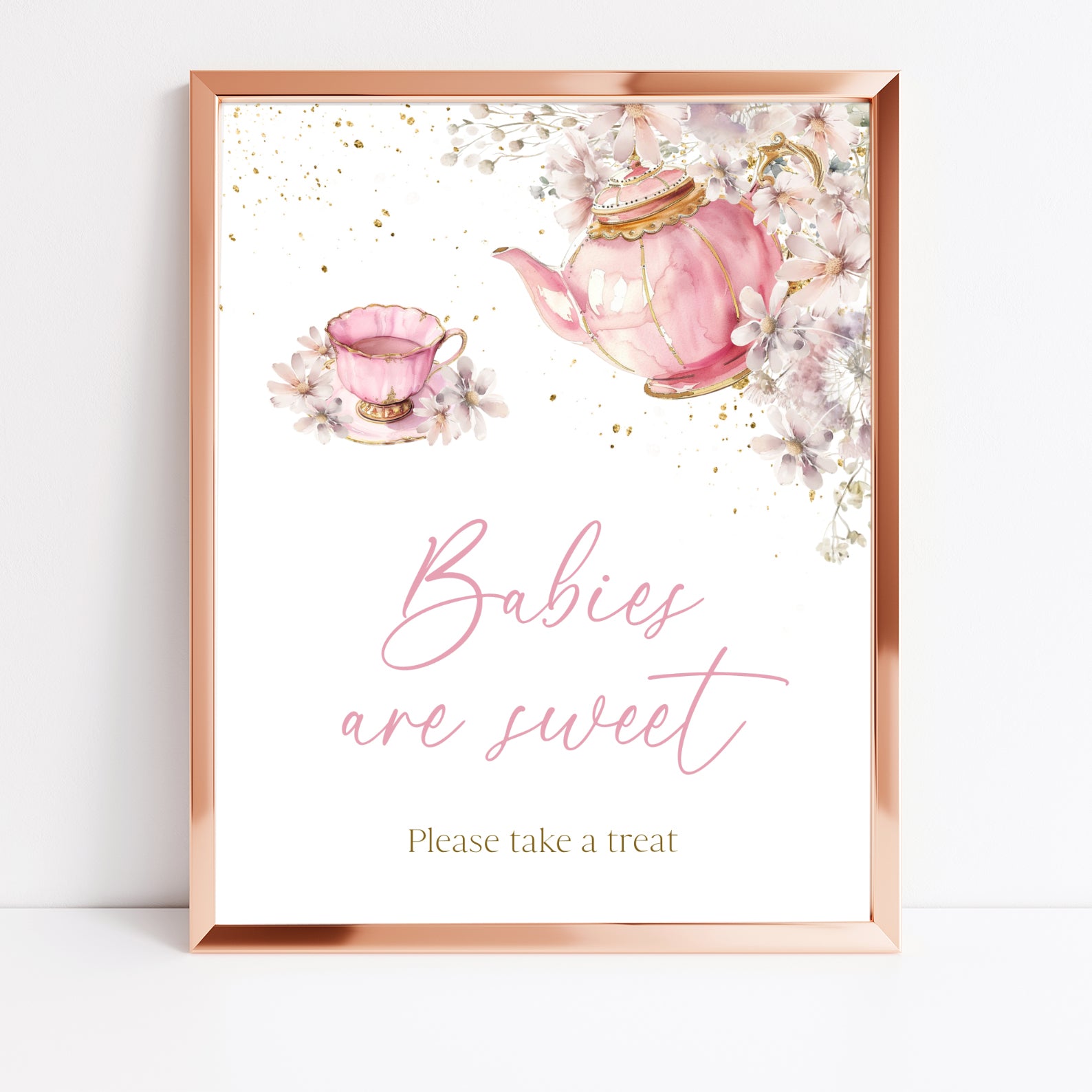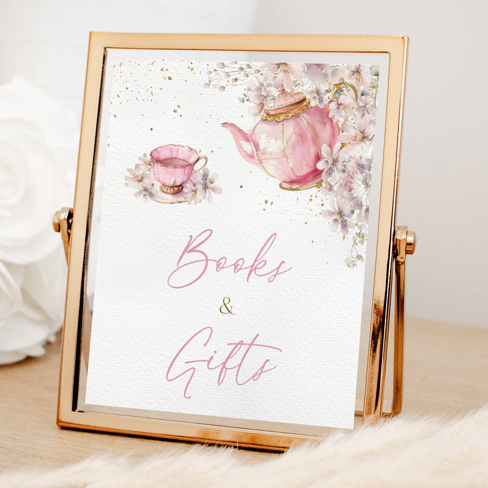 - Purchase this Spring Tea Party Baby Shower Table Sign with Pink Teapot & Gold template