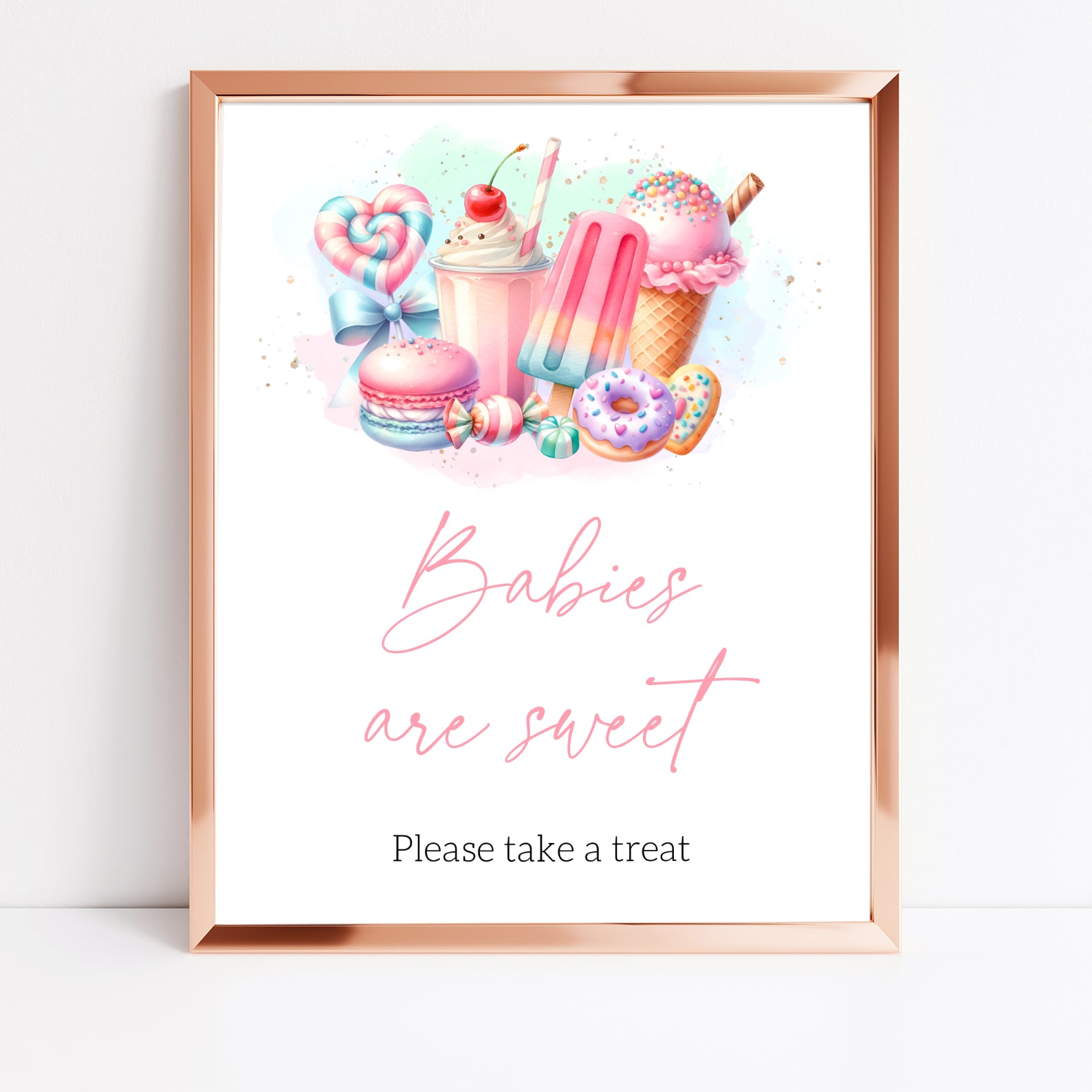 - Purchase this Summer Baby Shower Table Sign with Sweet Treats & Gold Accents template