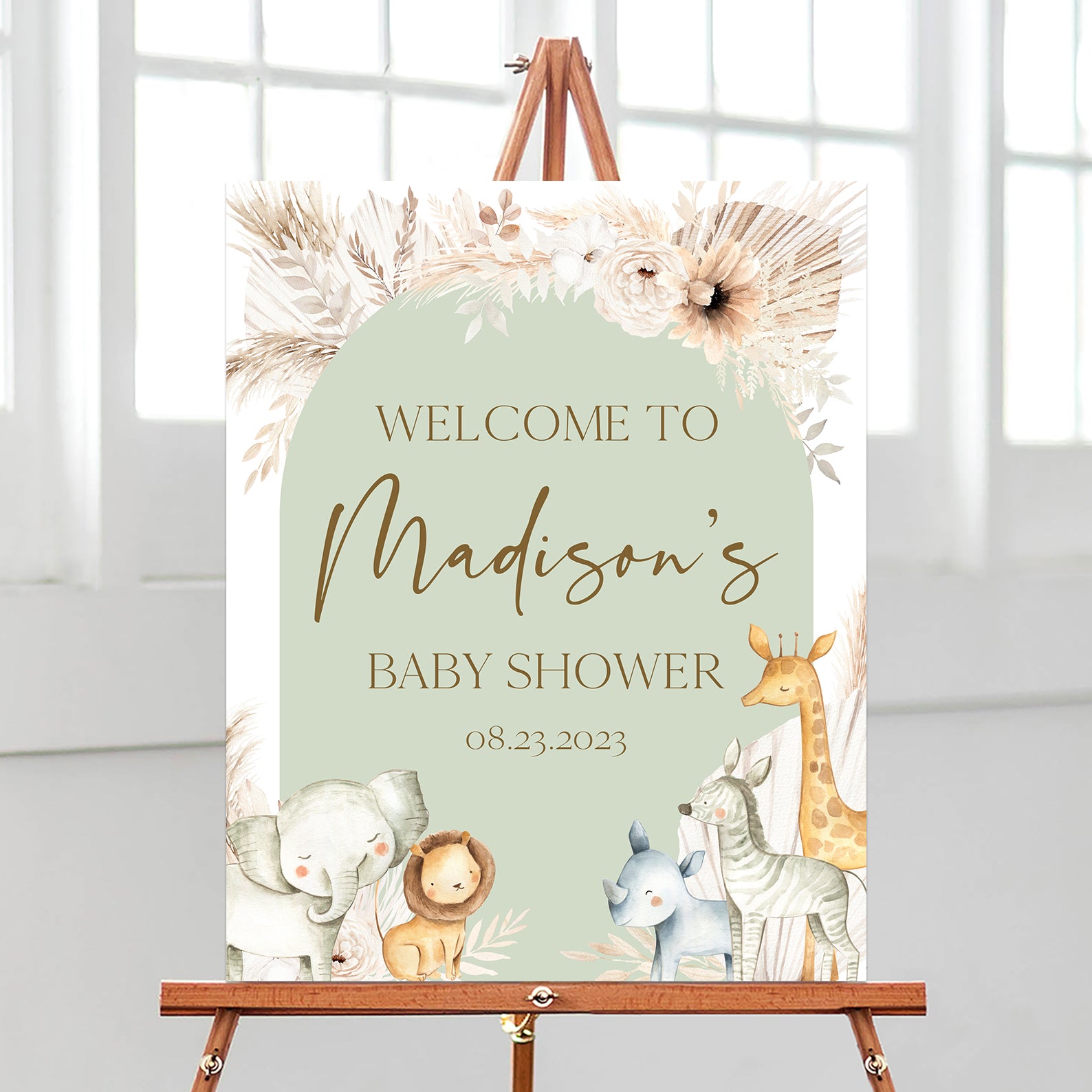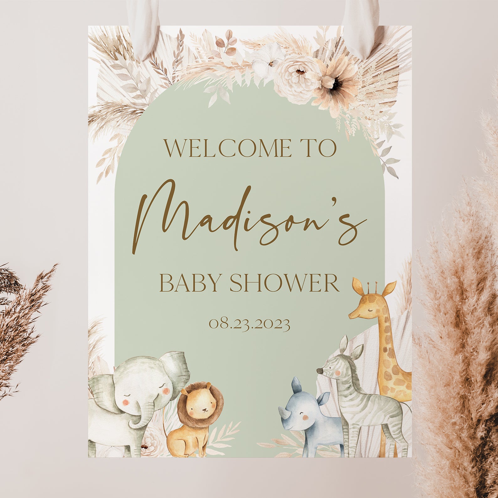 - Purchase this Hello Baby Shower Welcome Sign with Safari Animals & Florals template