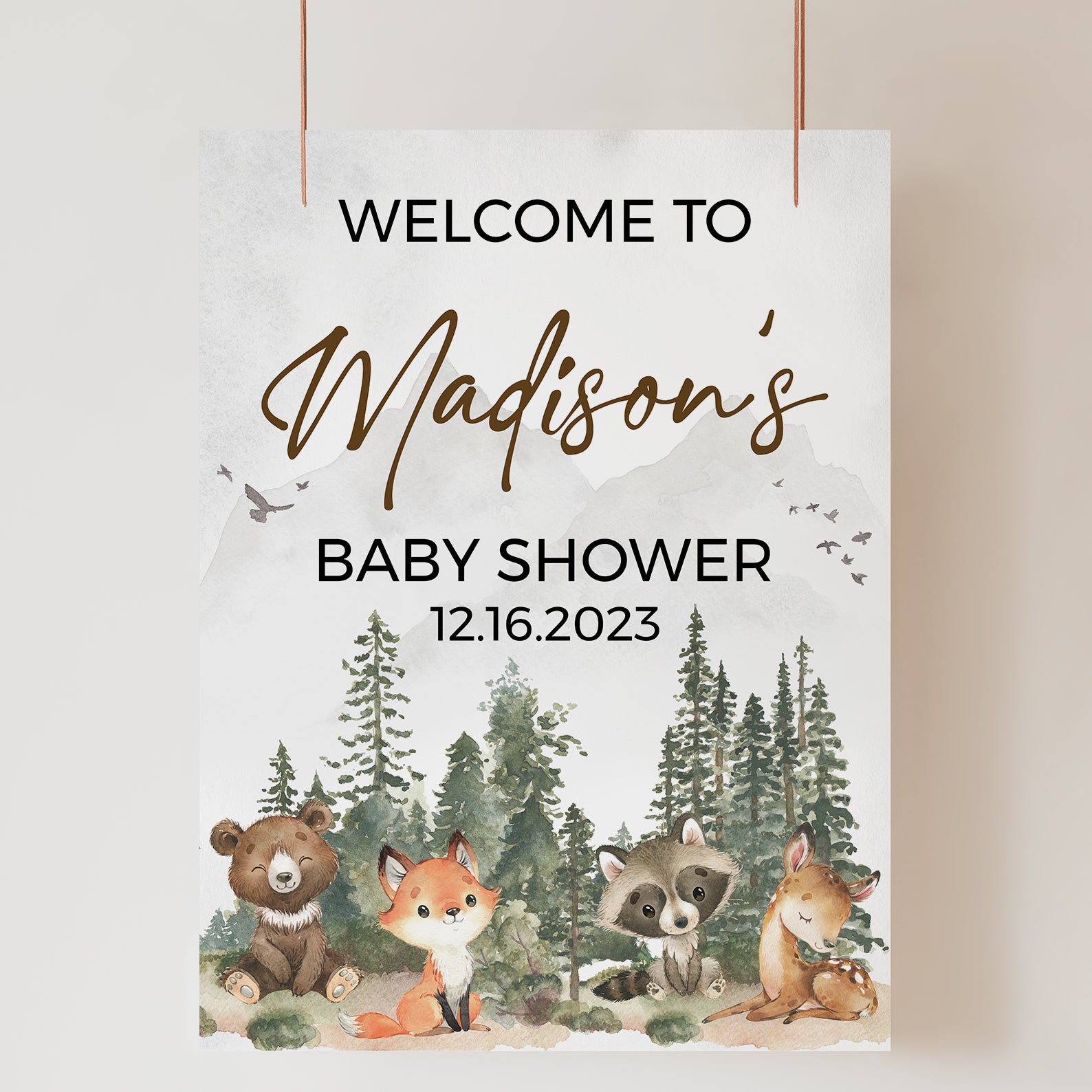 - Purchase this Woodland Baby Shower Welcome Sign: Oh Boy Adventure Theme template