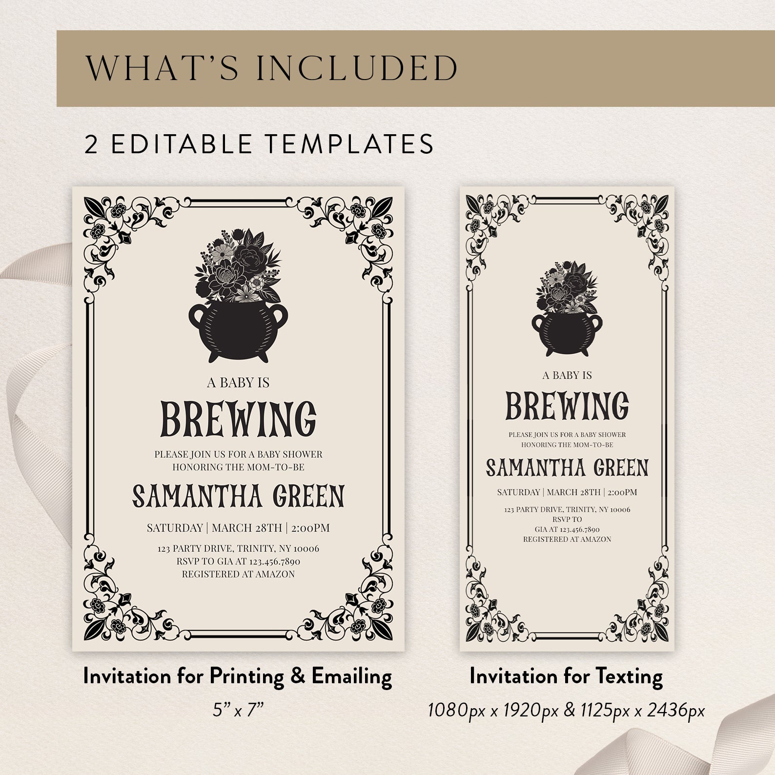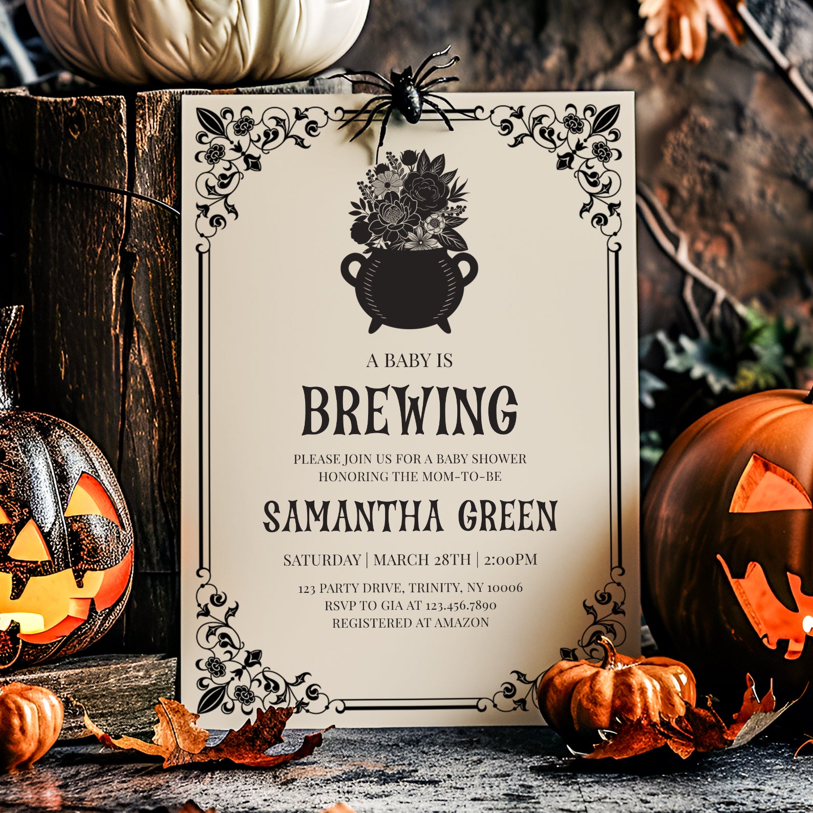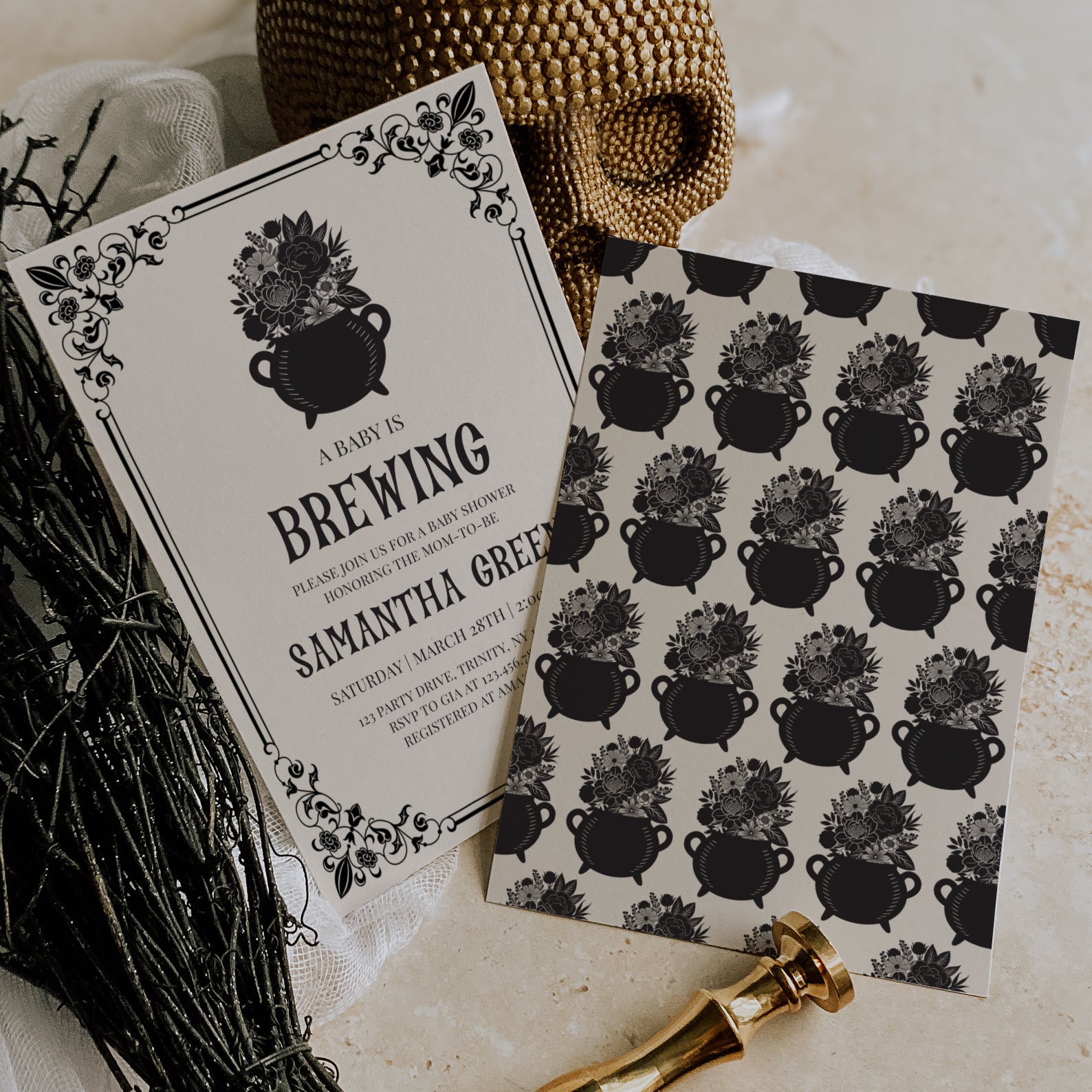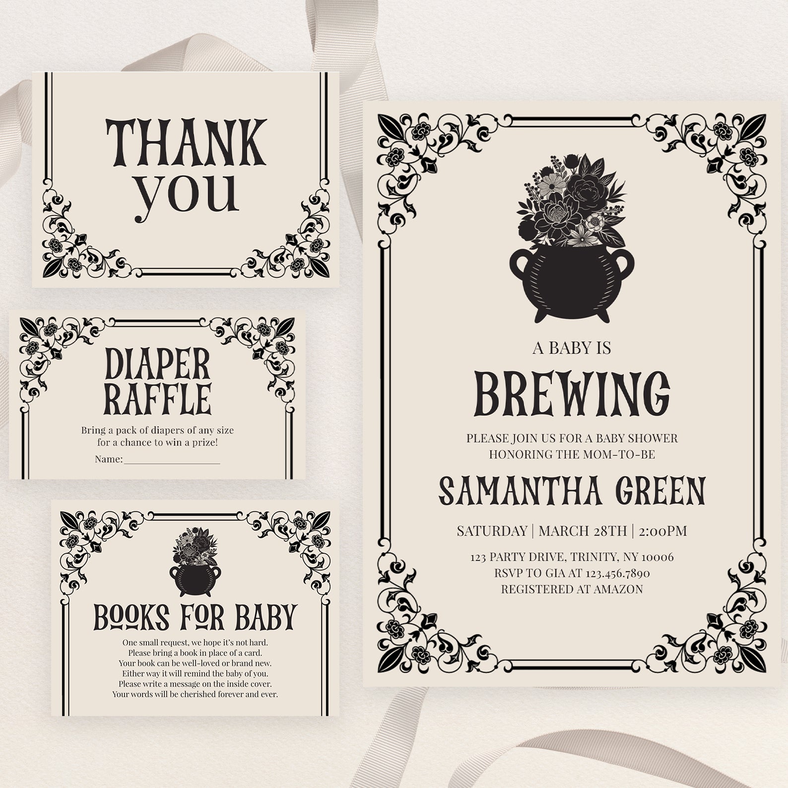 - Purchase this A Baby Is Brewing Gothic Halloween Shower Invitation Bundle template