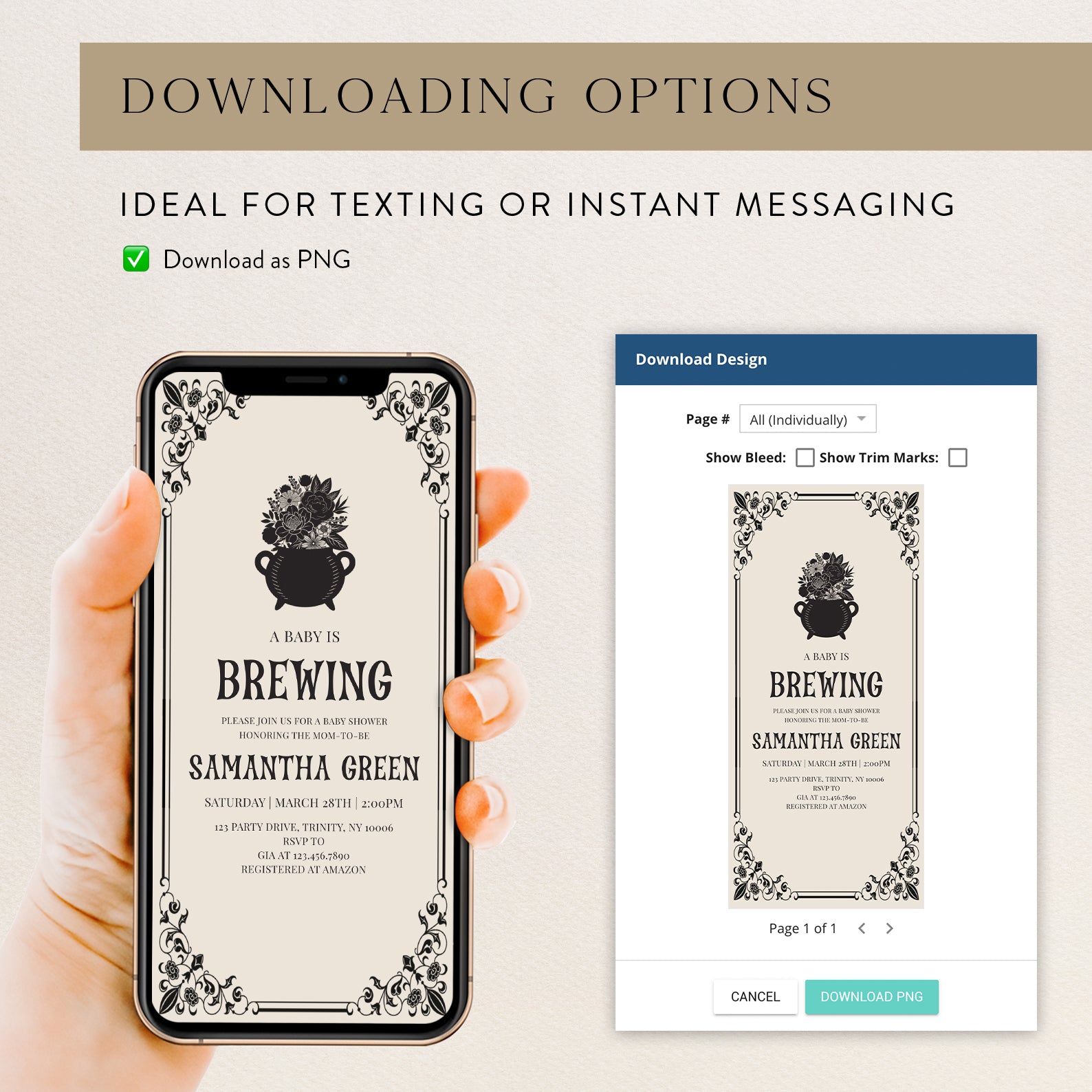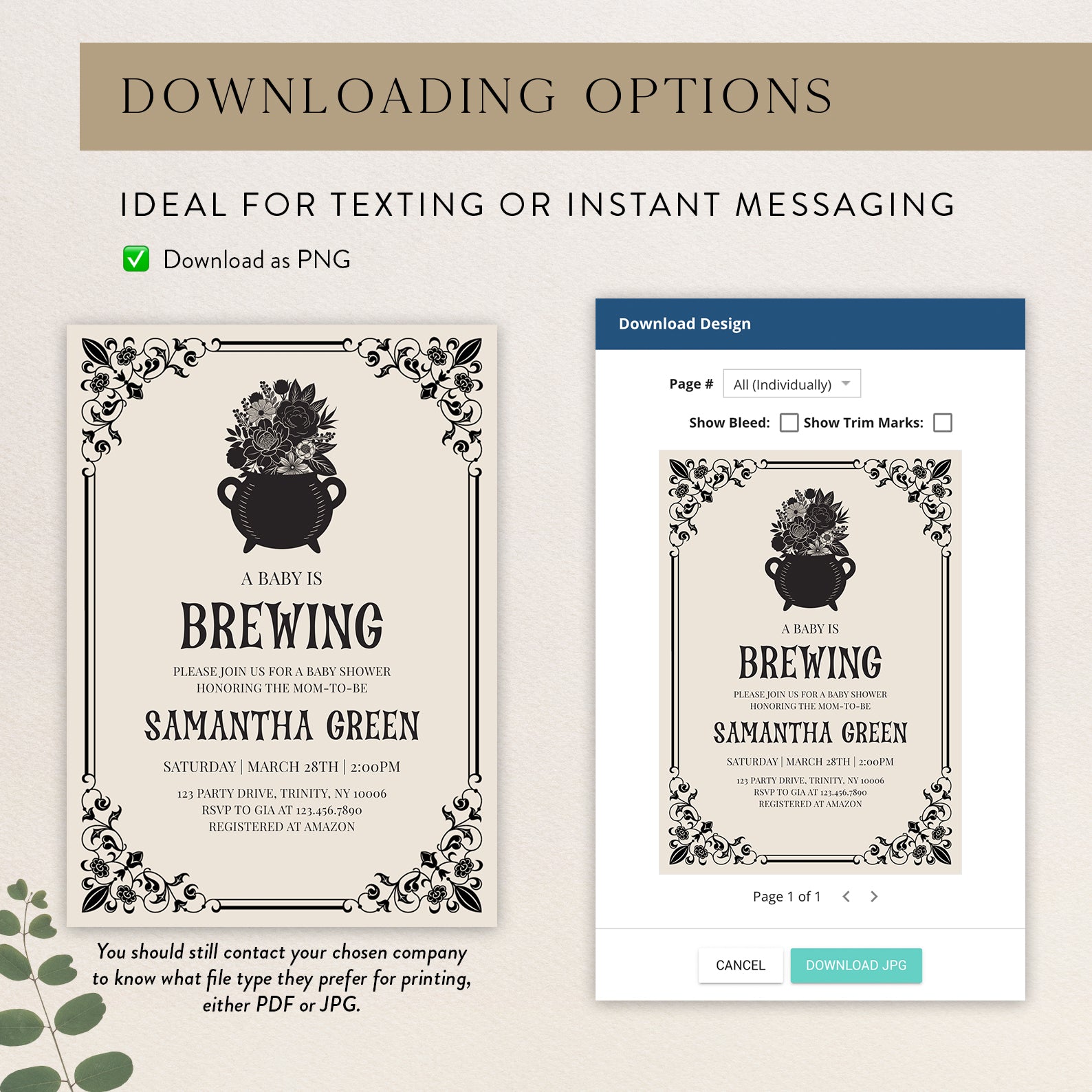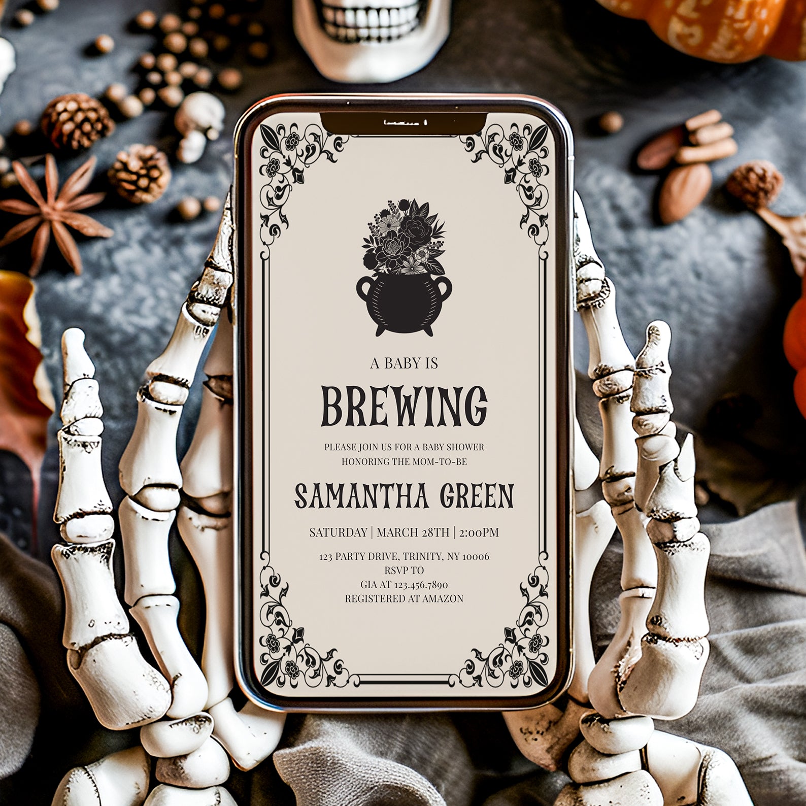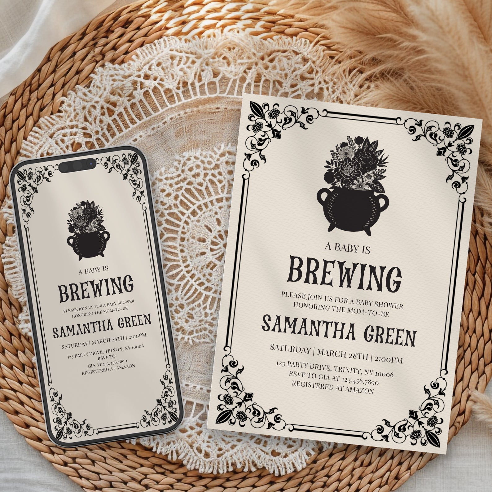 - Purchase this A Baby Is Brewing Gothic Halloween Shower Invitation Bundle template