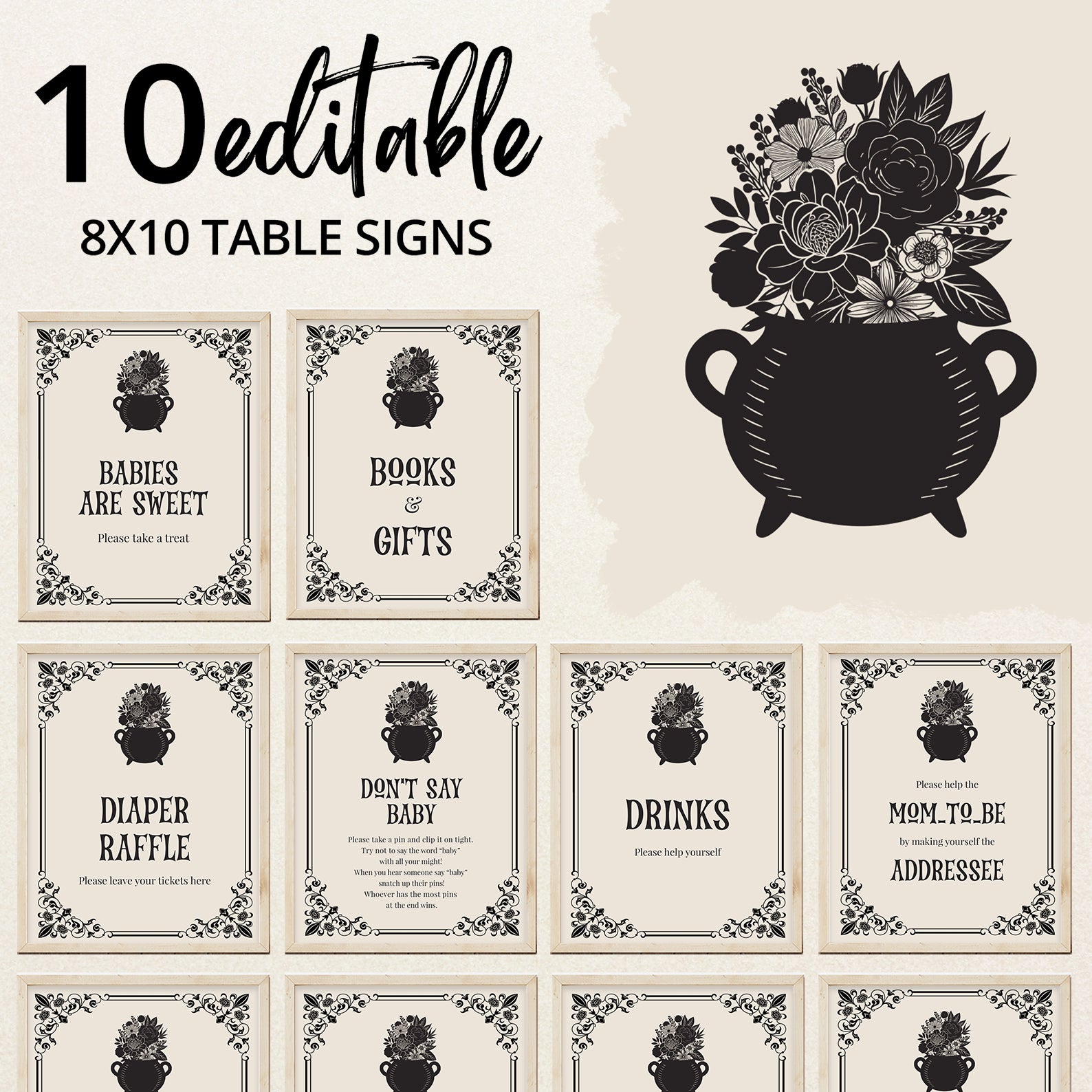 - Purchase this A Baby Is Brewing Gothic Halloween Shower Table Sign template