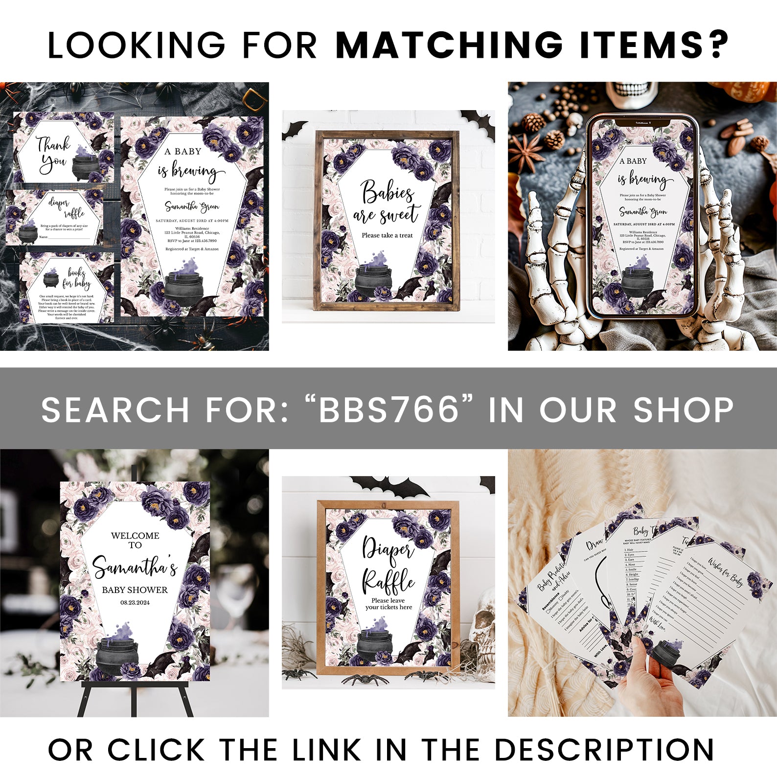 Add a touch of magic to your baby shower with our 'A Baby is Brewing' table sign! This charming design features a unique coffin shape with a whimsical cauldron bubbling with vibrant purple potion and surrounded by playful bats. The backdrop is adorned with delicate watercolor roses in shades of purple and rosewater pink, creating an enchanting atmosphere. Perfect for guiding guests or labeling special areas, this table sign sets the tone for a memorable and spellbinding celebration!