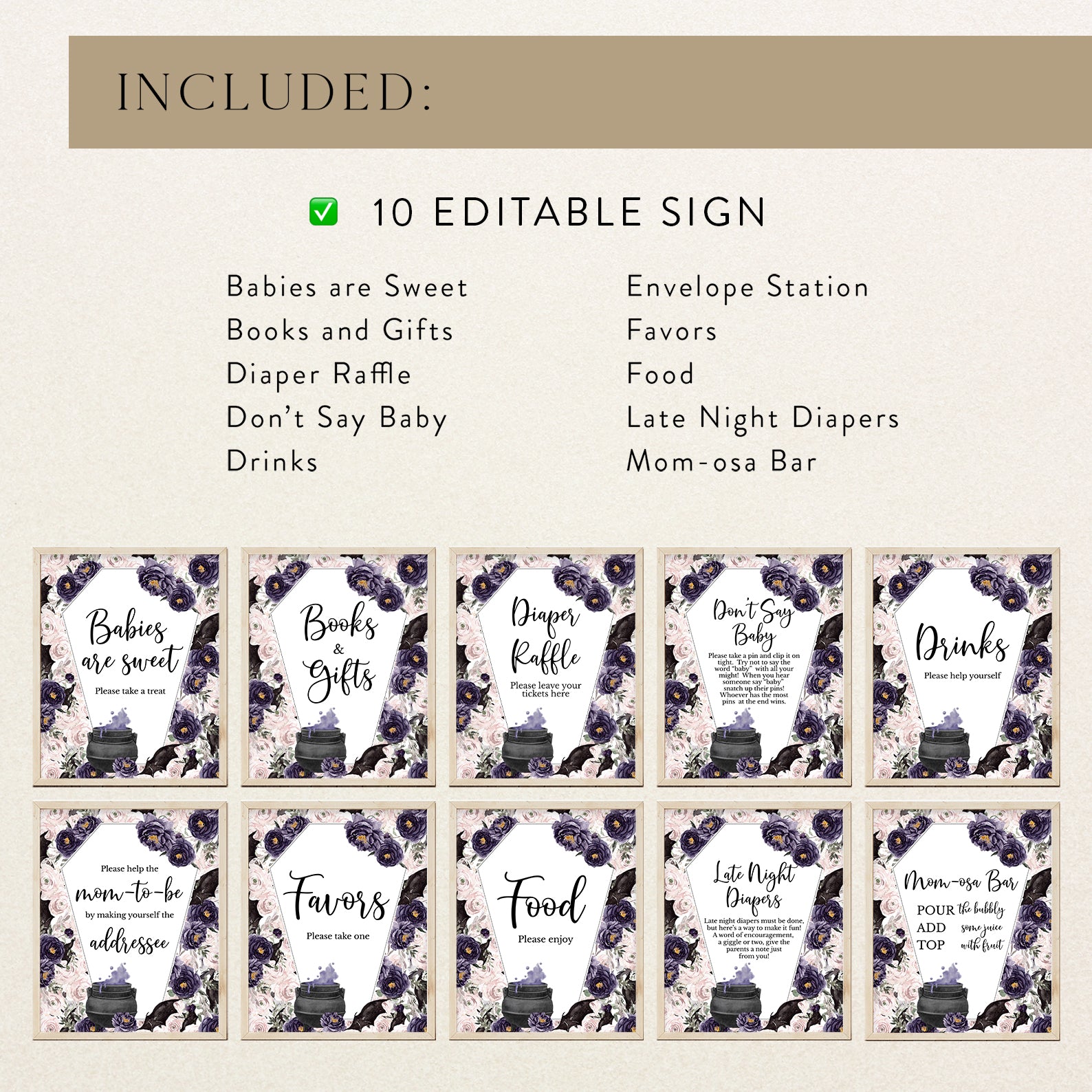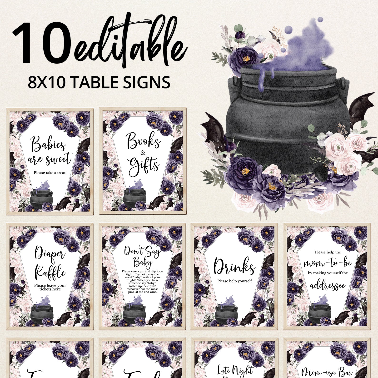 - Purchase this Coffin-Shaped Baby Table Sign: Cauldron, Bats & Rosewater Roses template