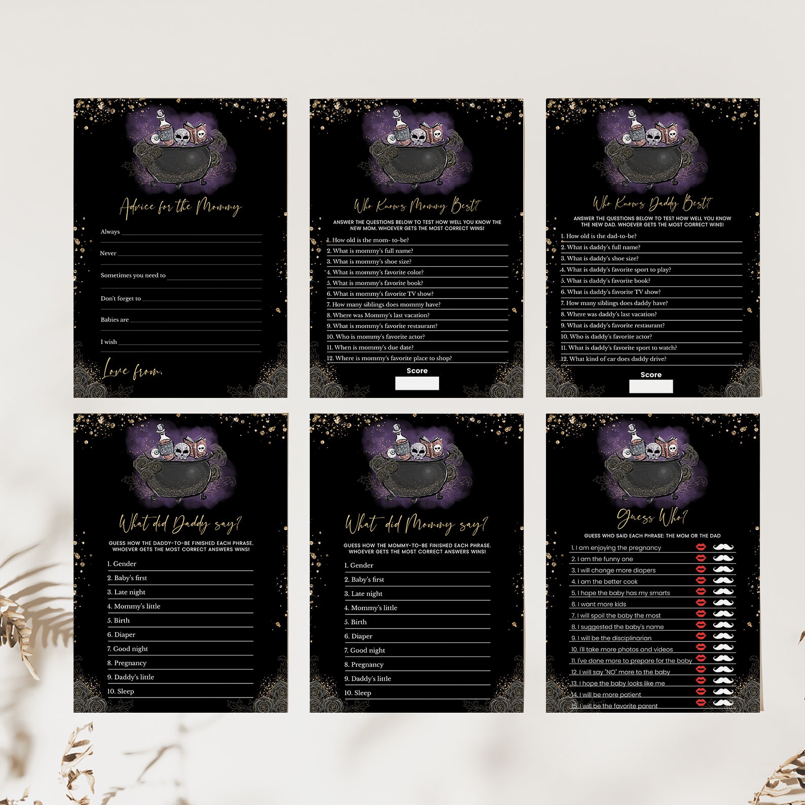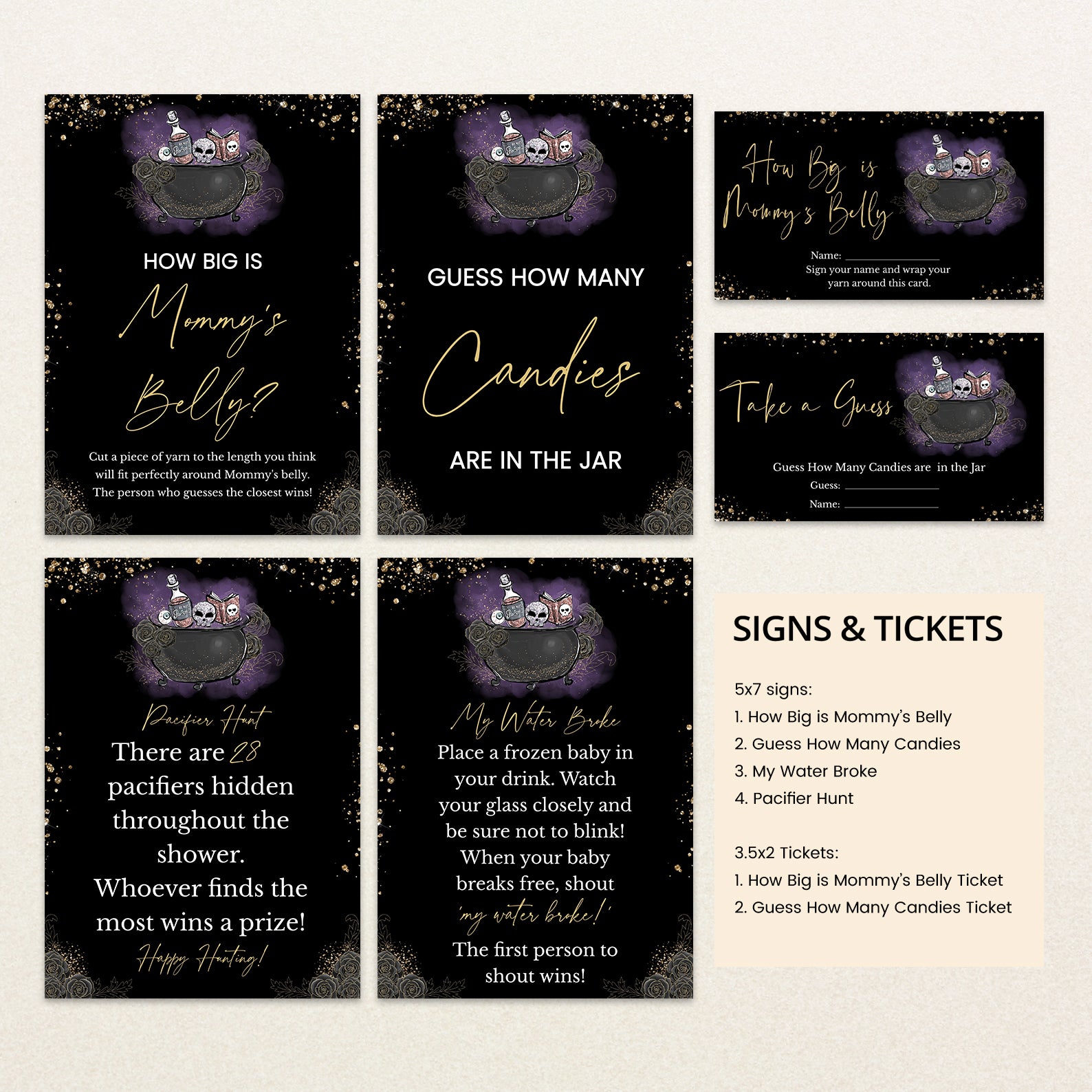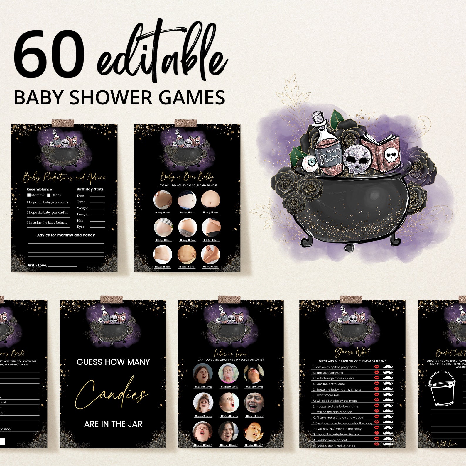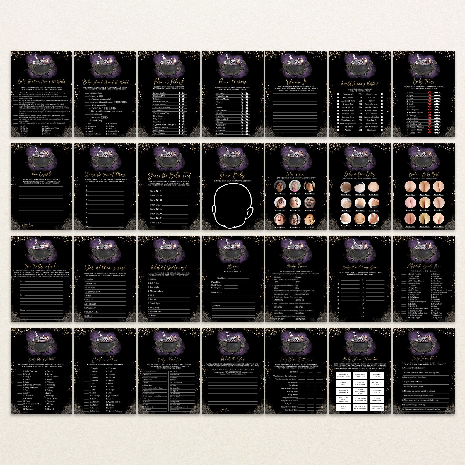 Perfect for setting a whimsical tone, each game is customizable to fit your unique style and theme. Your guests will be captivated by the blend of charm and elegance, making your Halloween baby shower an unforgettable occasion filled with magical fun. Celebrate the arrival of your little one with a touch of Halloween magic using our game bundle!