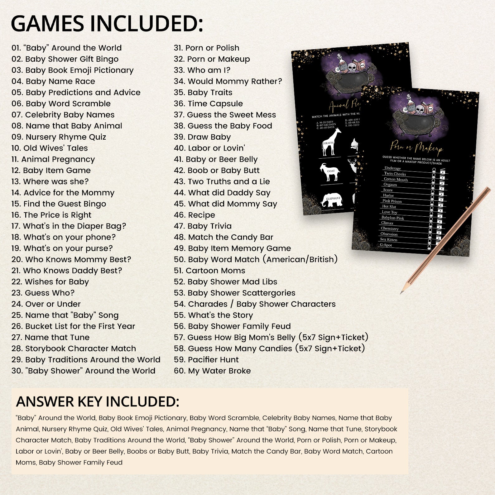 Elegant Baby Shower Game Bundle: Brewing with Magic Spell
