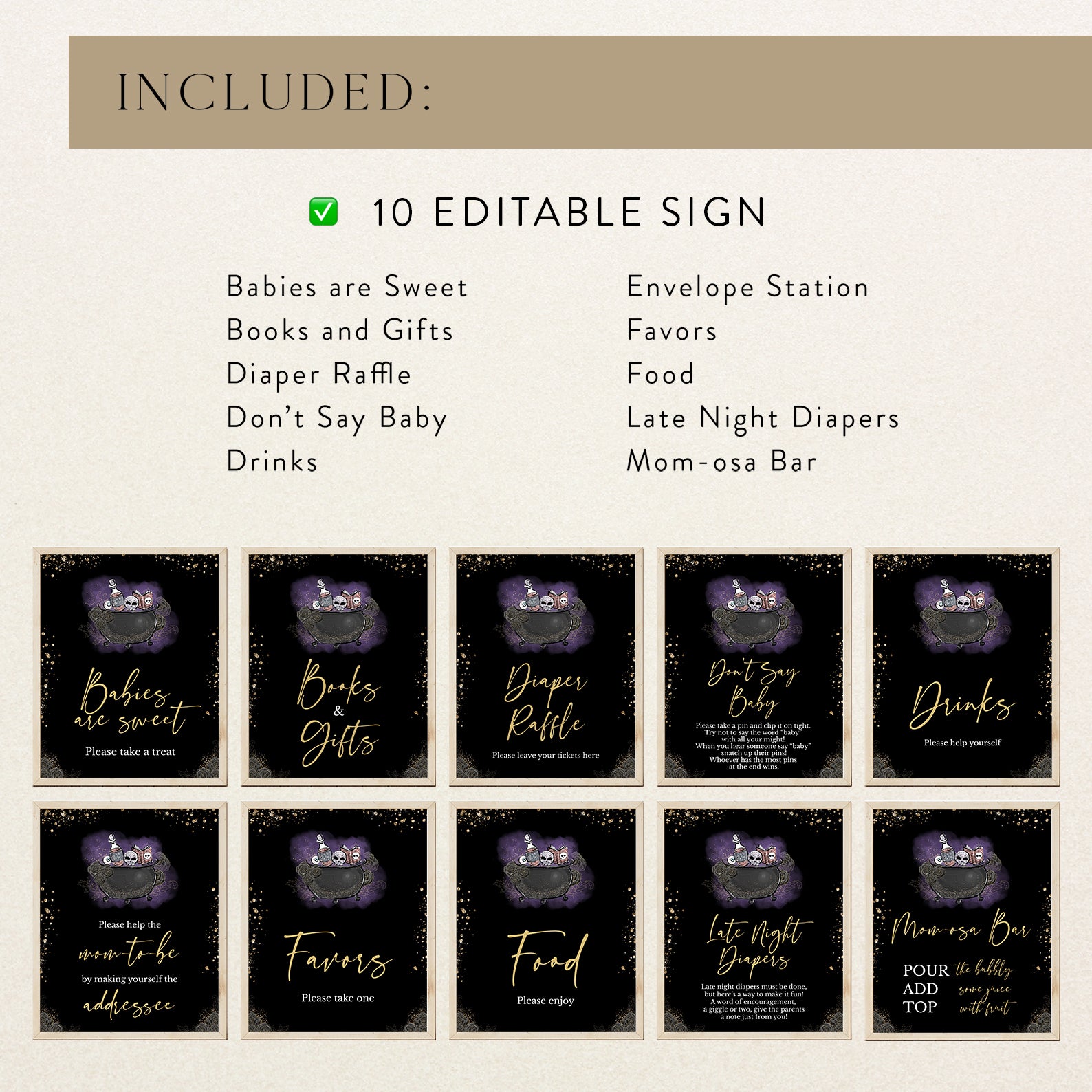 - Purchase this Elegant Baby Shower Table Sign: Brewing with Magic Spell template
