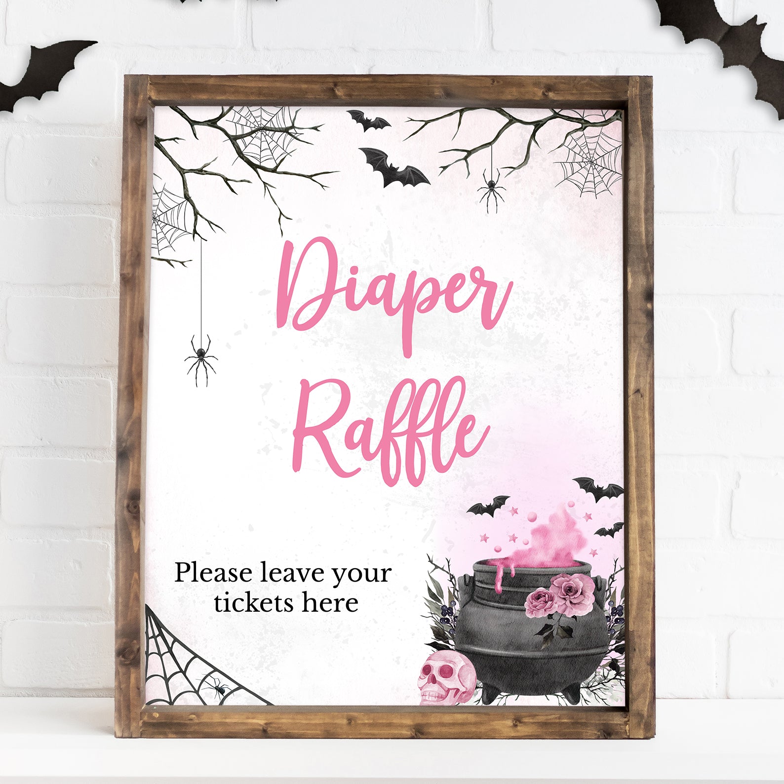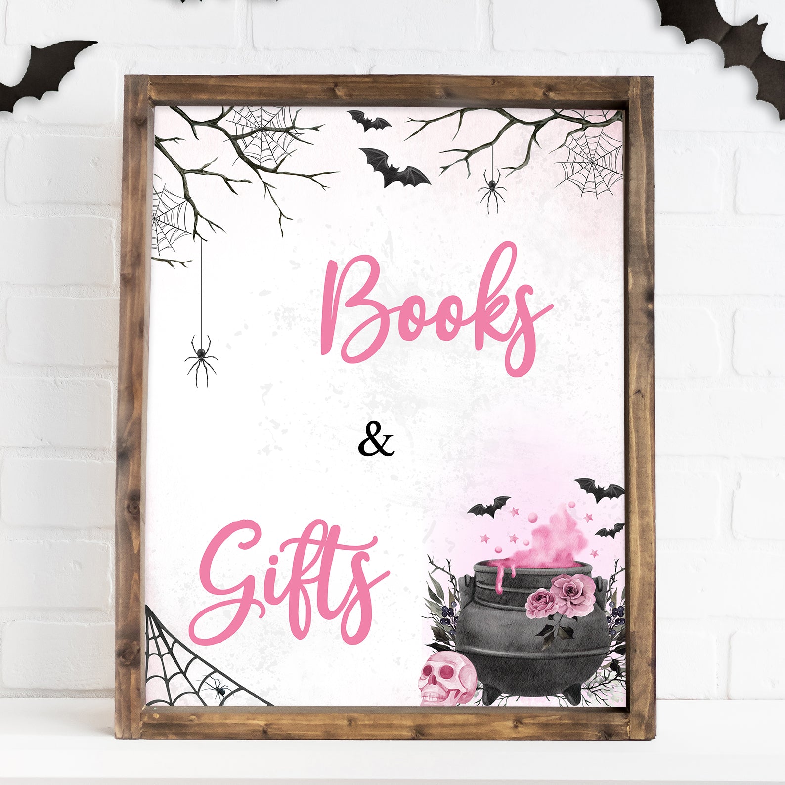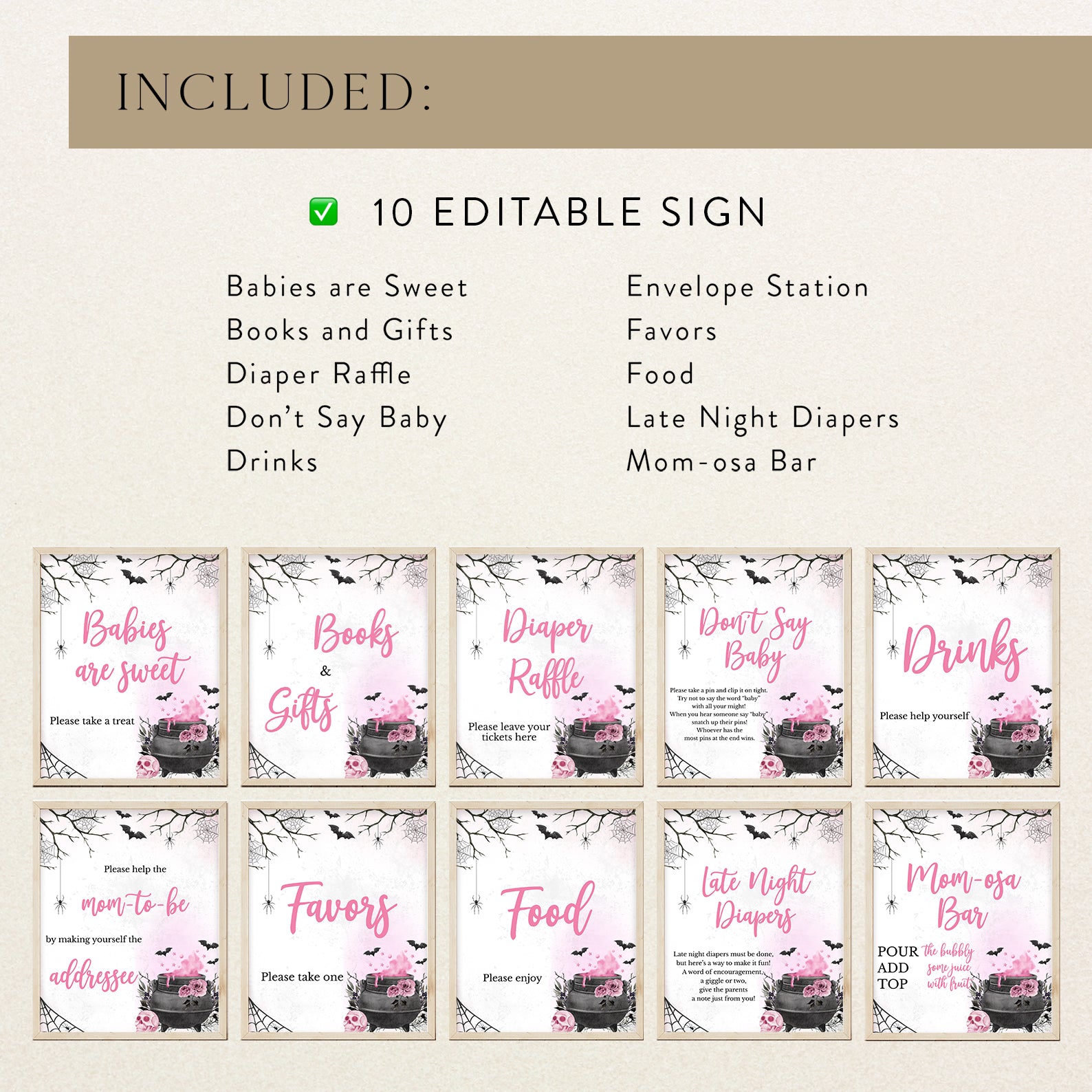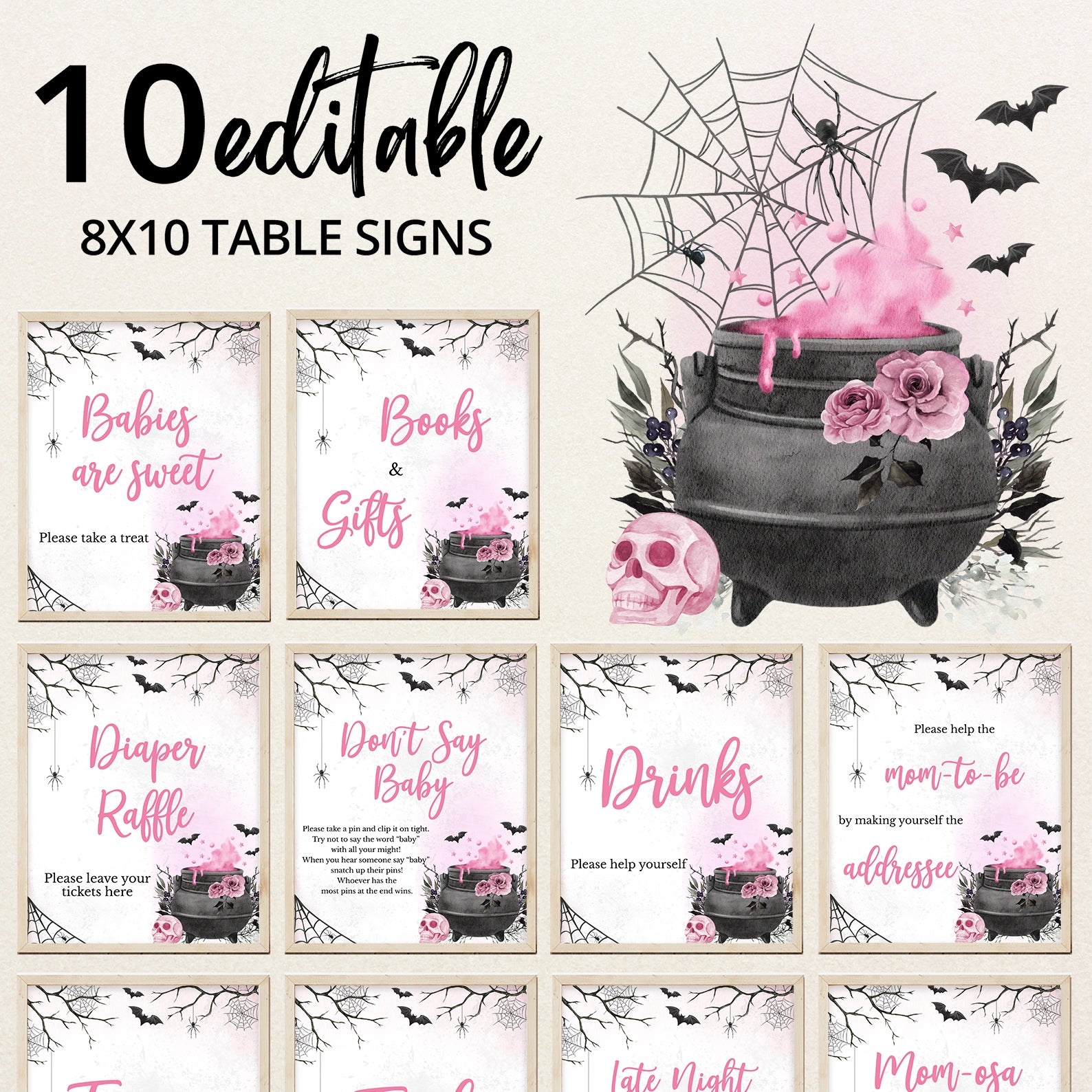 - Purchase this Pink Digital Table Sign: 'A Baby is Brewing' with Spooky Cauldron Fun template
