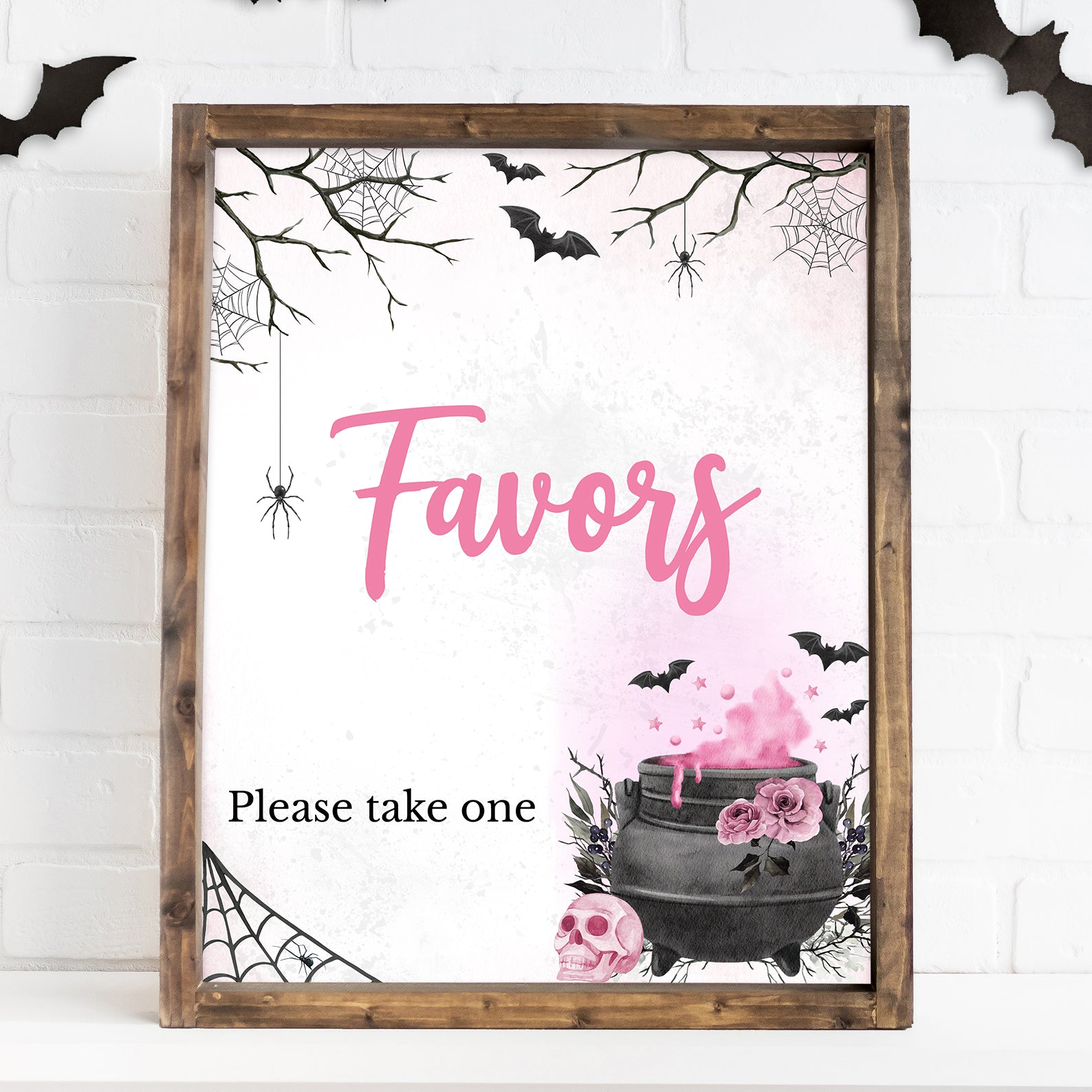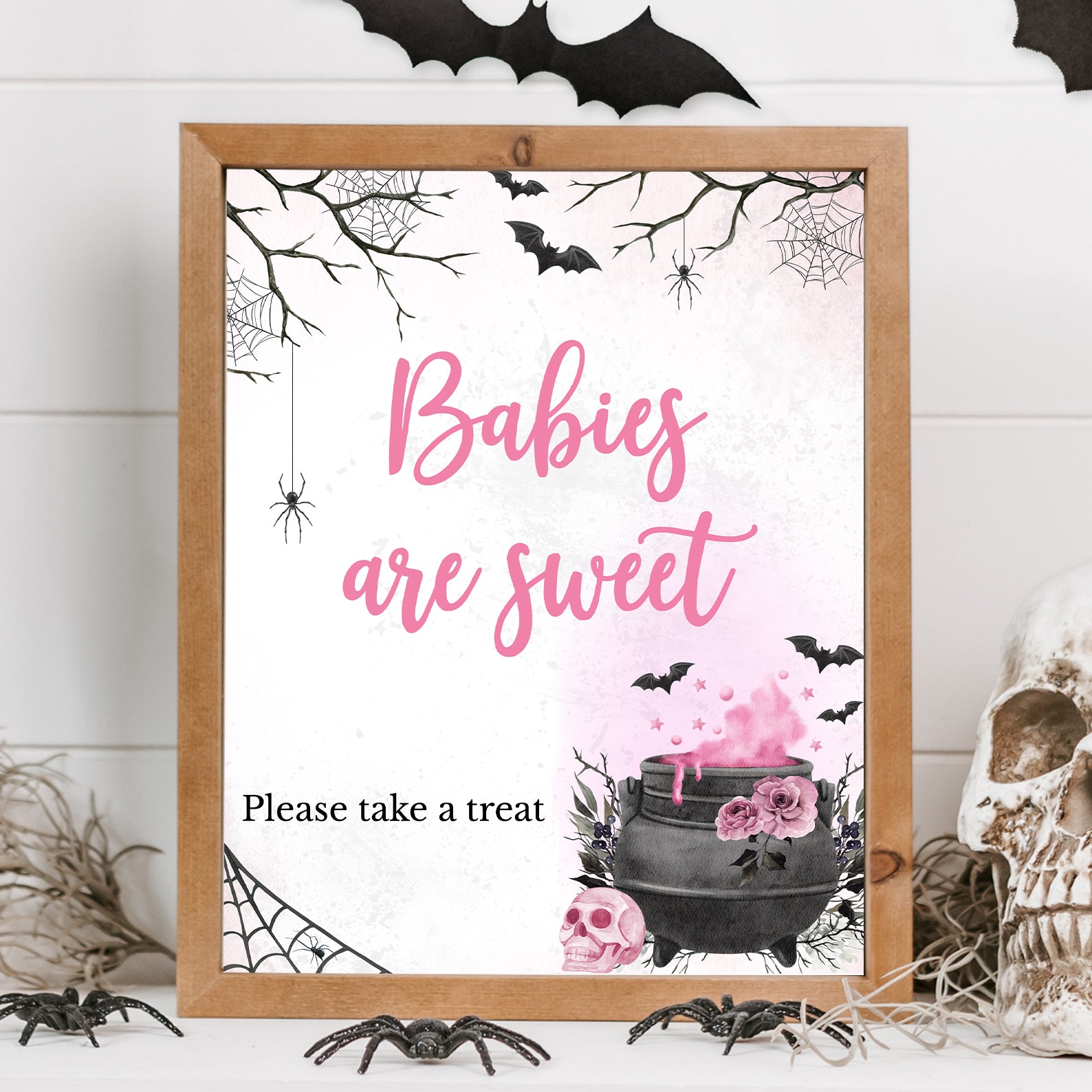 Pink Digital Table Sign: 'A Baby is Brewing' with Spooky Cauldron Fun