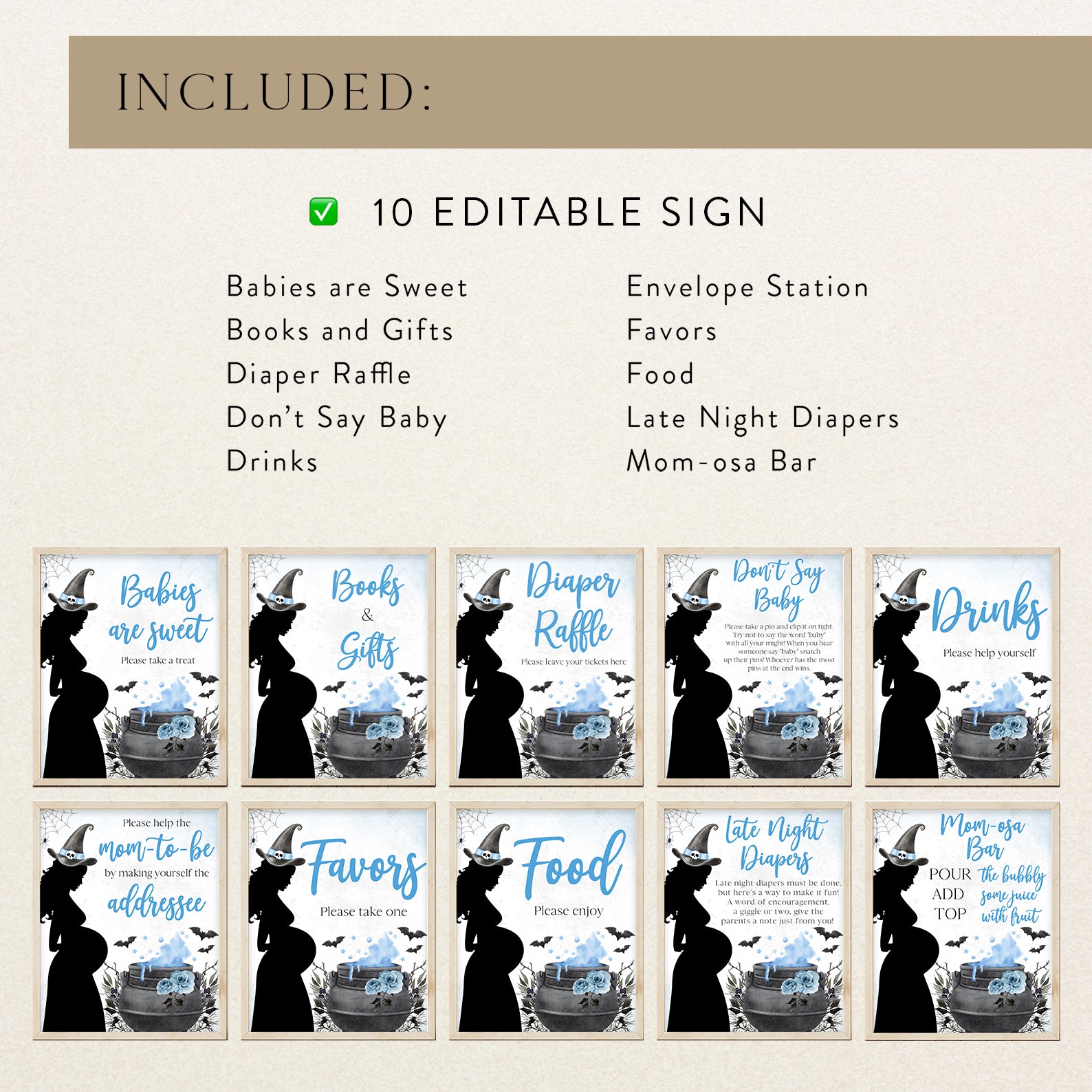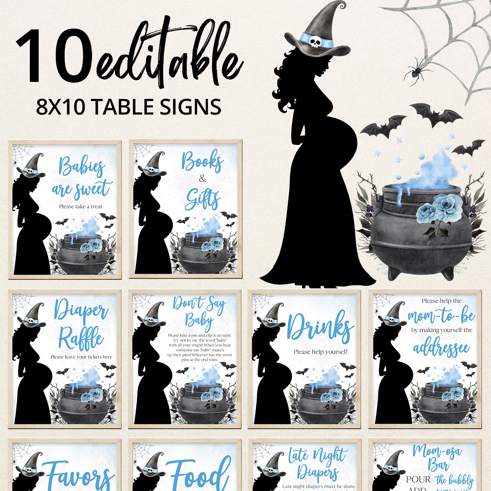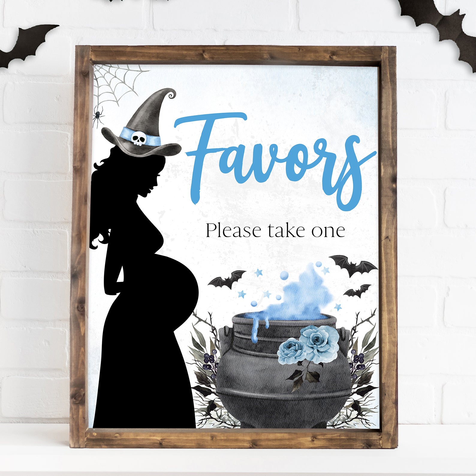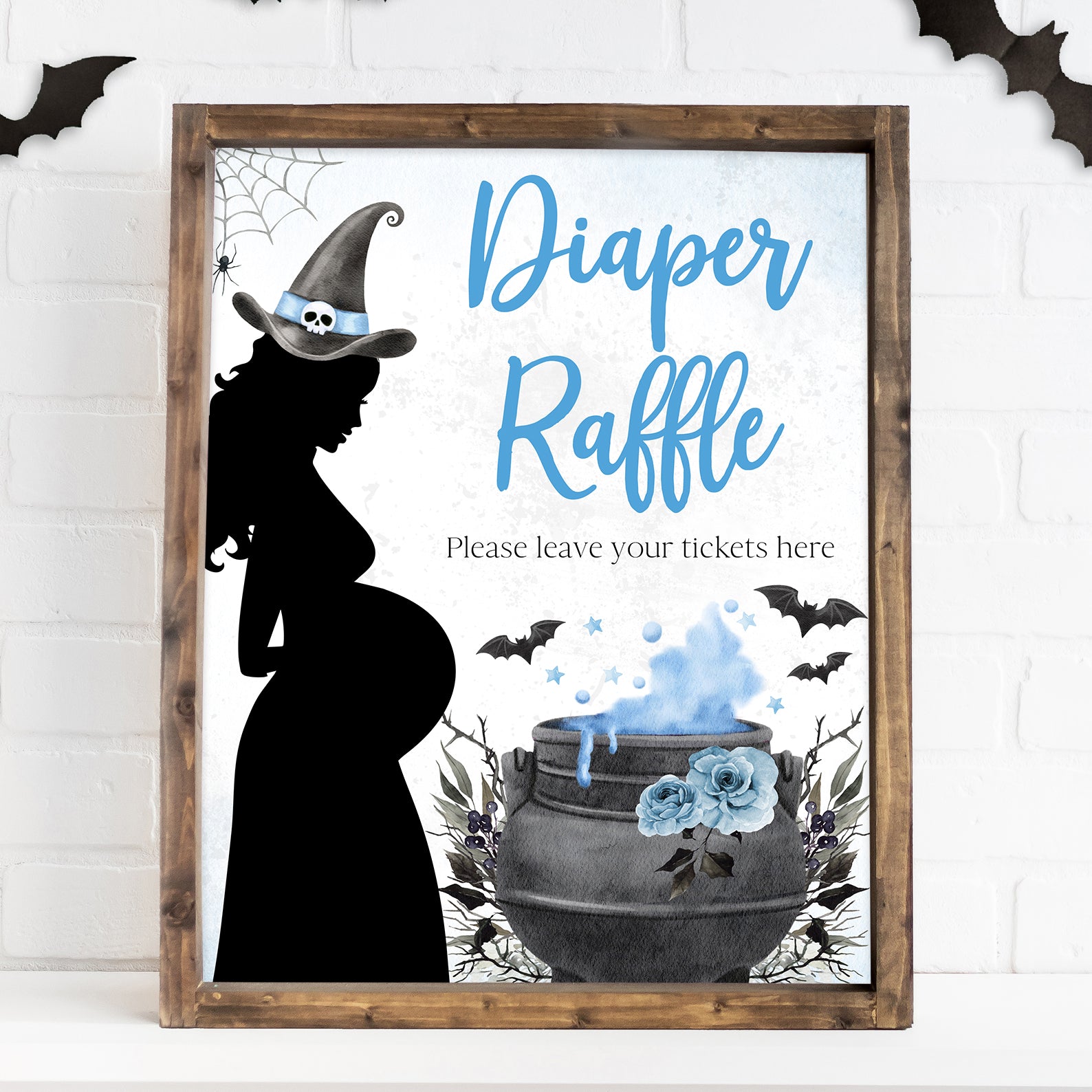 1. Purchase this Spellbinding Blue Baby Shower Table Sign: Pregnant Witch & Cauldron template