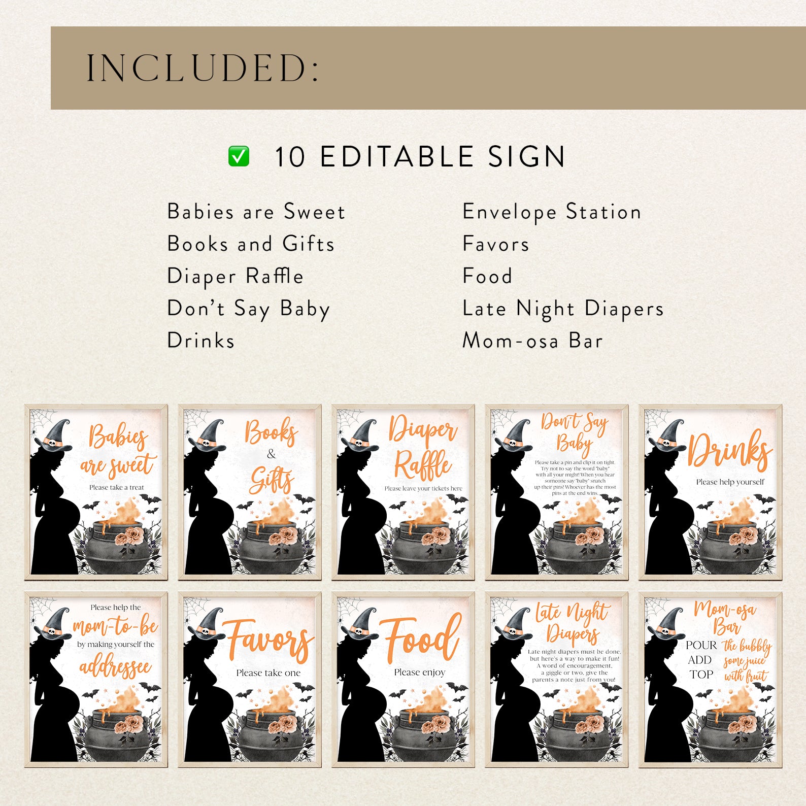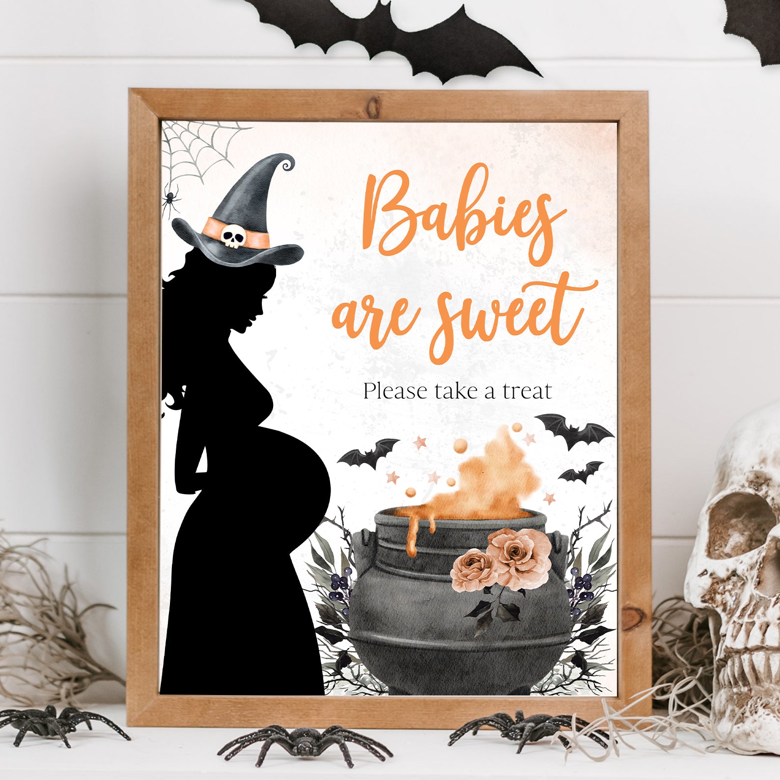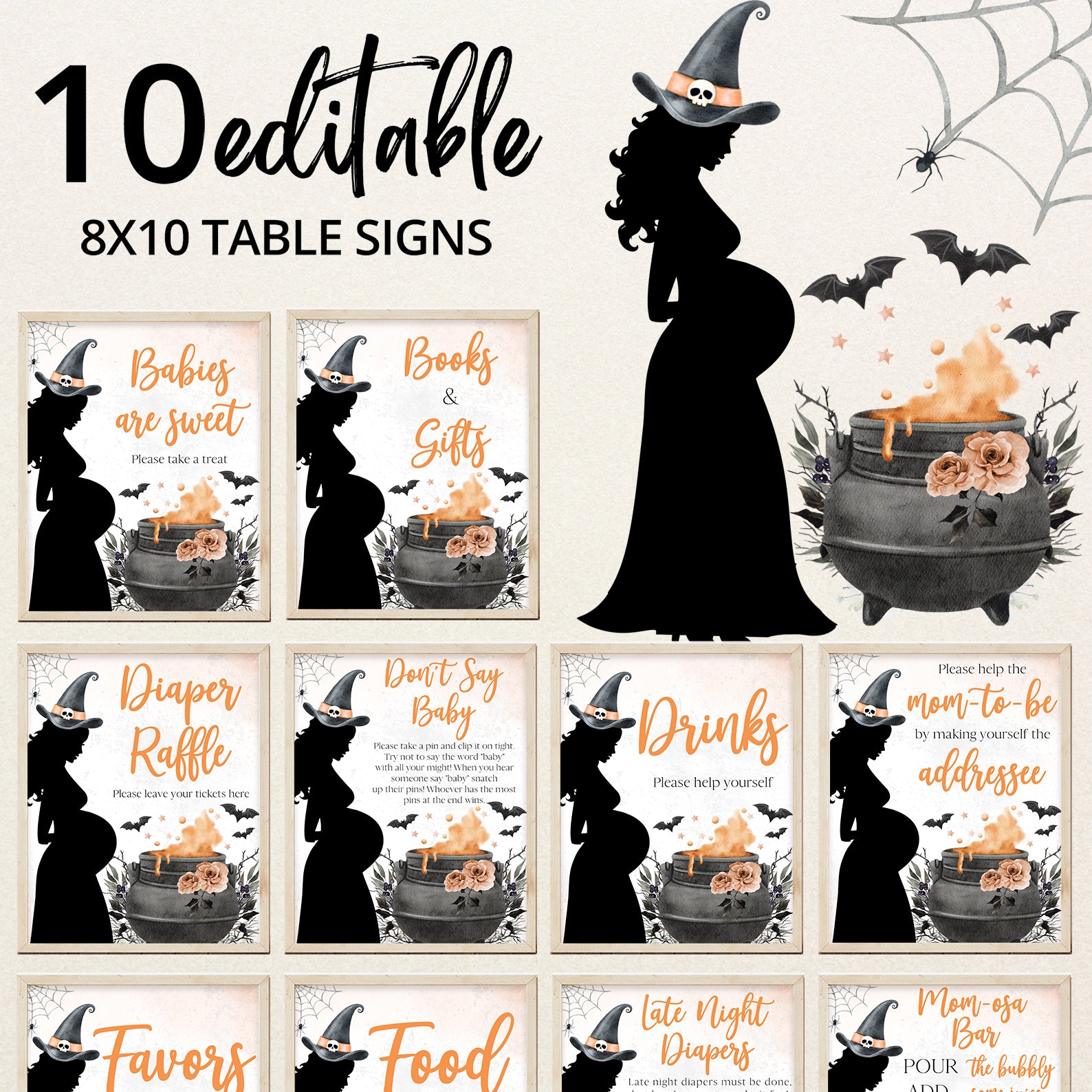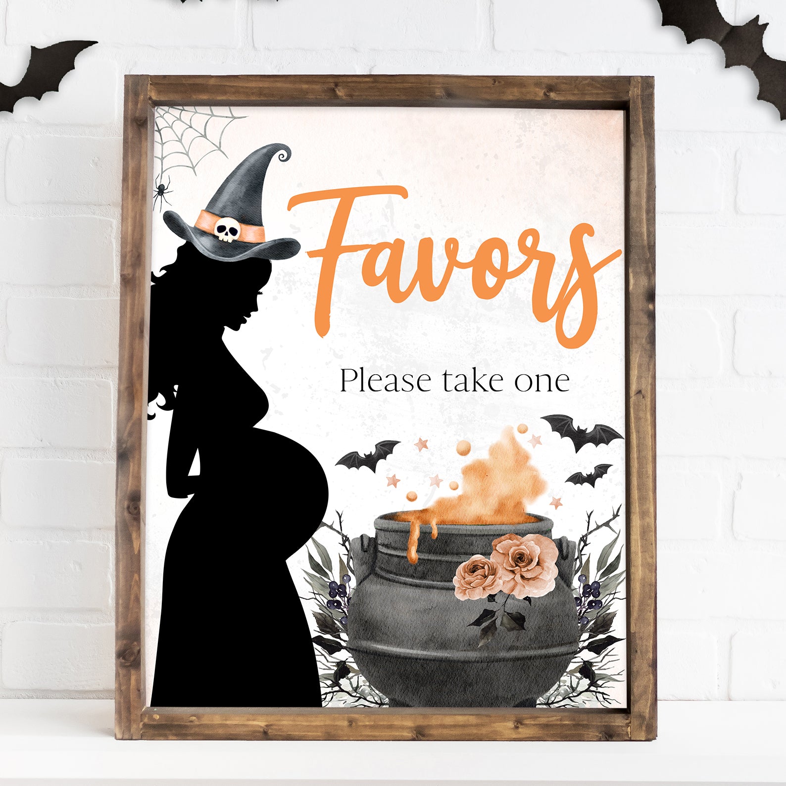 - Purchase this Spellbinding Orange Baby Shower Table Sign: Pregnant Witch & Cauldron template