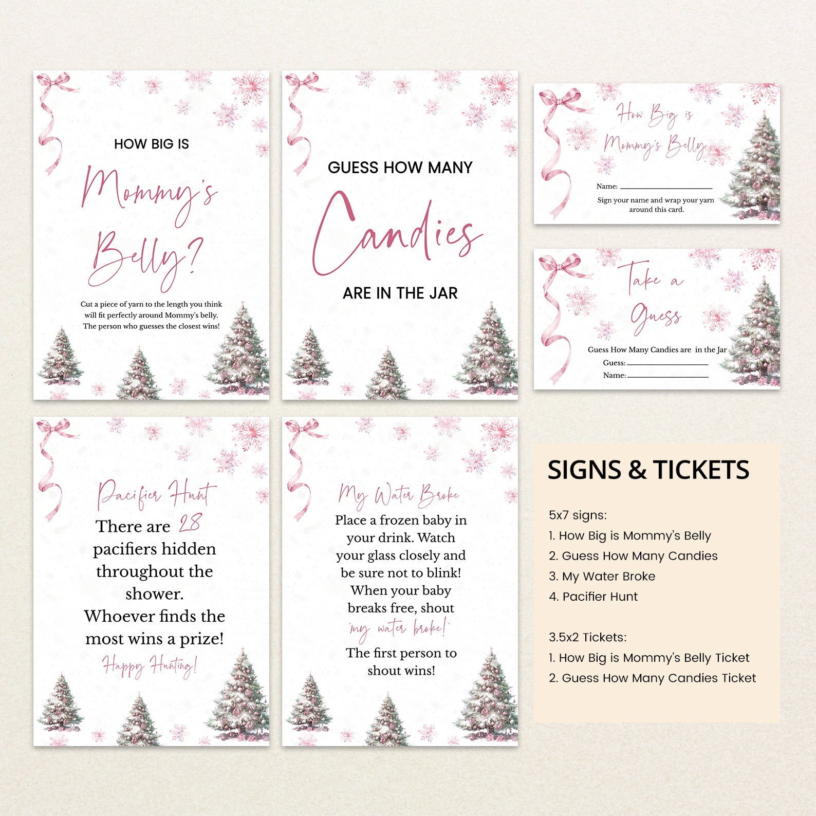 Baby It's Cold Outside: Pink Winter Baby Shower Game Bundle