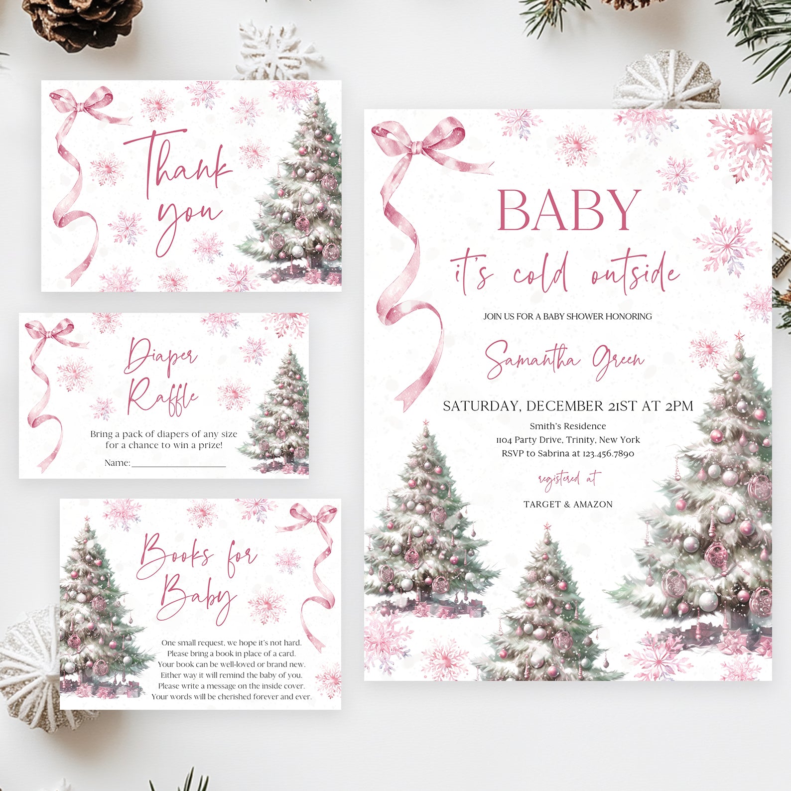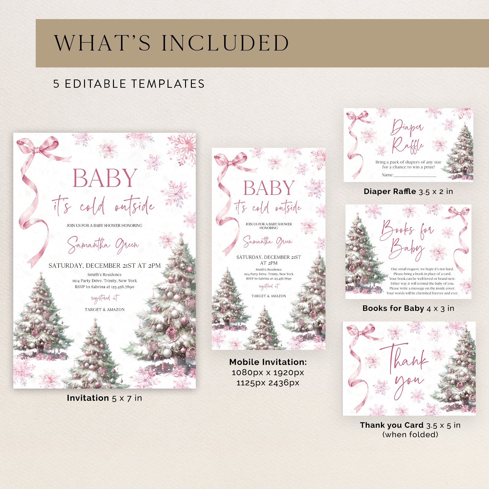 - Purchase this Baby It's Cold Outside: Pink Winter Baby Shower Invite Bundle template