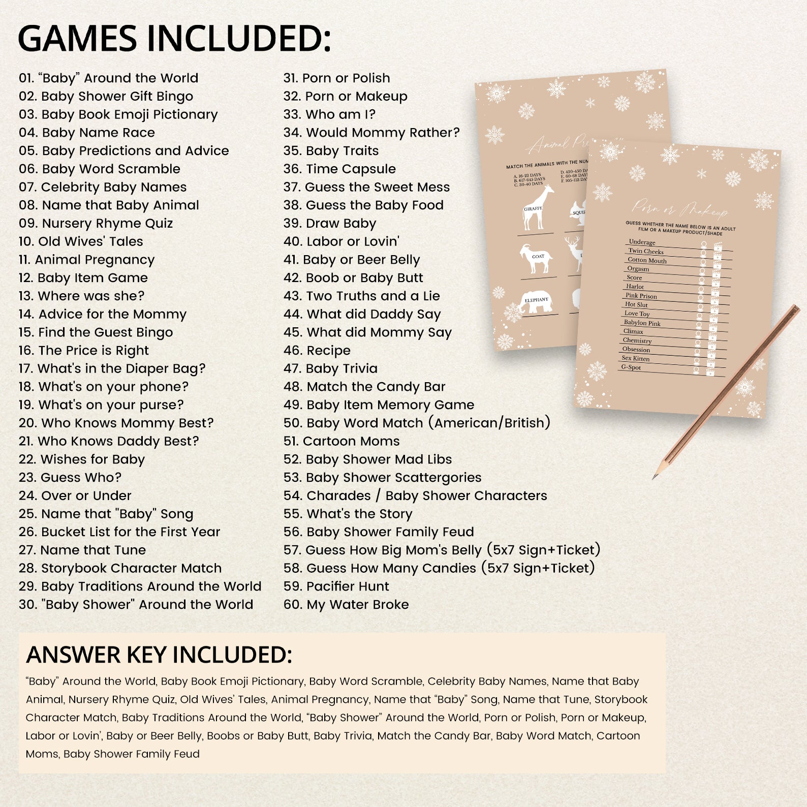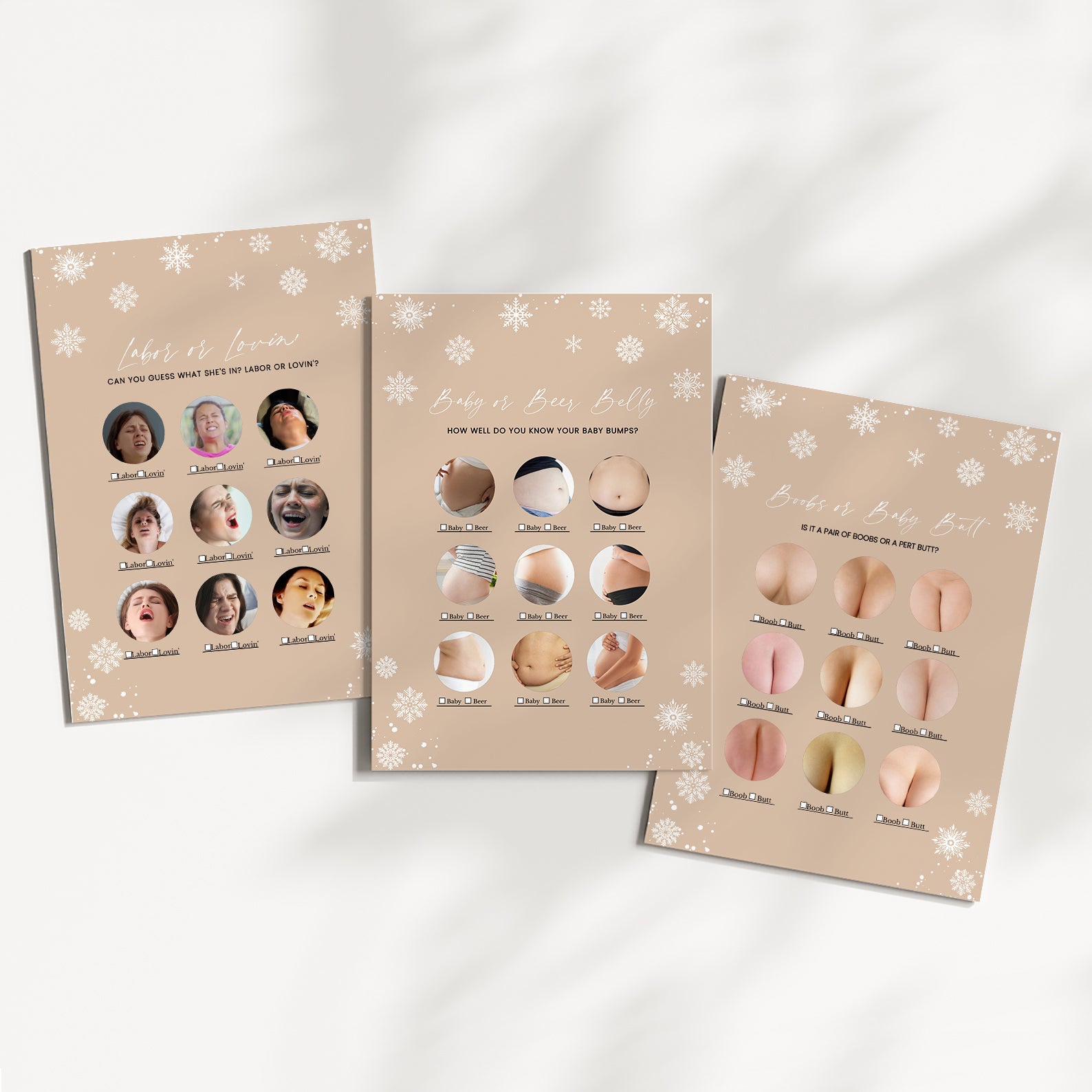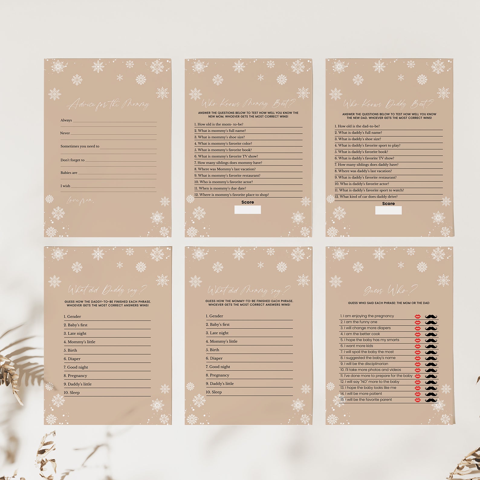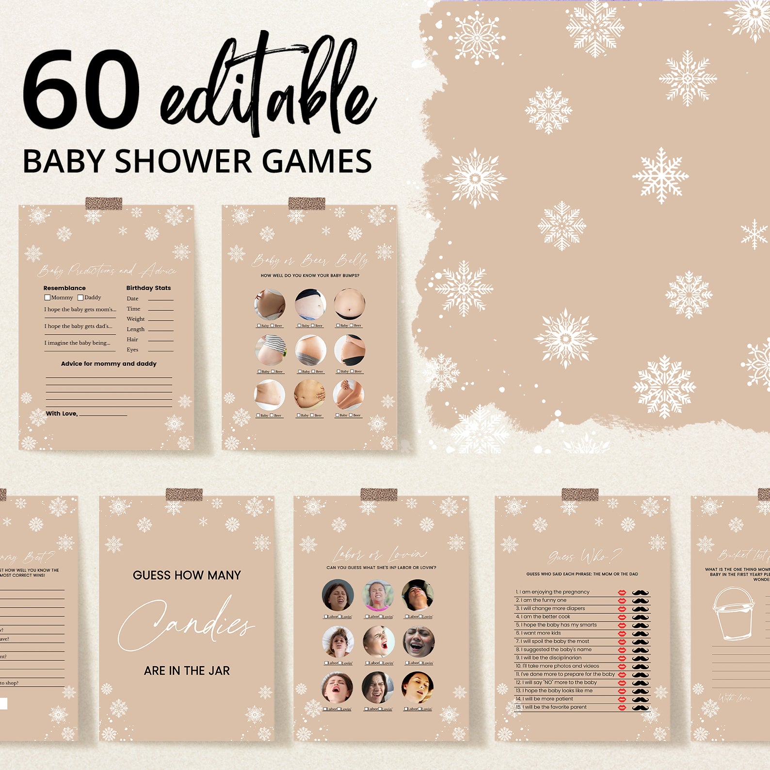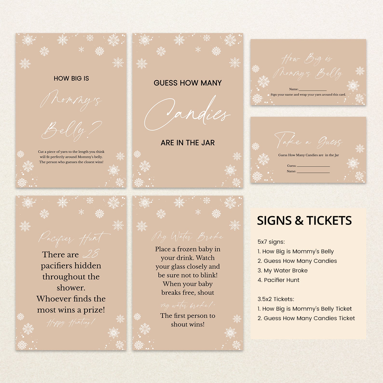 - Purchase this Minimalist Winter Baby Shower Beige Game Bundle: Baby It's Cold Outside template
