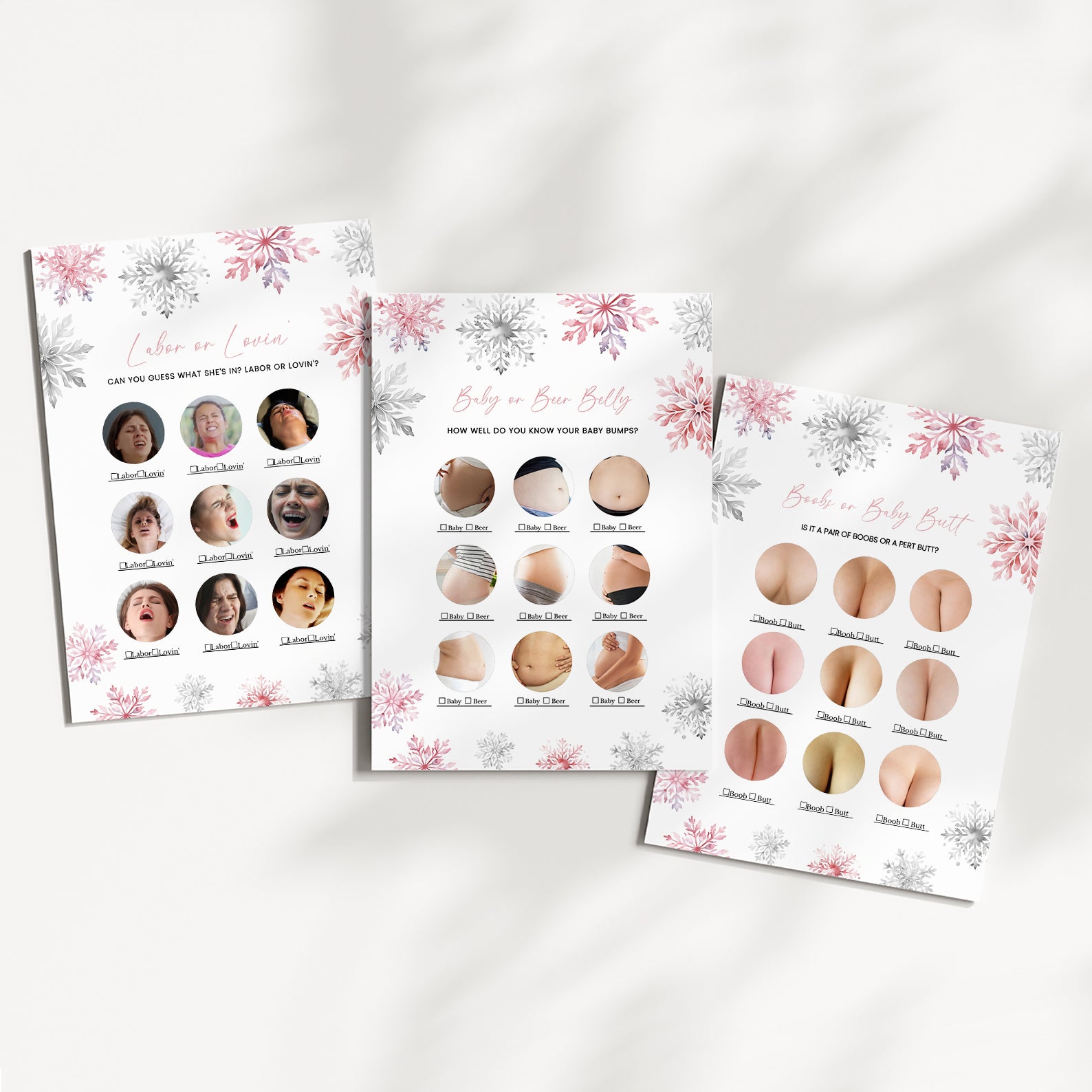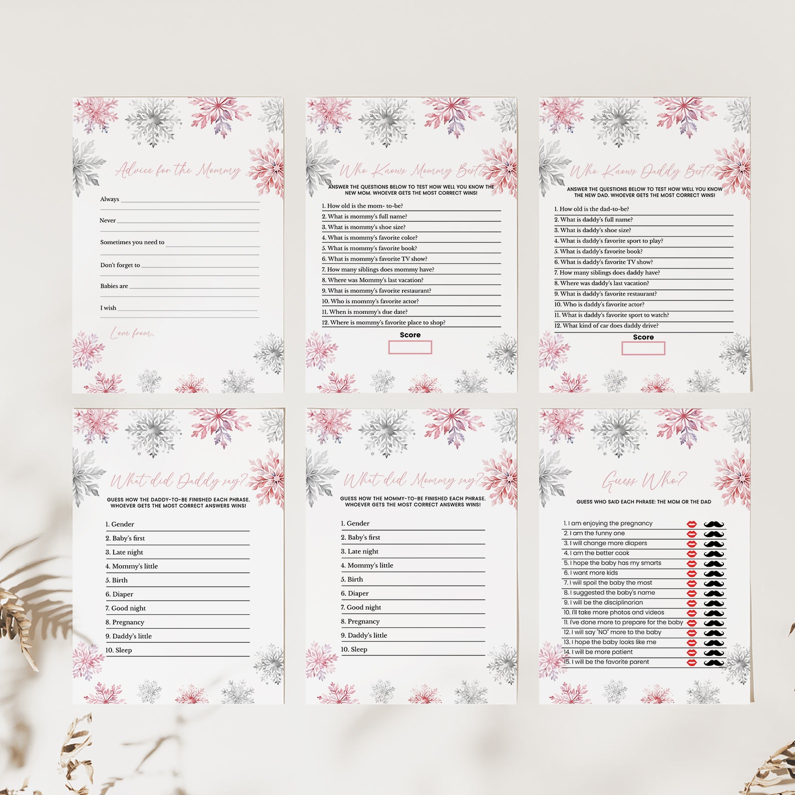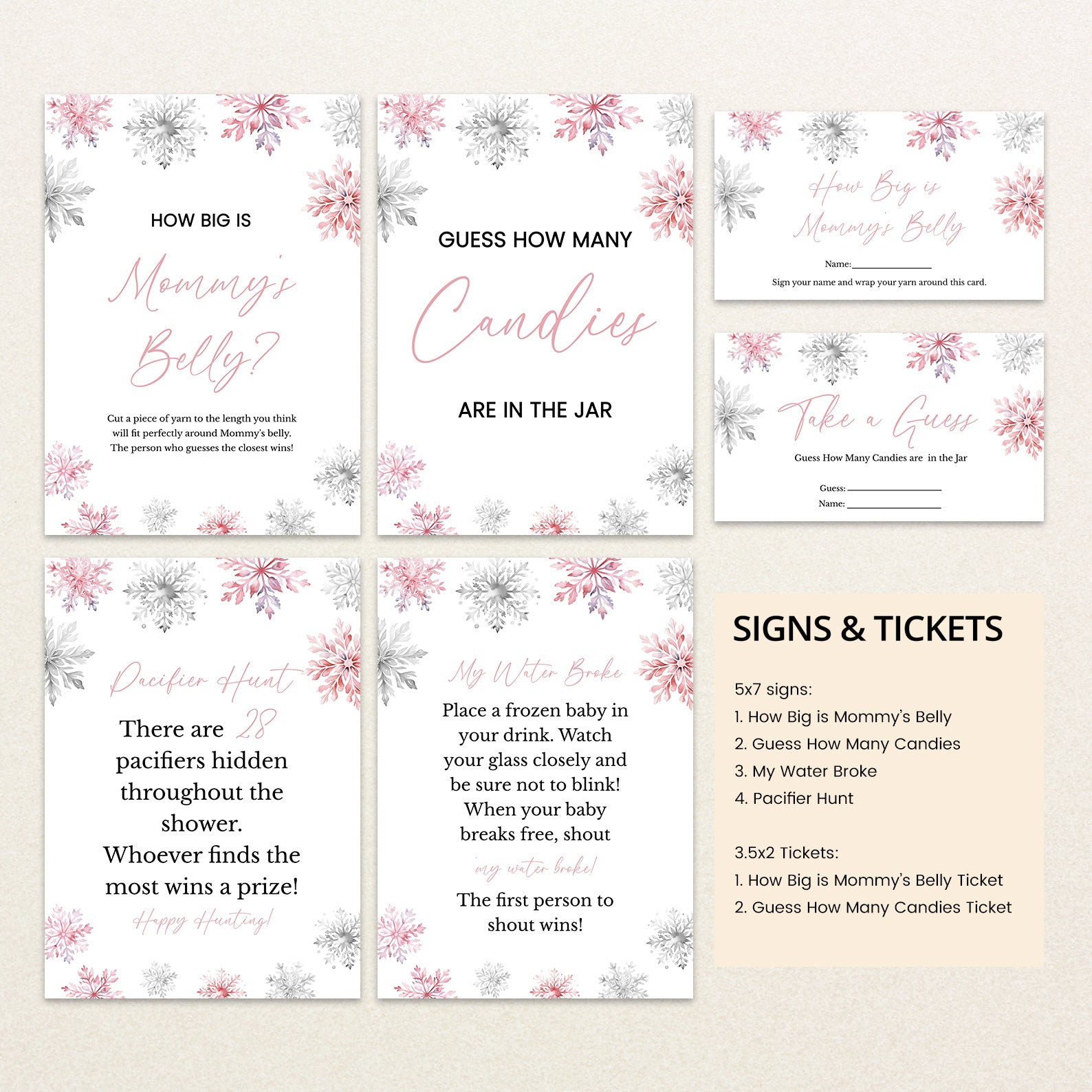 - Purchase this Pink Baby It's Cold Outside Winter Game Bundle with Snowflakes template