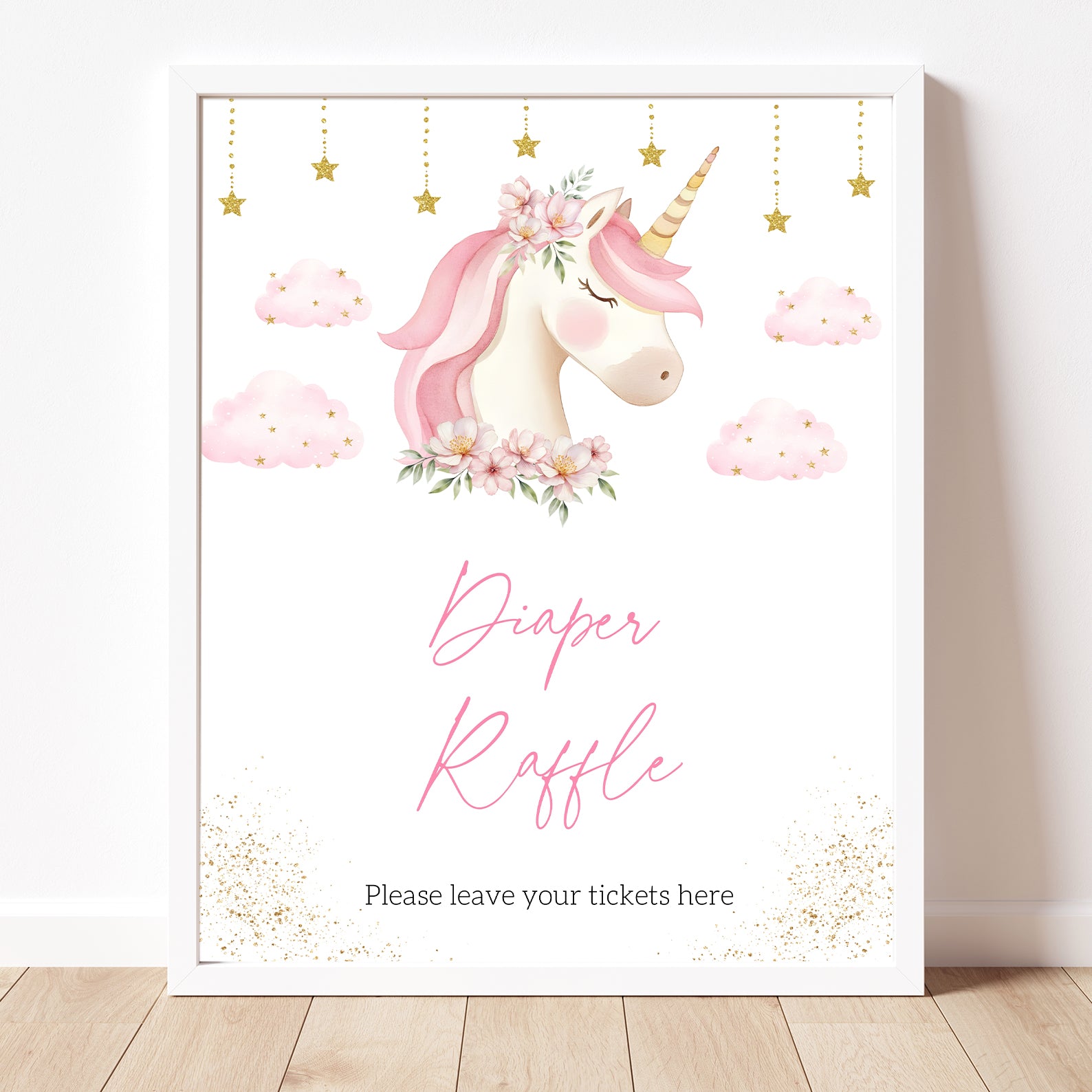 - Purchase this Unicorn Baby Shower Table Sign with Gold Stars & Pink Clouds template