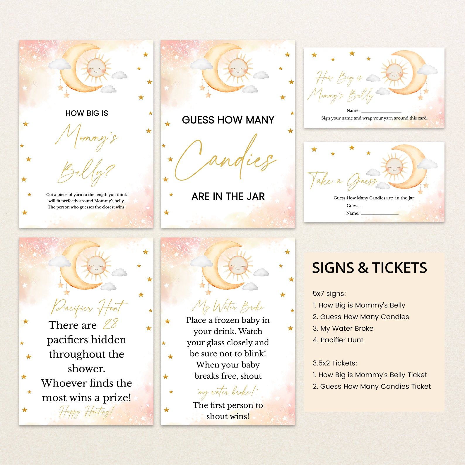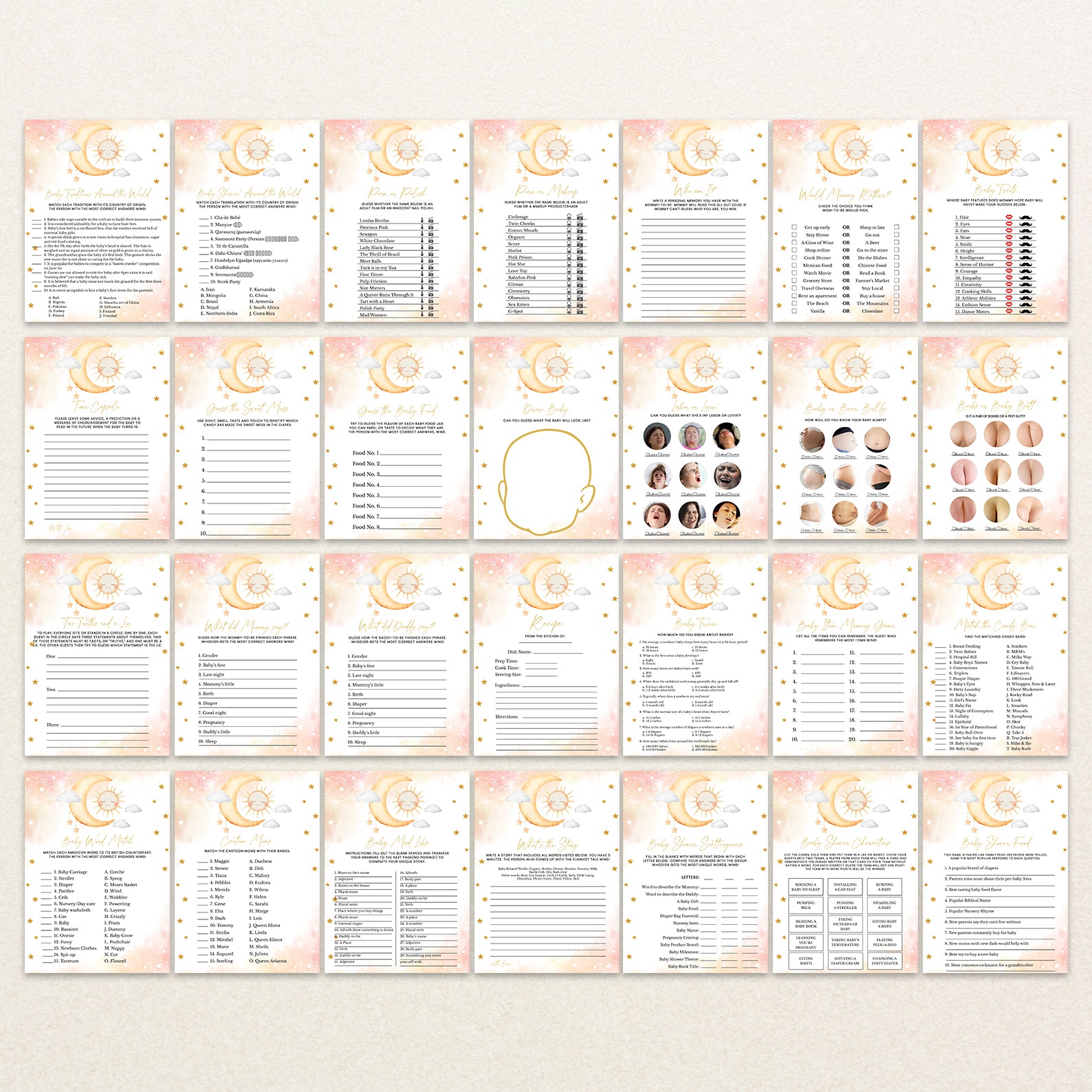 Summer Baby Shower Game Bundle with Pastel Moon & Gold Stars