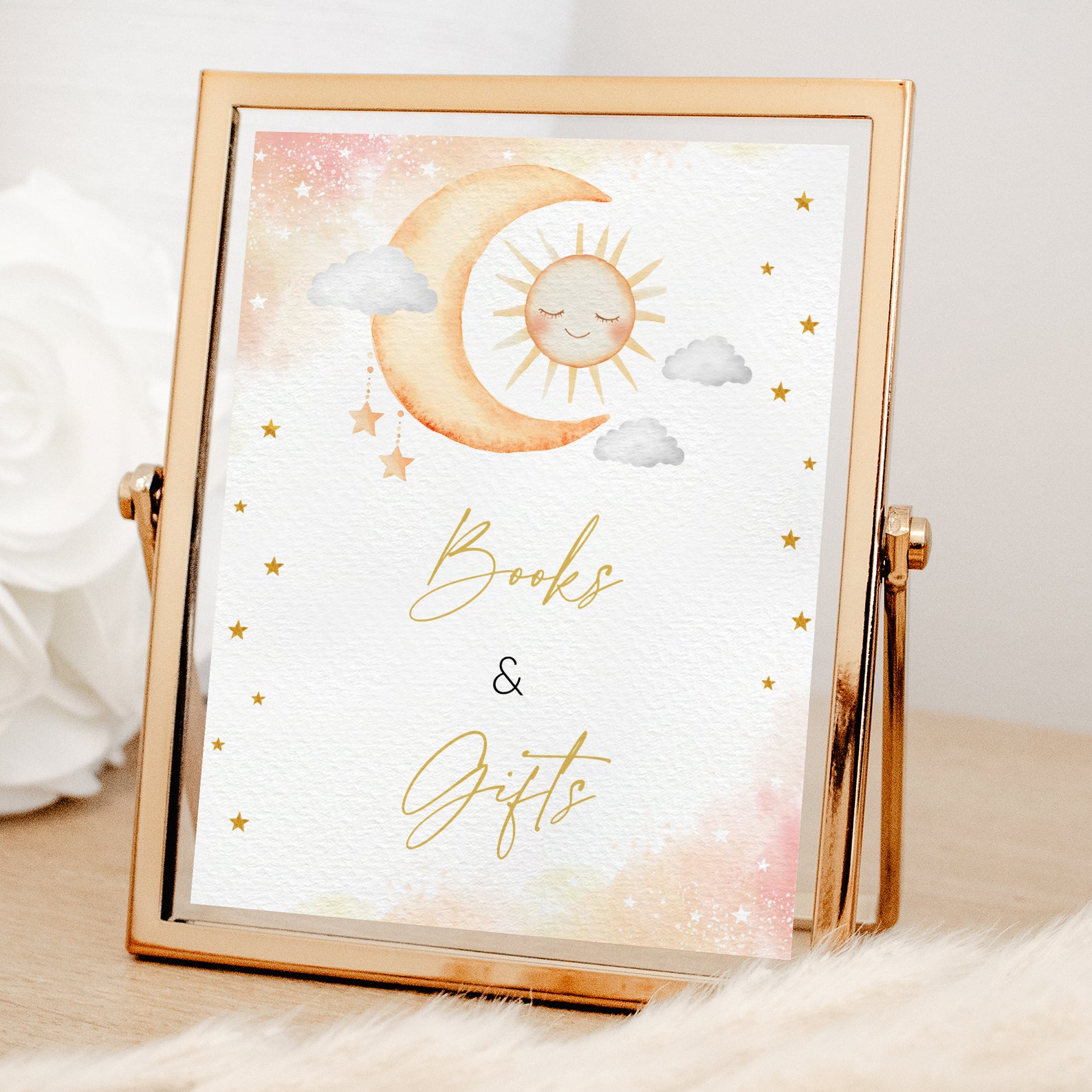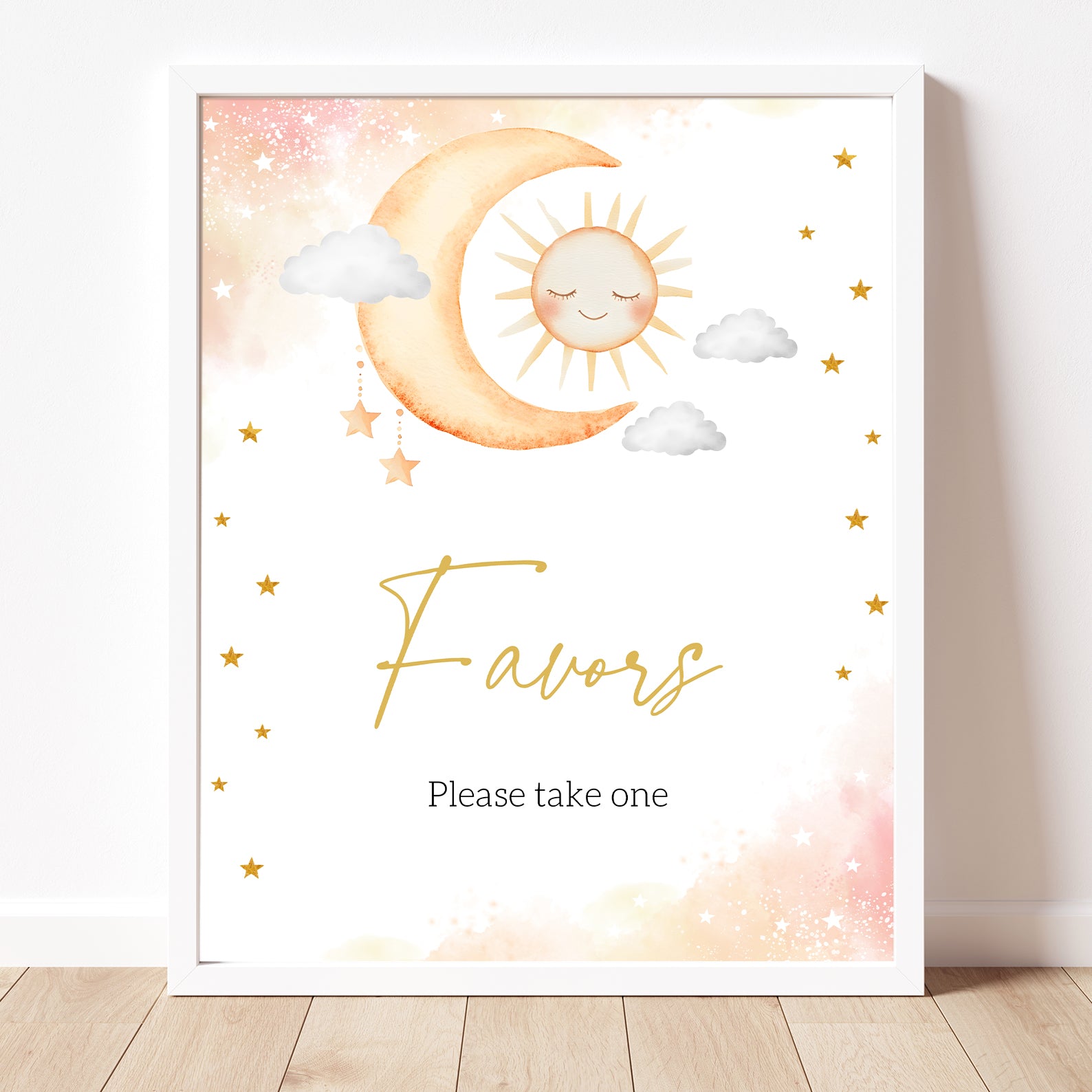 - Purchase this Summer Baby Shower Table Sign with Pastel Moon & Gold Stars template