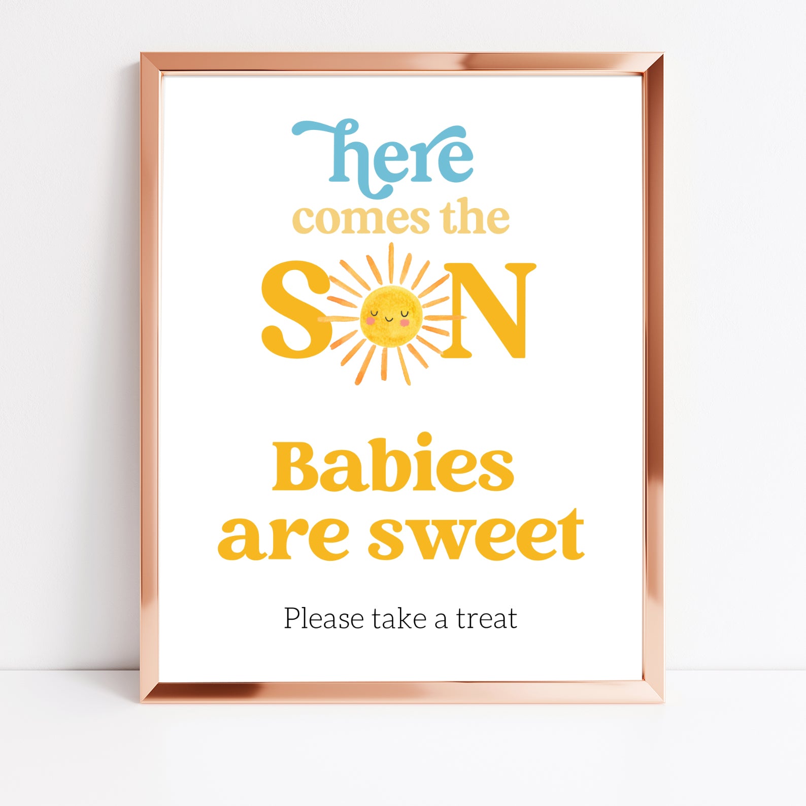 - Purchase this Here Comes the Sun Baby Shower Digital Table Sign: Cute Sun Design template