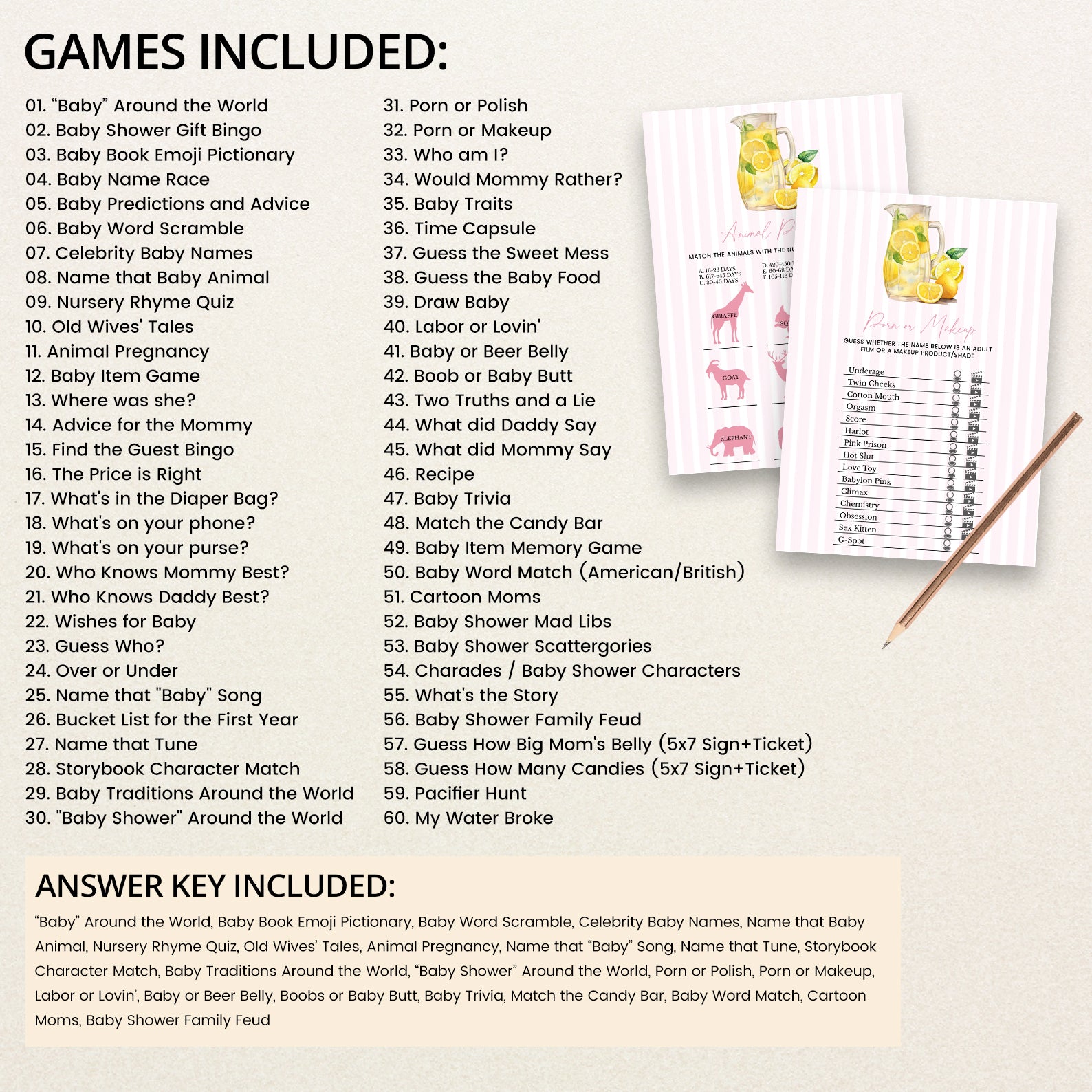 Ciao, Bambina Baby Shower Digital Game Bundle: Summer Lemon Theme