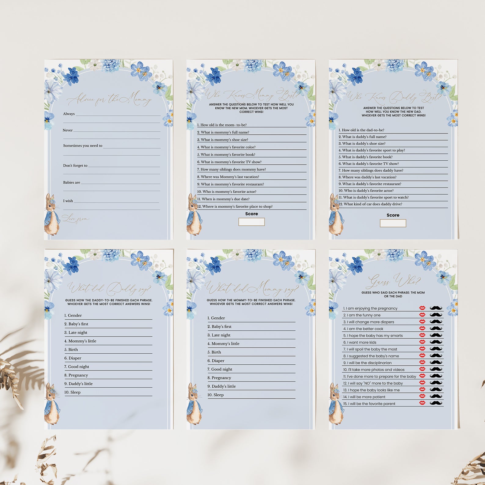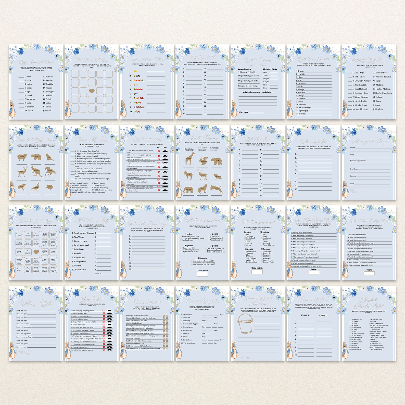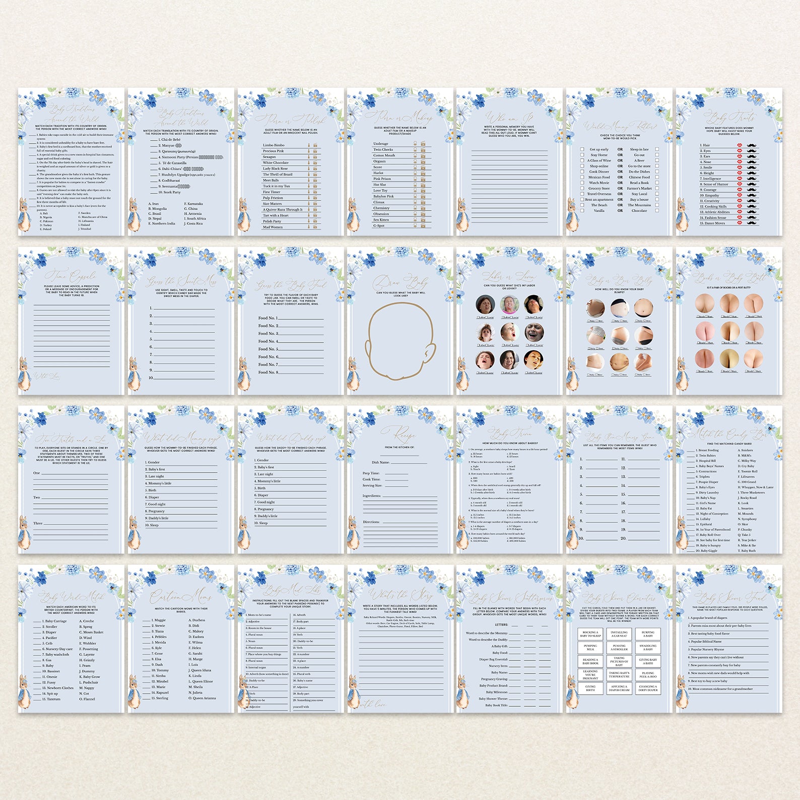 Peter Rabbit Digital Baby Shower Game Bundle: Blue Florals & Bunny