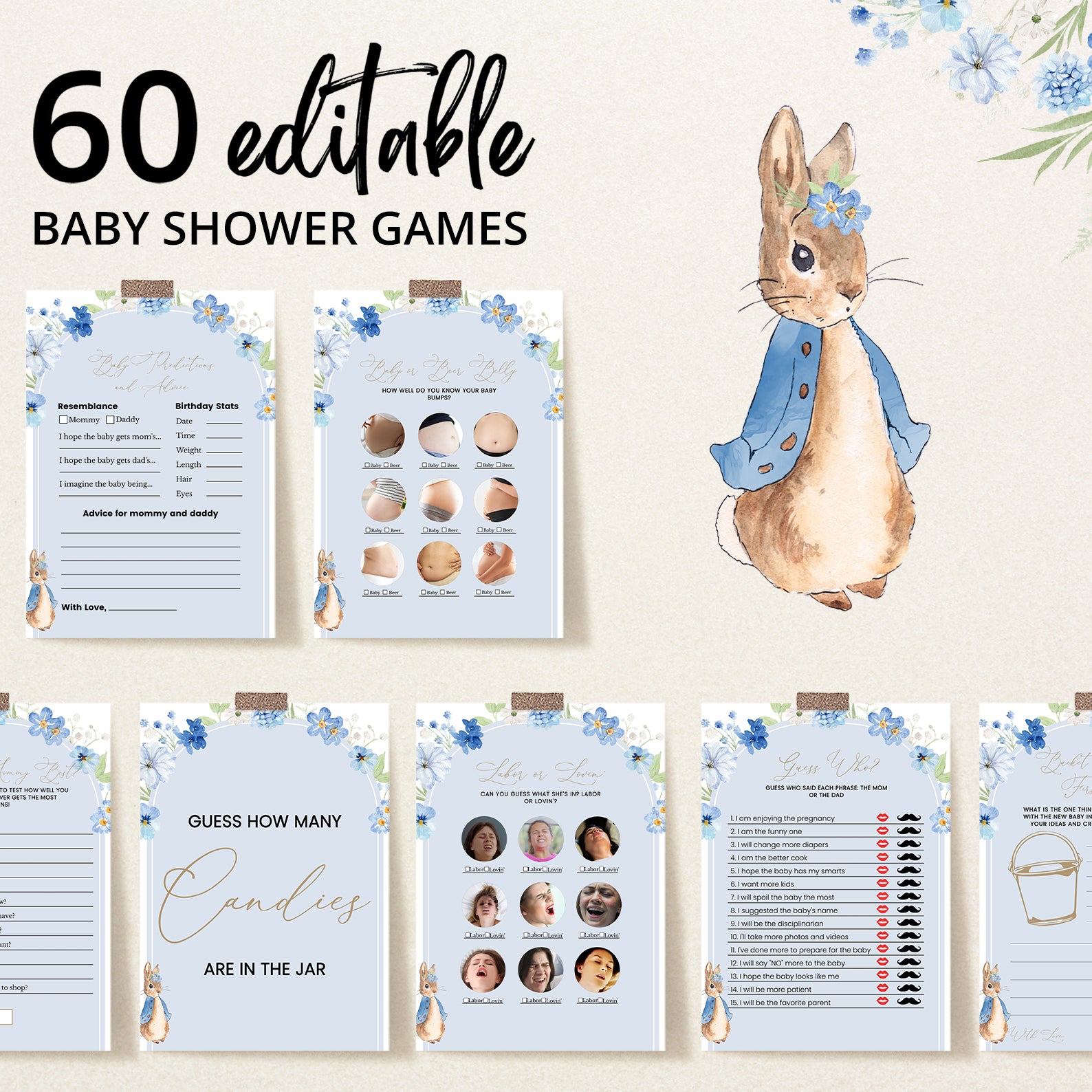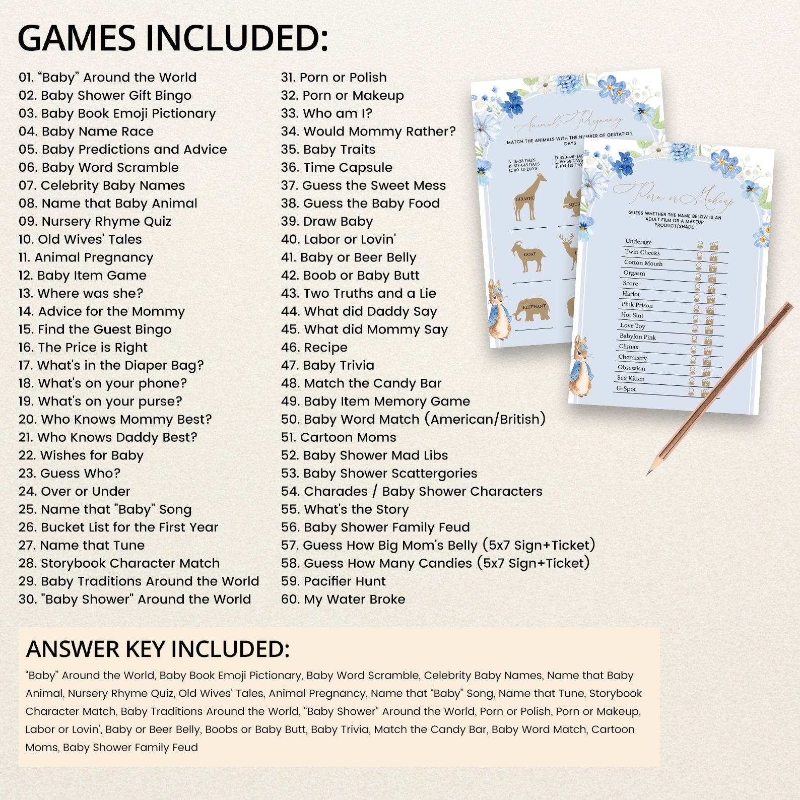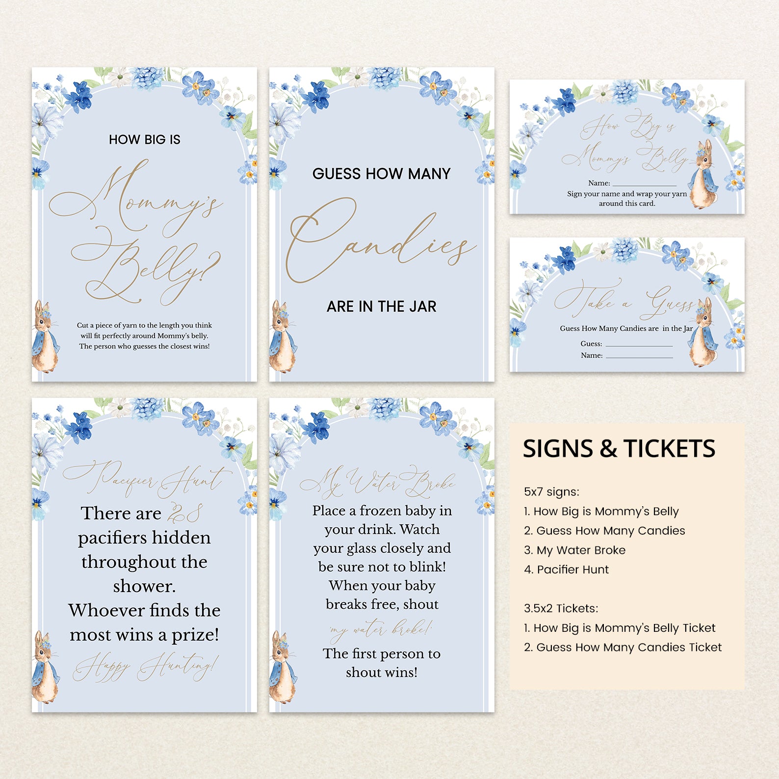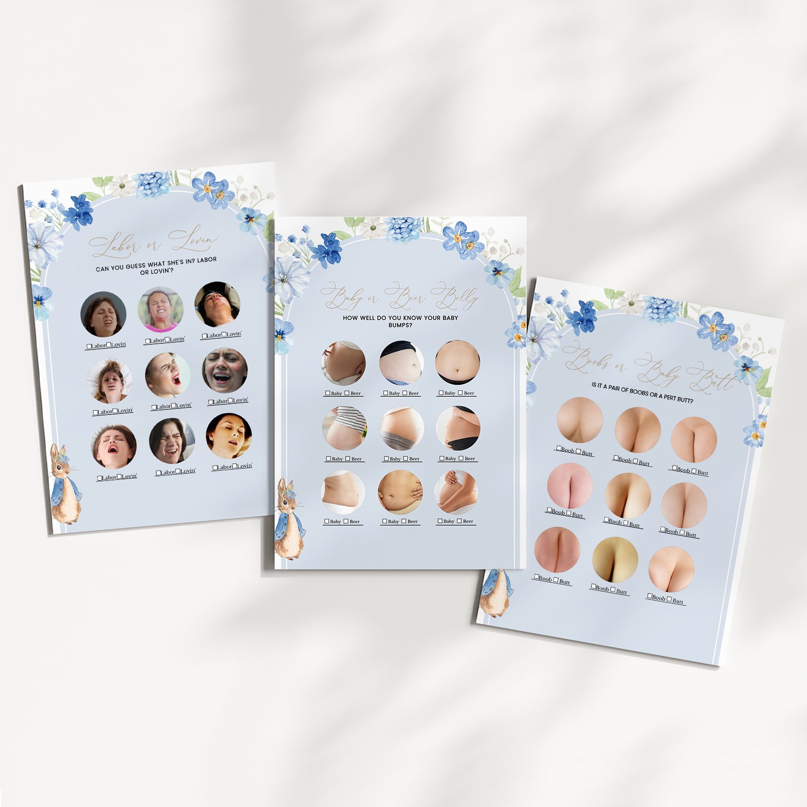 Peter Rabbit Digital Baby Shower Game Bundle: Blue Florals & Bunny