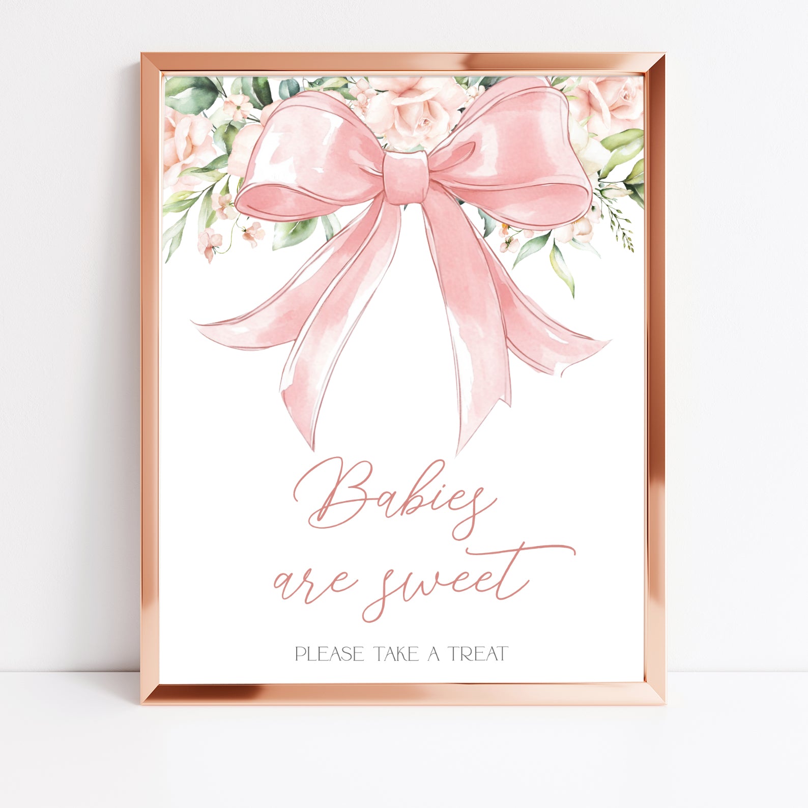 Baby in Bloom Spring Baby Shower Digital Table Sign: Pink Ribbon