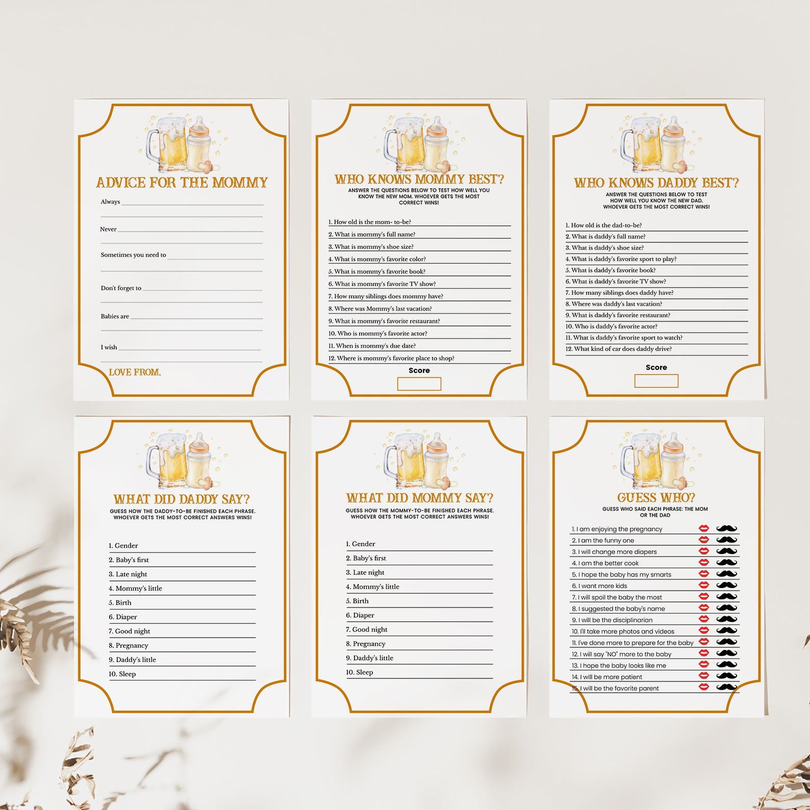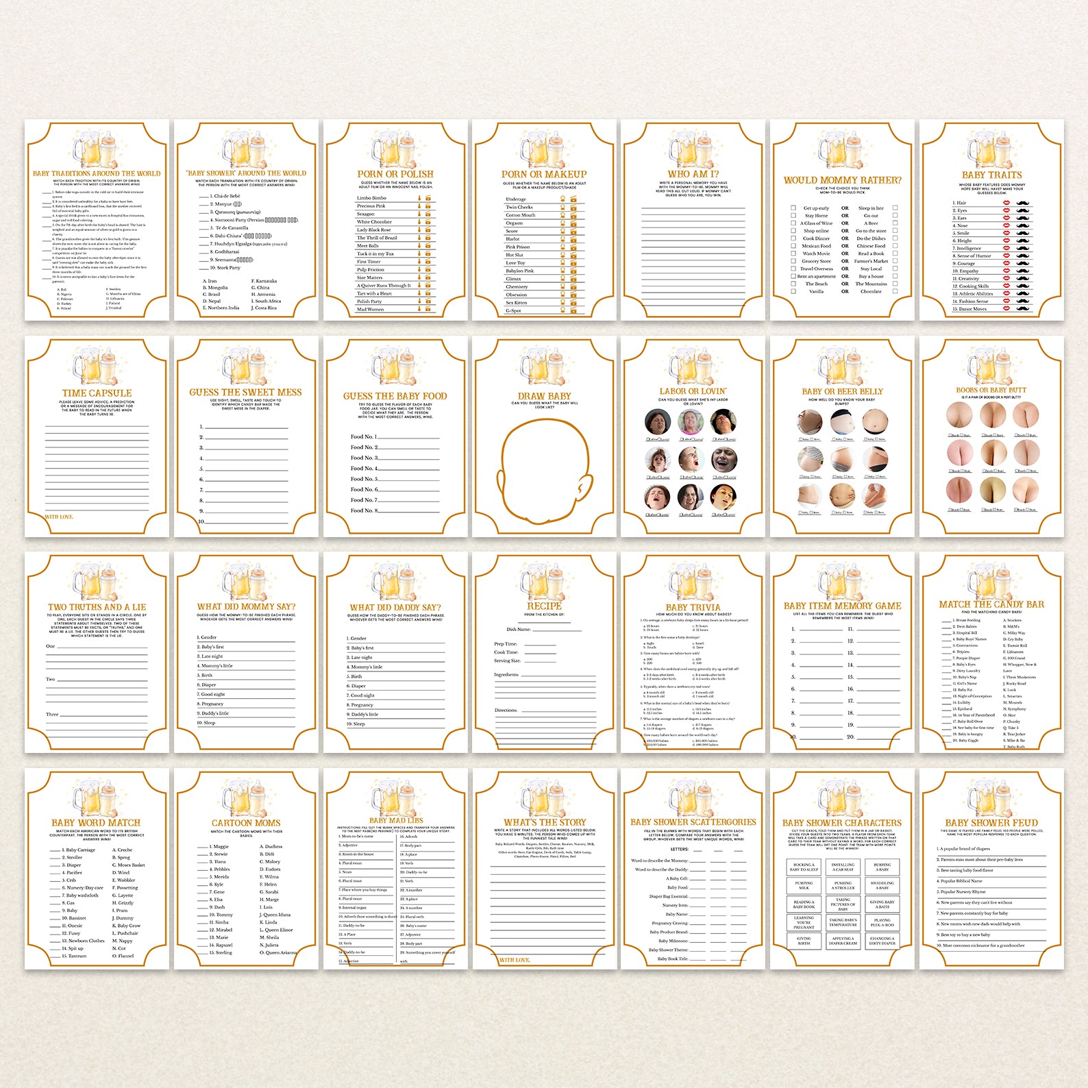 - Purchase this Beer Themed Baby Shower Game Bundle: Brew Before Baby Is Due template
