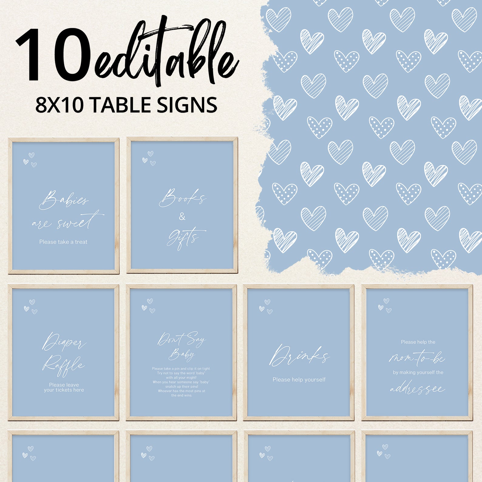 - Purchase this Minimalist Oh Boy Baby Shower Digital Table Sign: Blue Hearts template