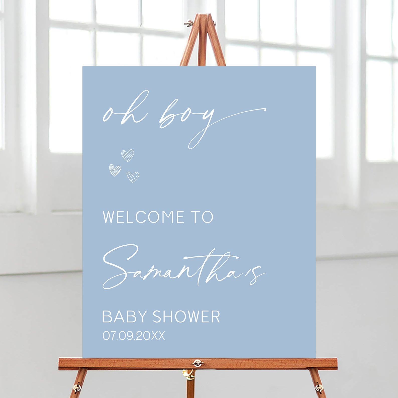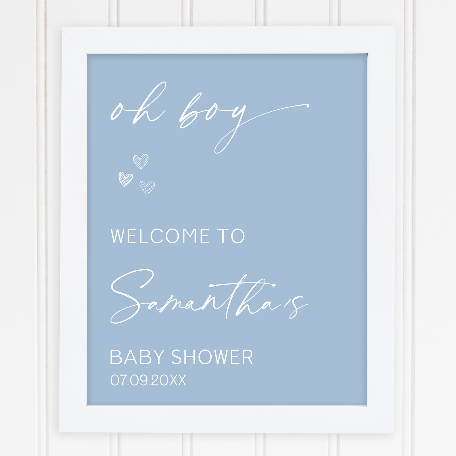 - Purchase this Minimalist Oh Boy Baby Shower Digital Welcome Sign: Blue Hearts template