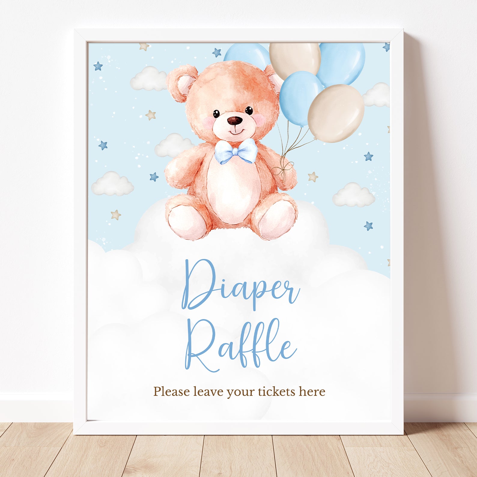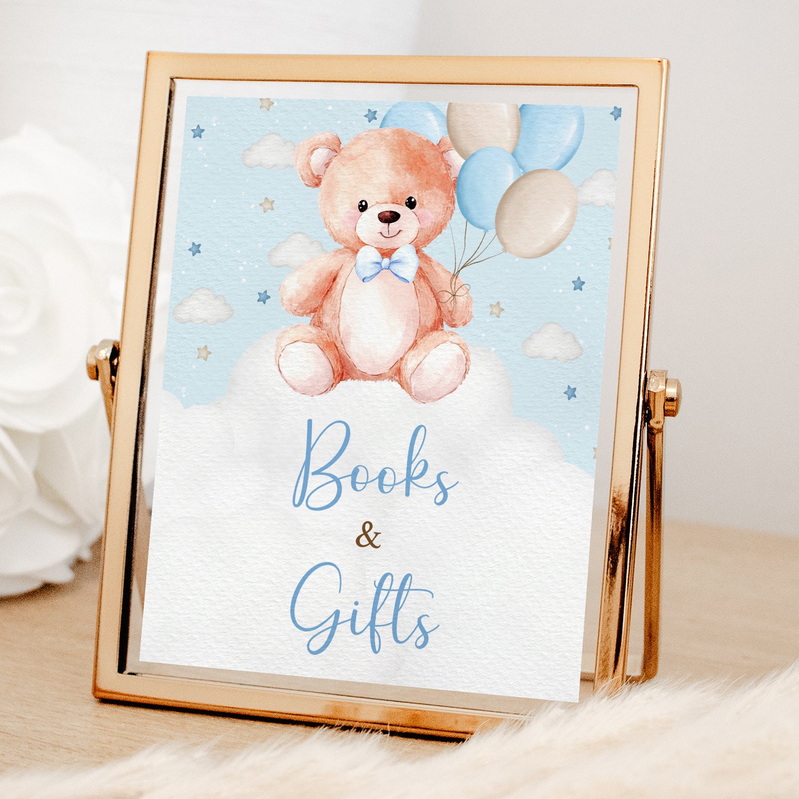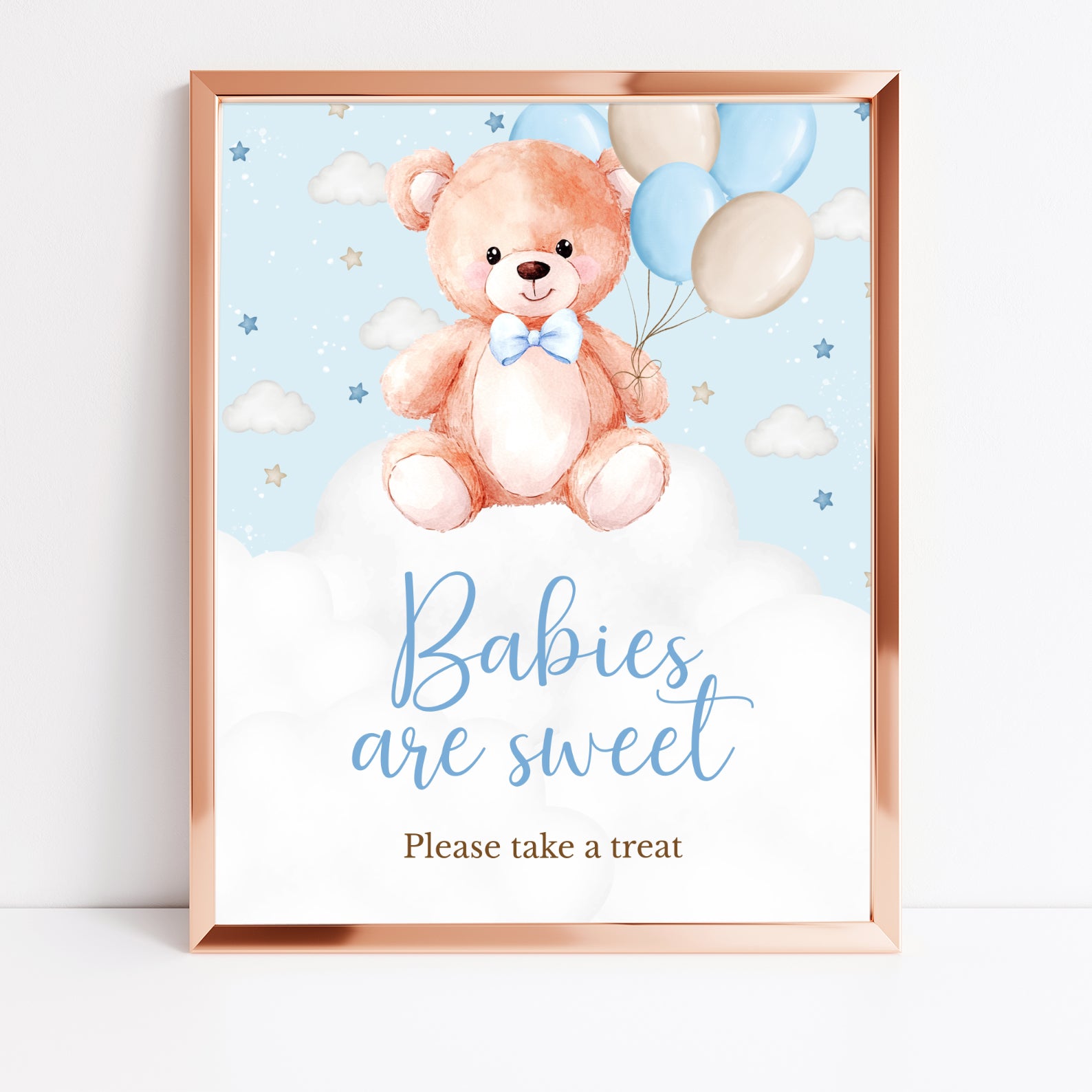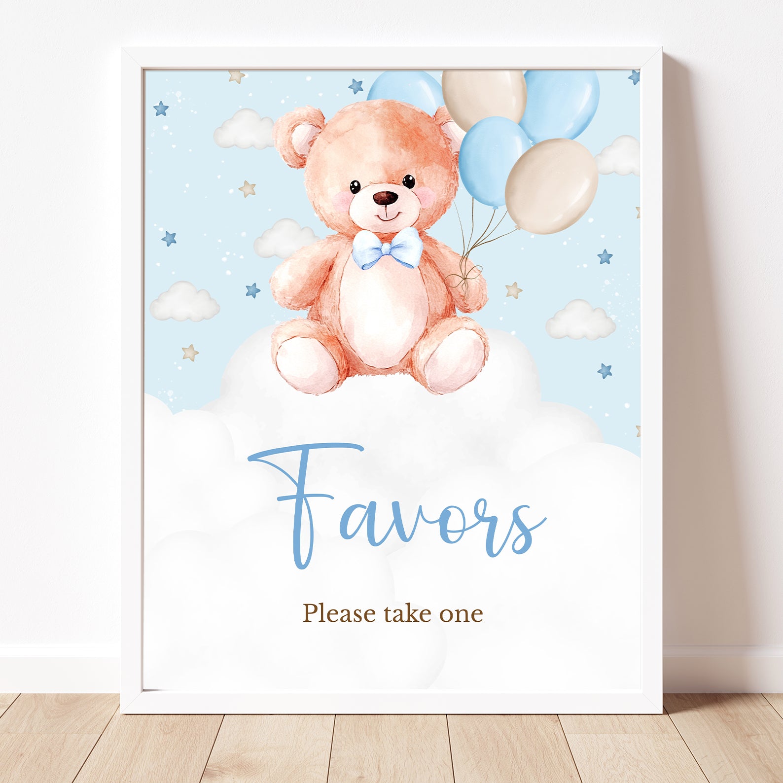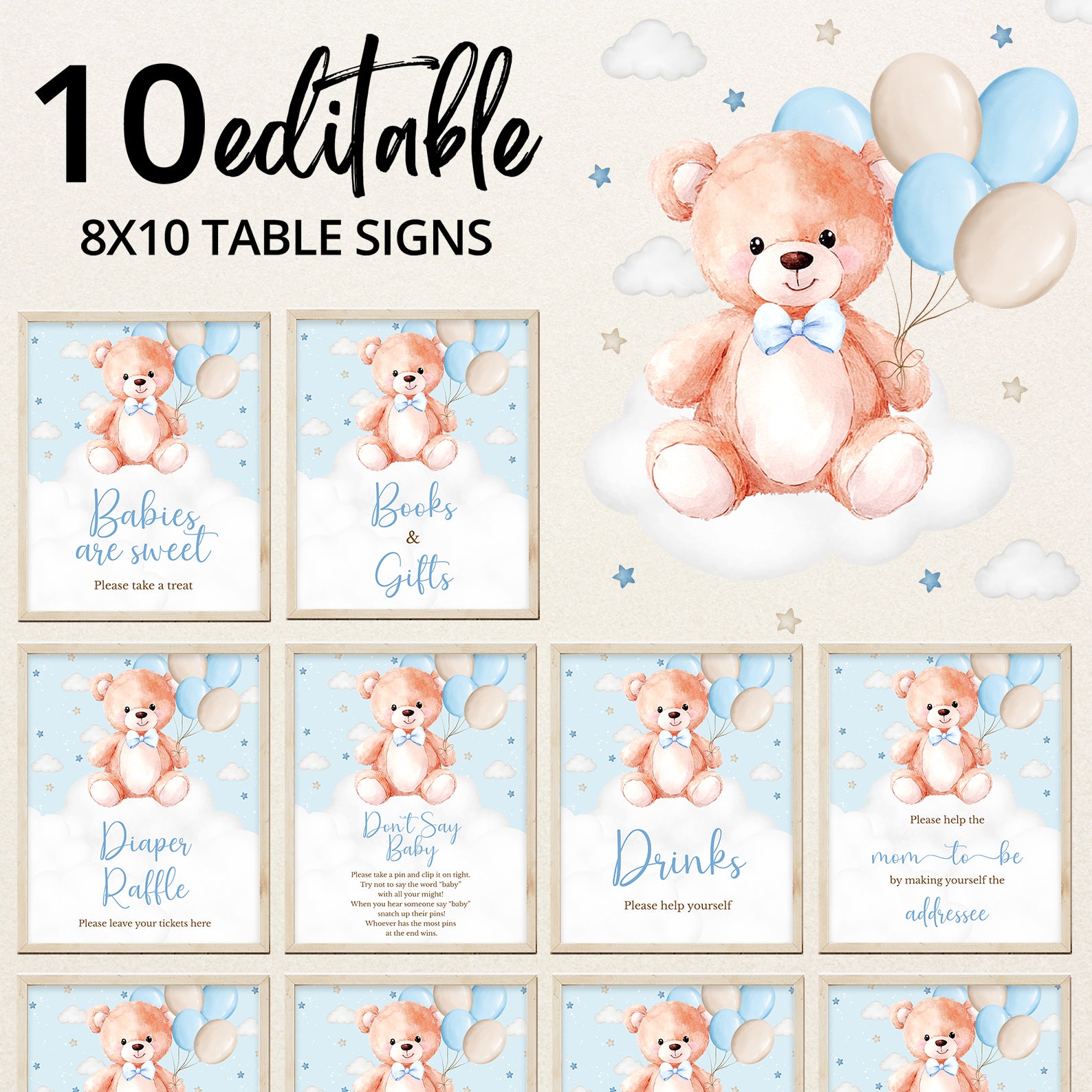 - Purchase this We Can Bearly Wait Blue Baby Shower Table Sign with Teddy Bear template