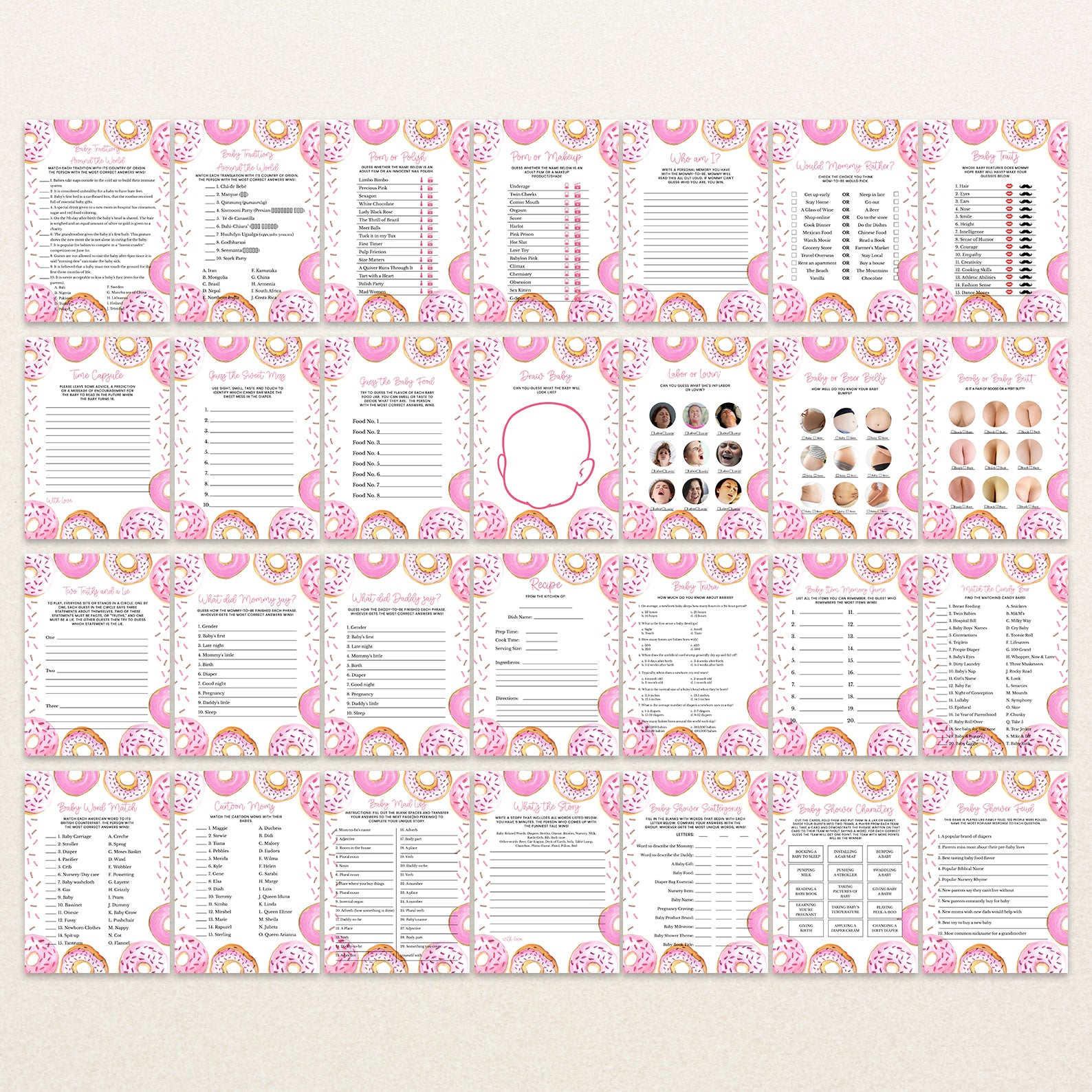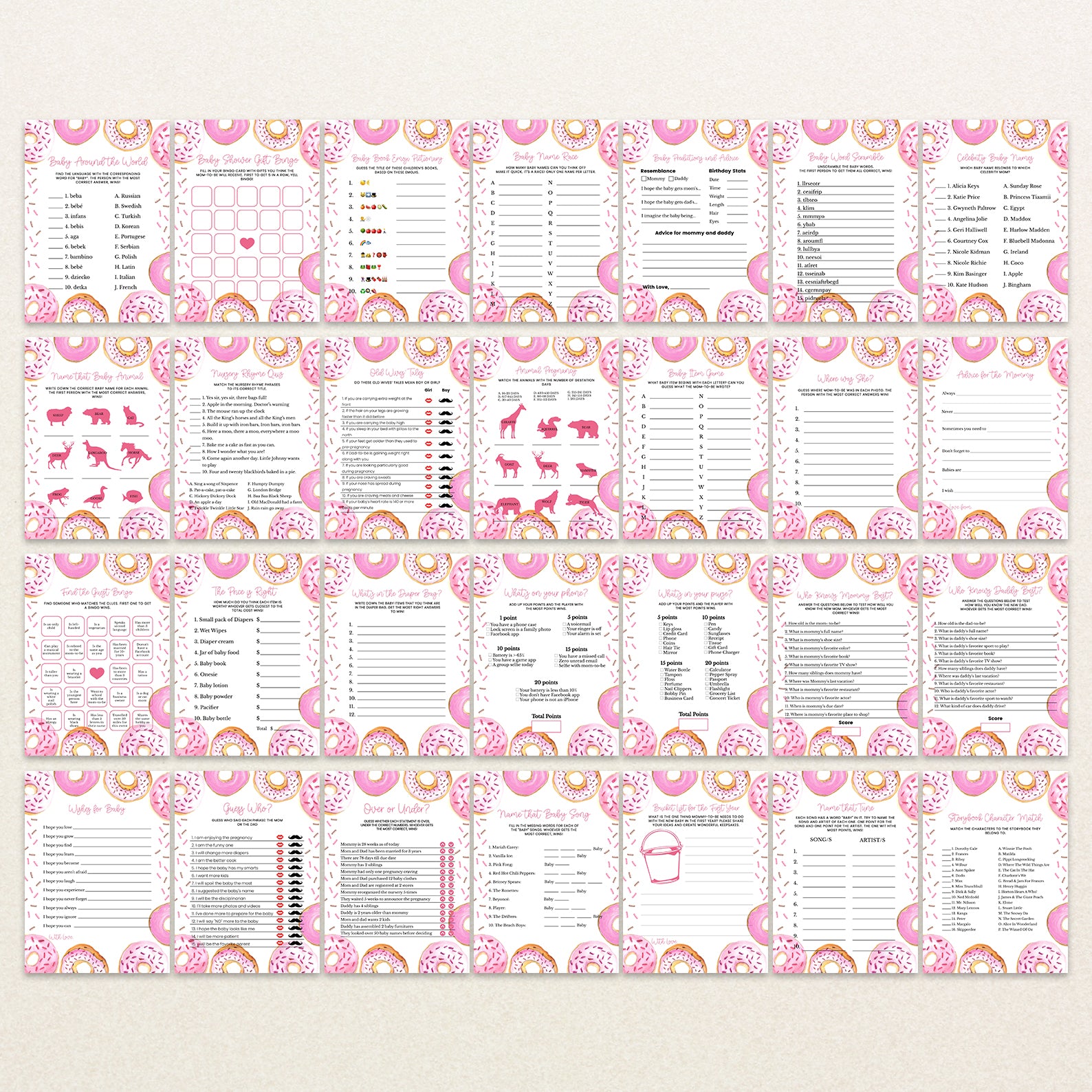 - Purchase this Sprinkled with Love Pink Baby Shower Digital Game Bundle template