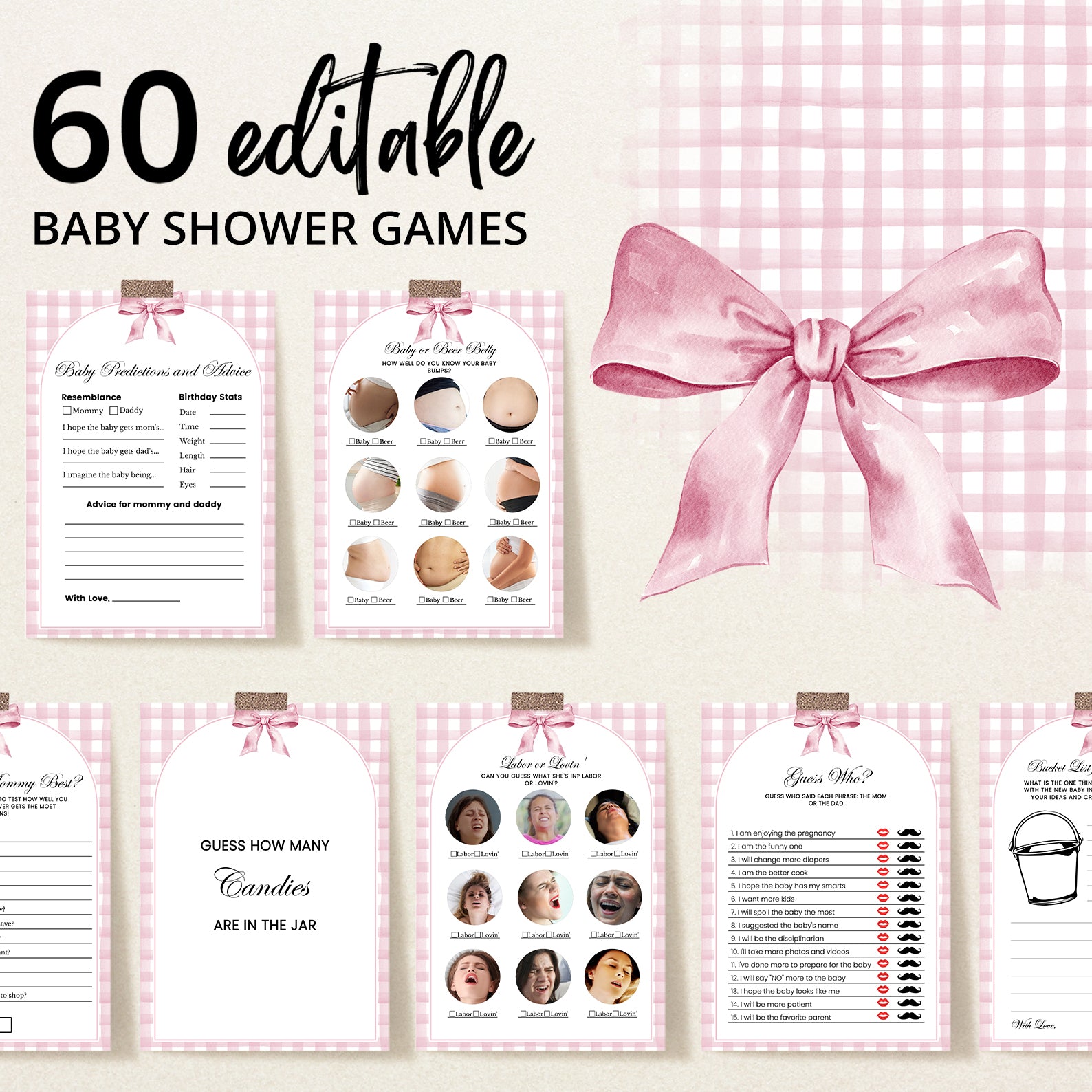 - Purchase this Pink Plaid Baby Shower Game Bundle with Arch & Ribbon Design template