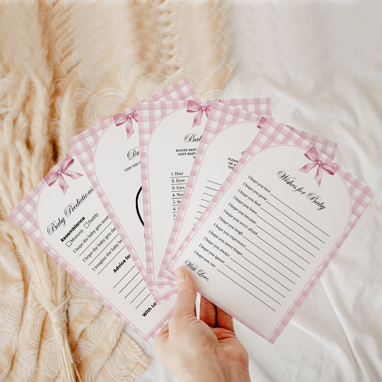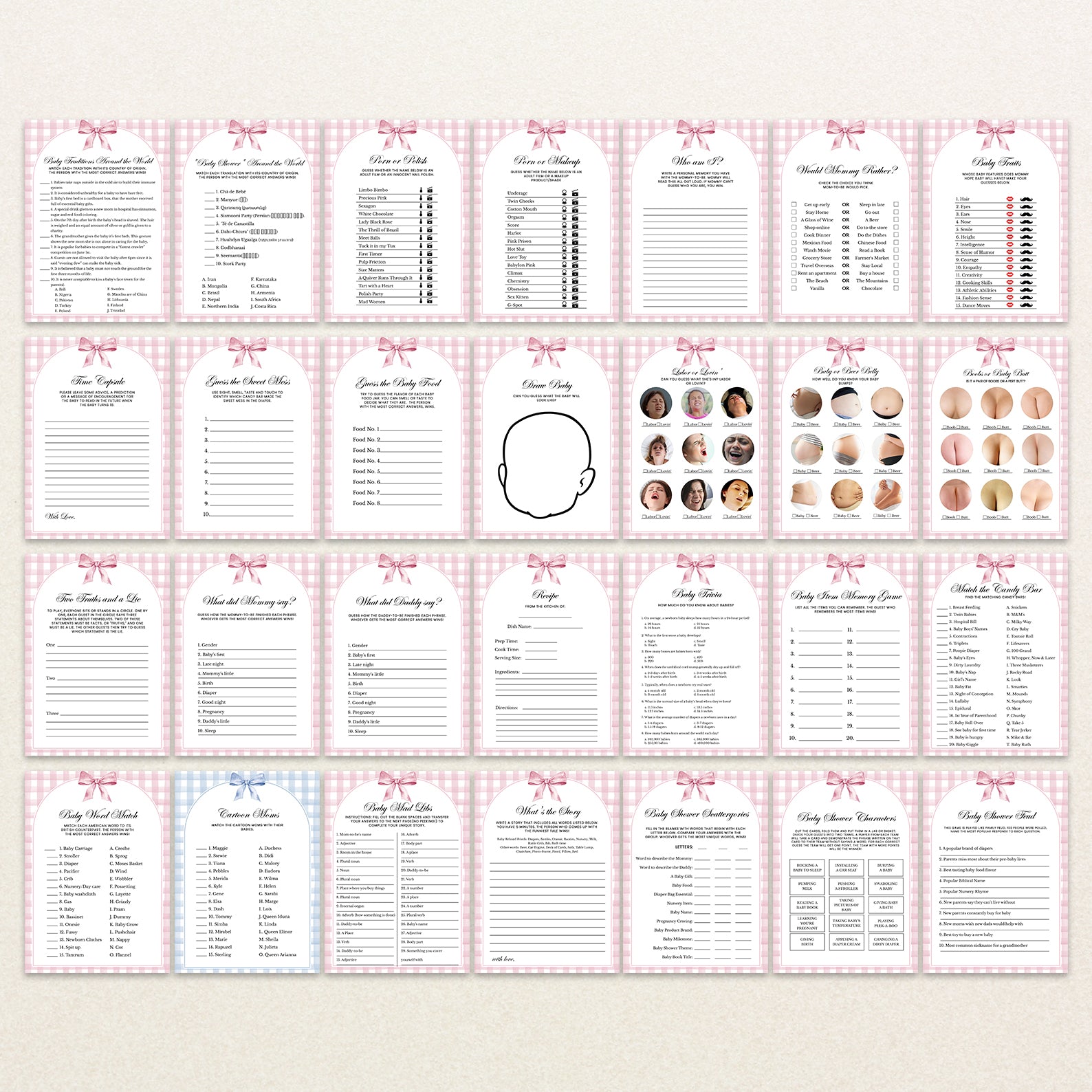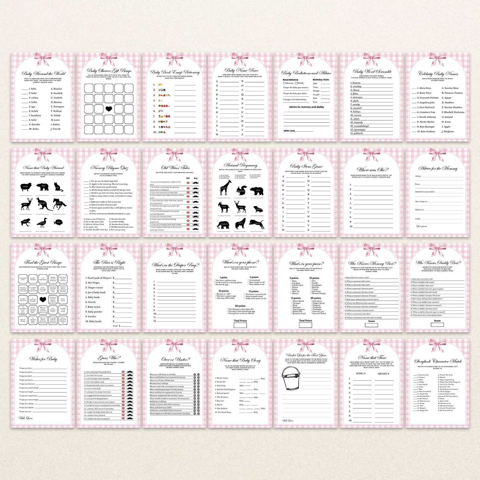 Pink Plaid Baby Shower Game Bundle with Arch & Ribbon Design