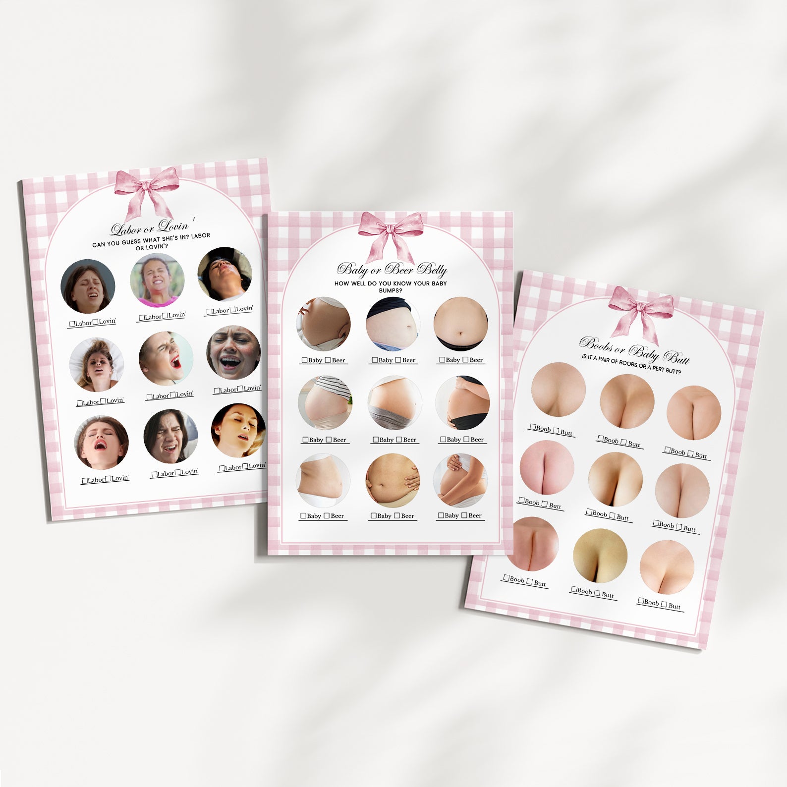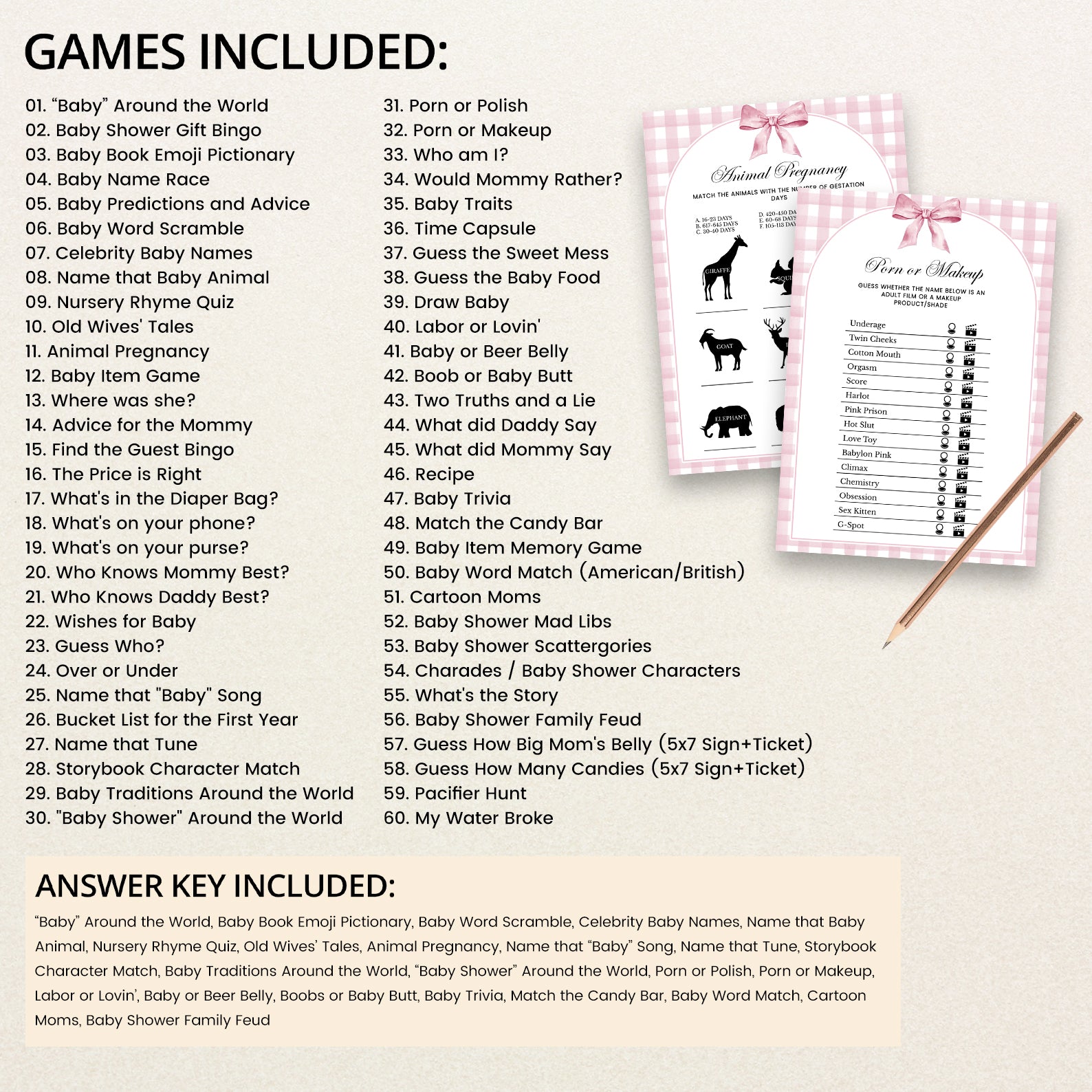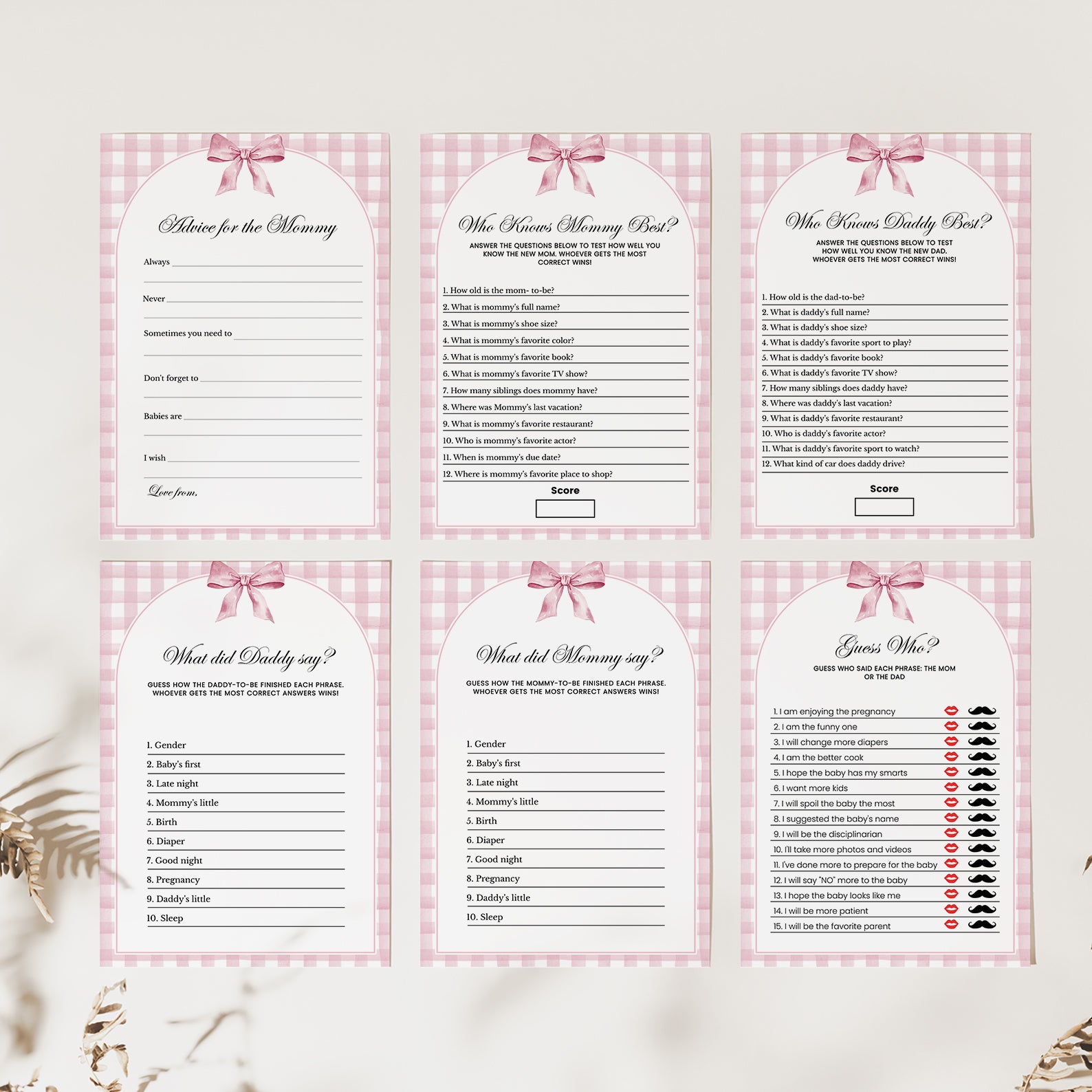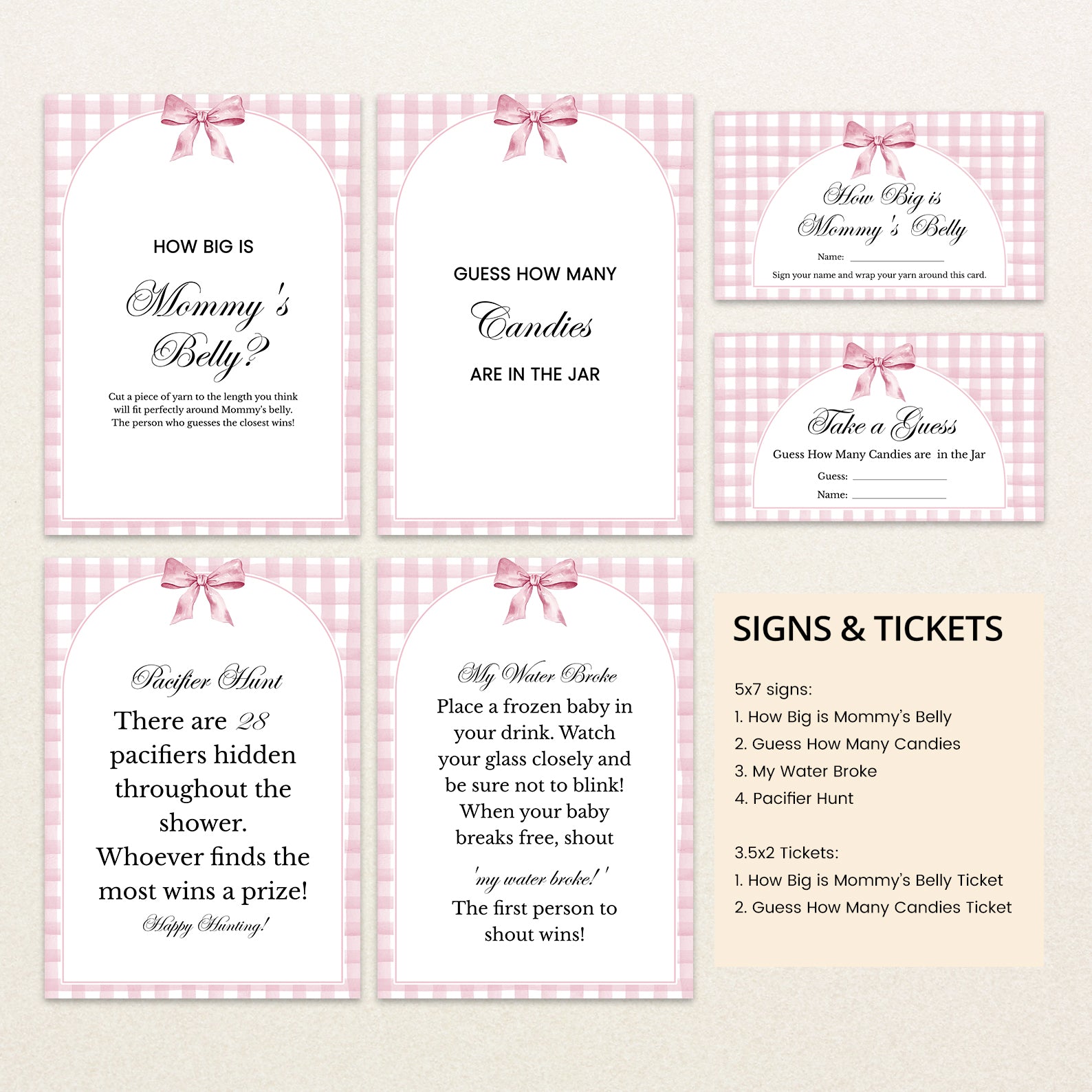 Pink Plaid Baby Shower Game Bundle with Arch & Ribbon Design