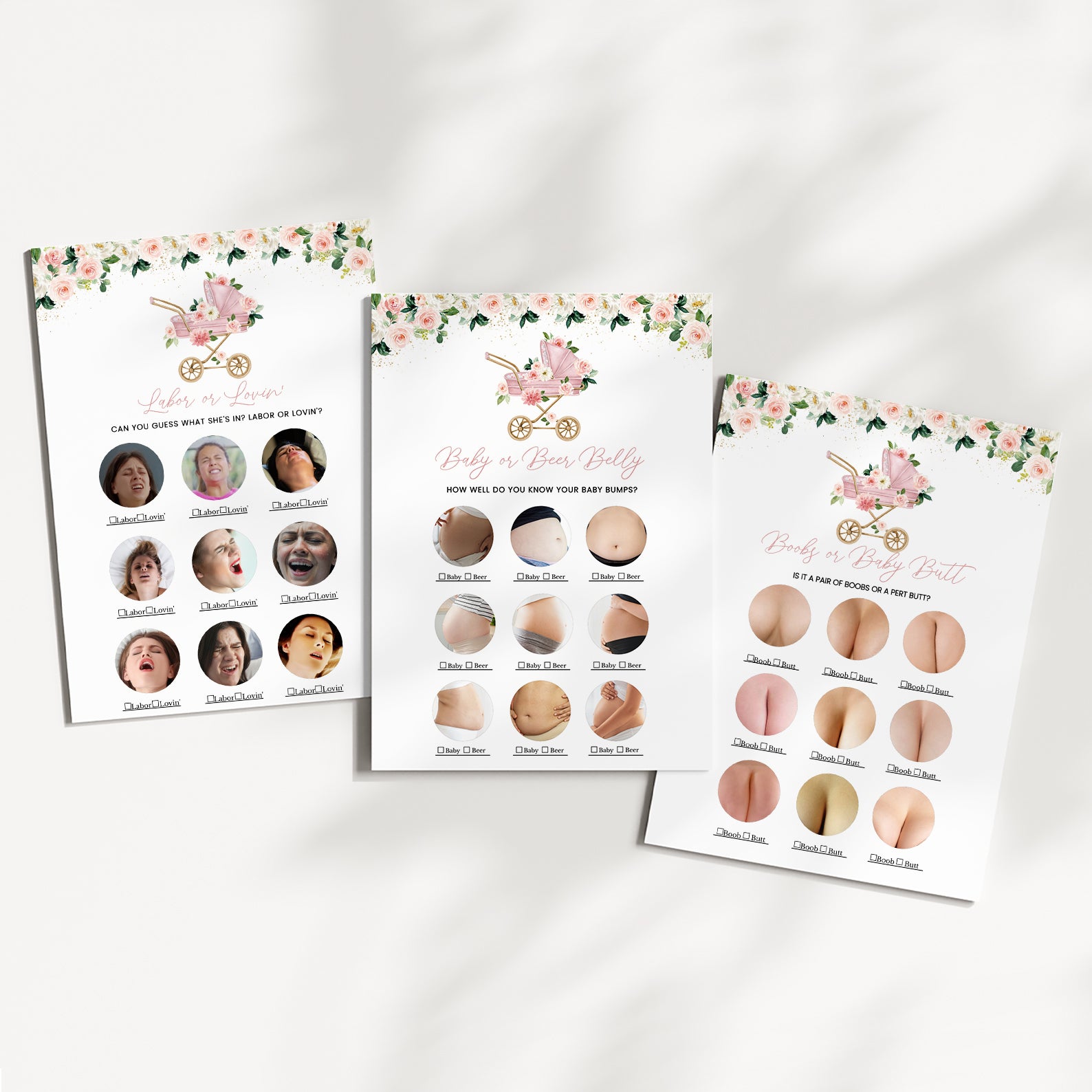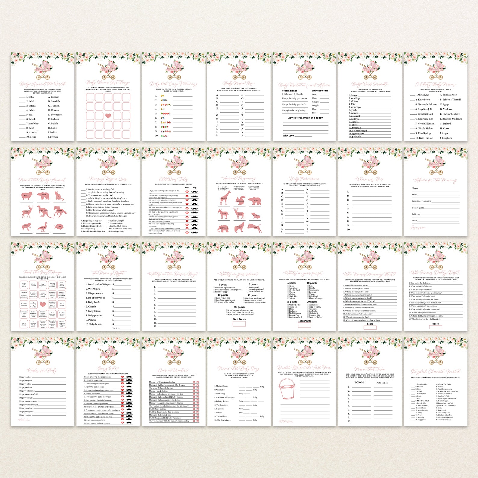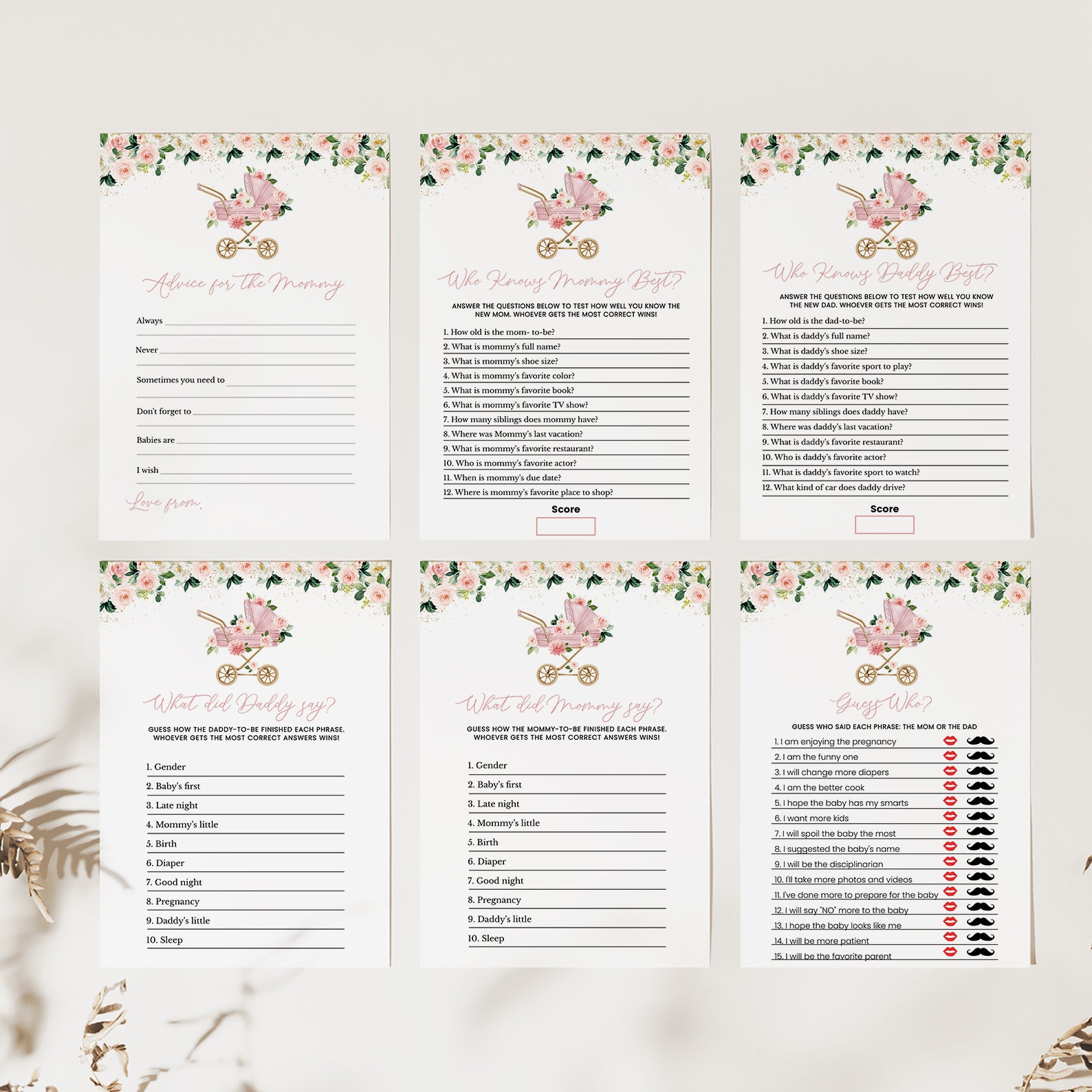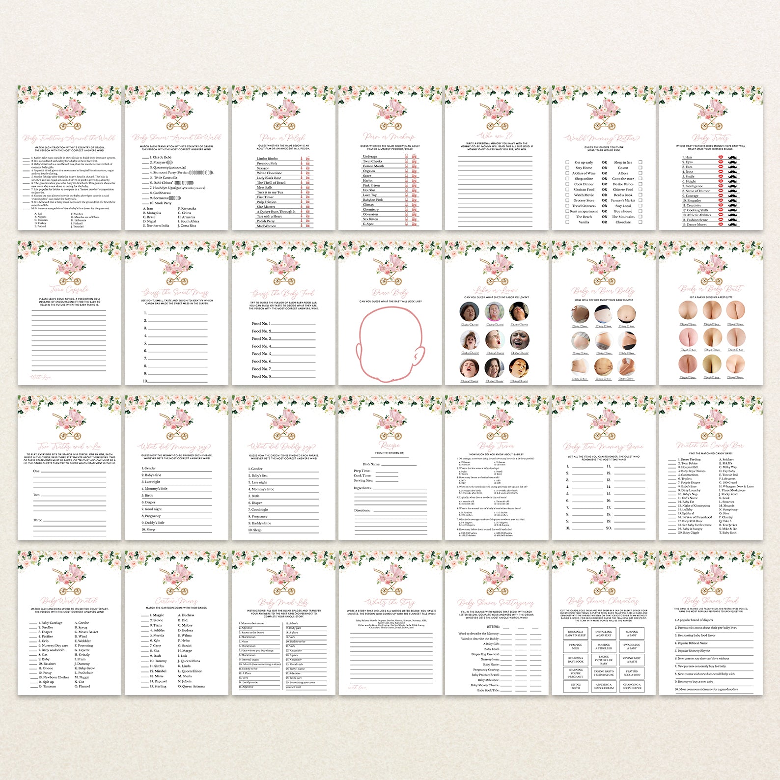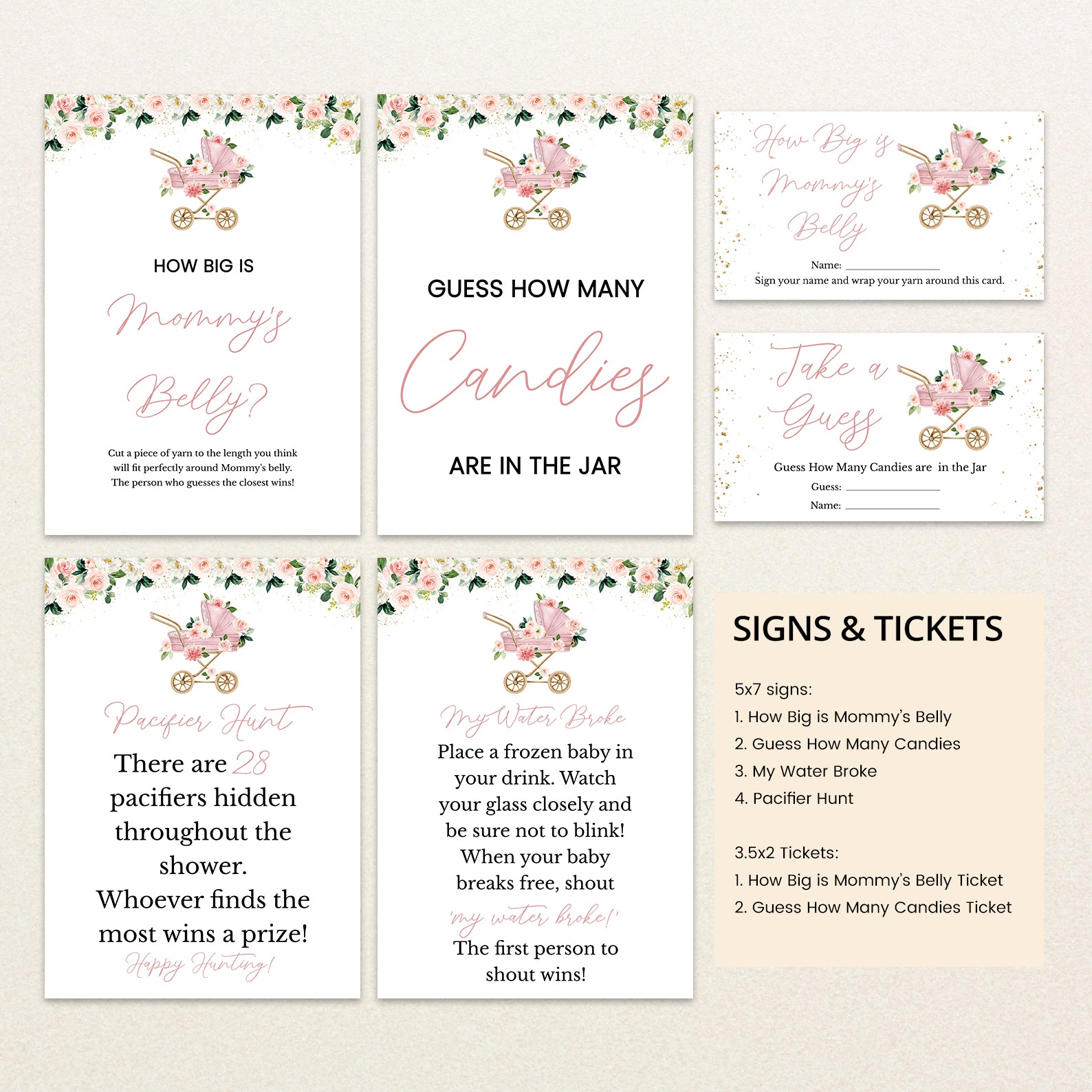 Pink Stroller Spring Baby Shower Digital Game Bundle with Florals