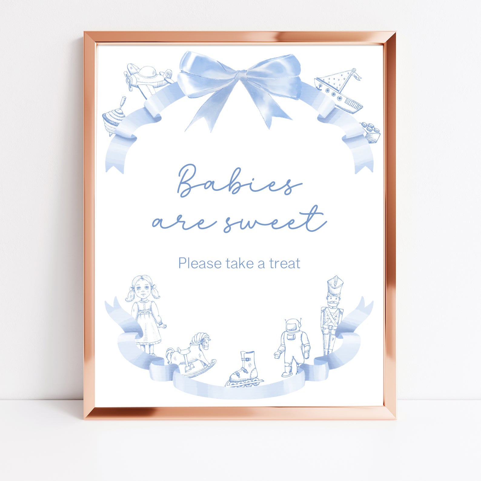 Blue Baby Shower Digital Table Sign: Toile de Jouy Toys