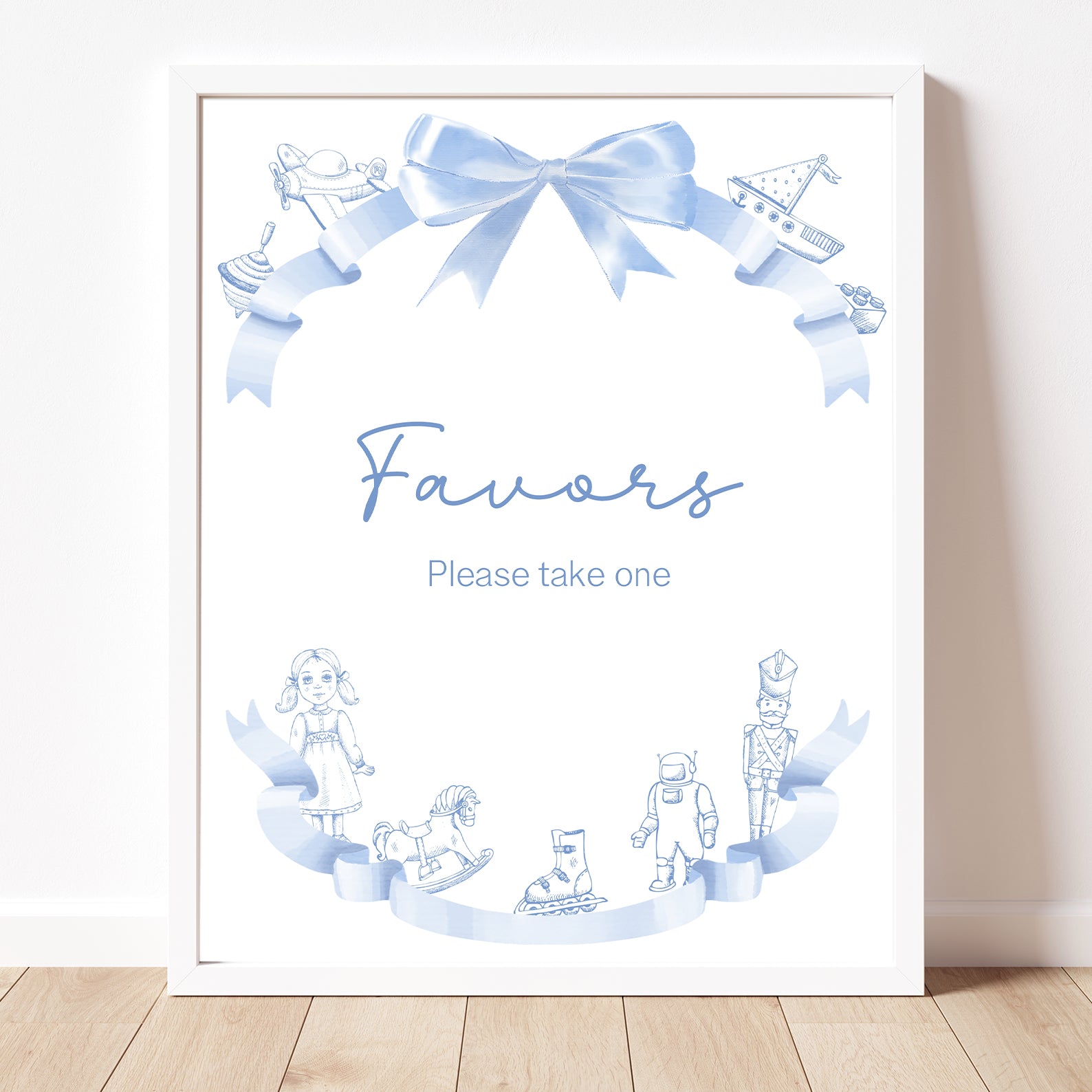 - Purchase this Blue Baby Shower Digital Table Sign: Toile de Jouy Toys template
