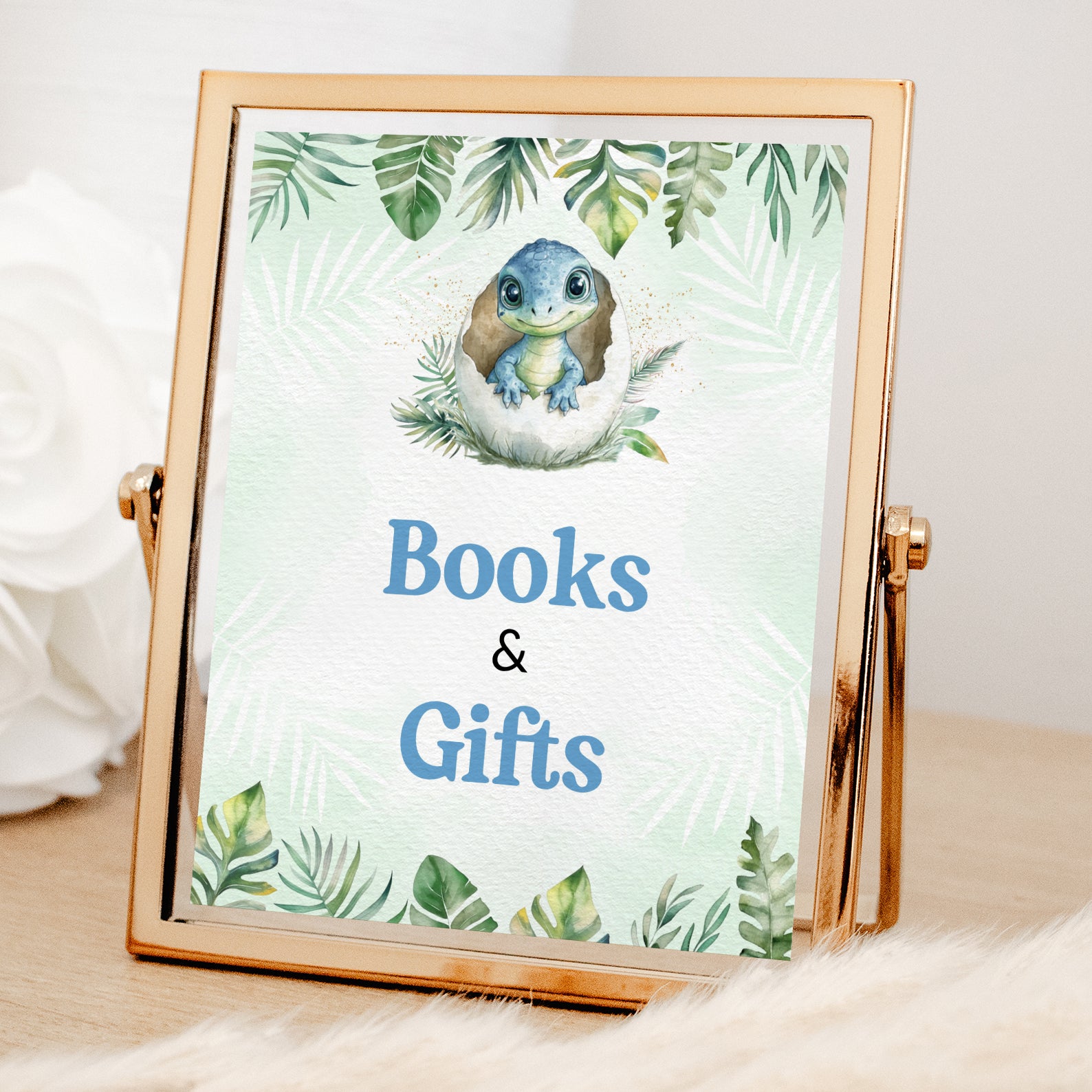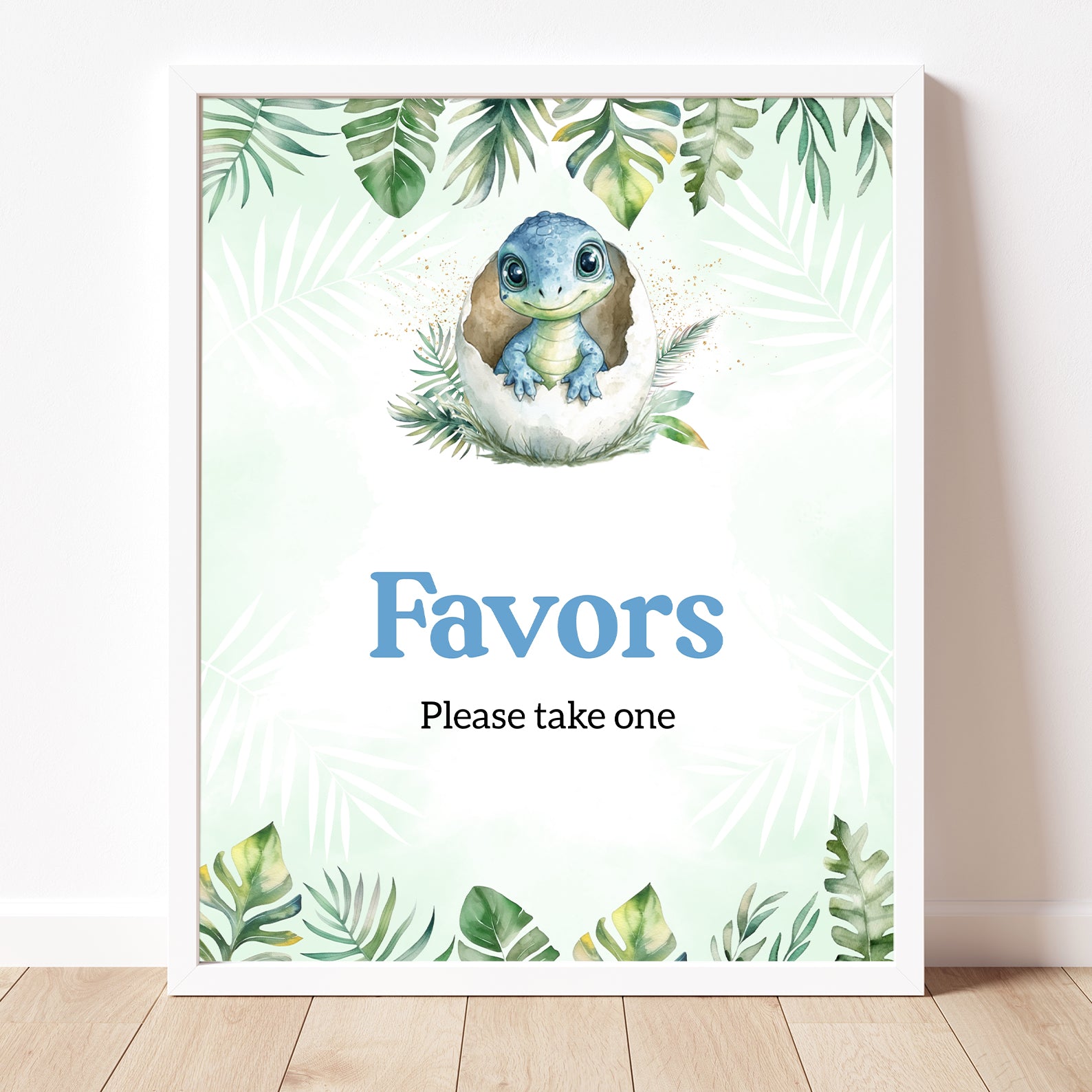 - Purchase this Hatching Soon Baby Shower Table Sign: Blue Dino & Leaves Theme template