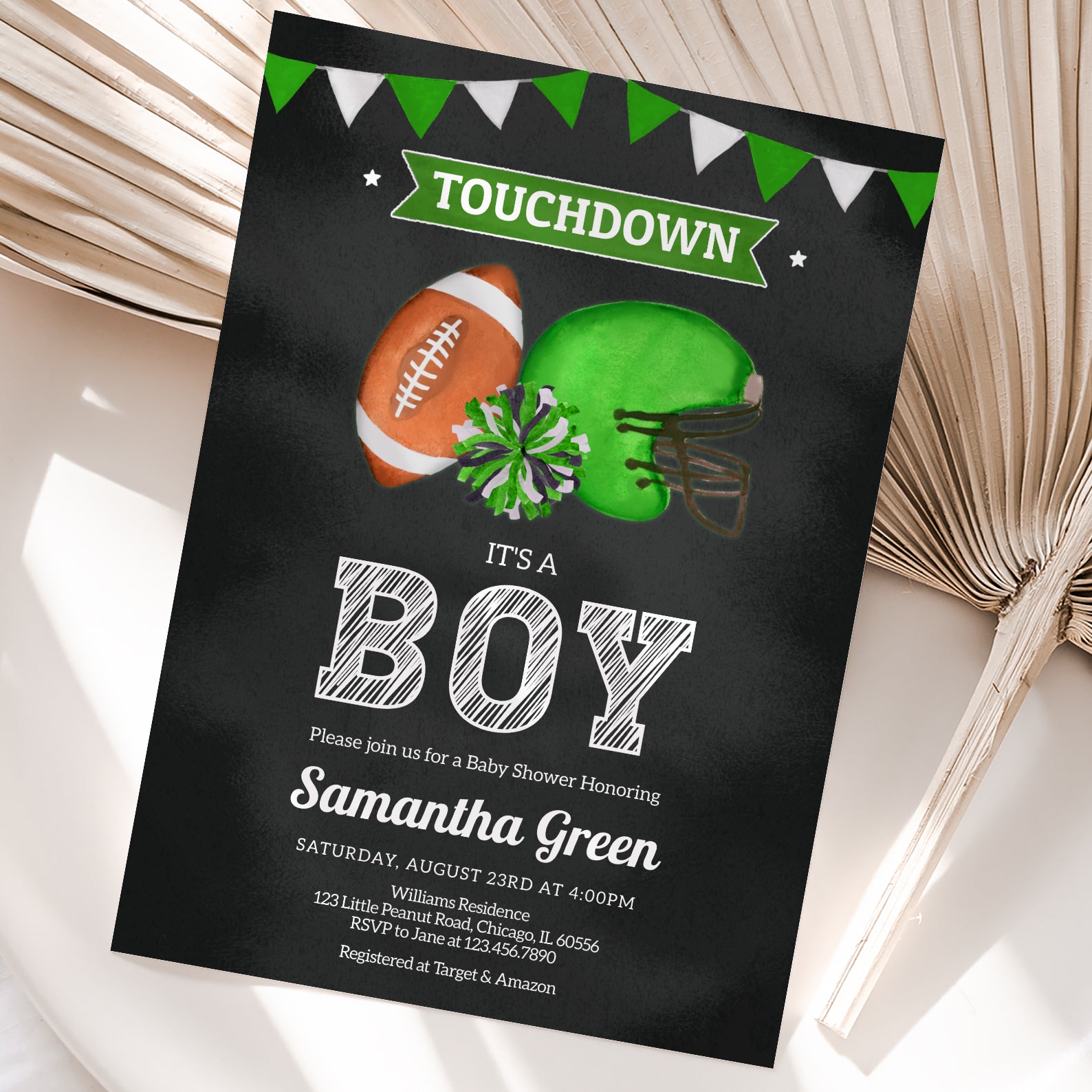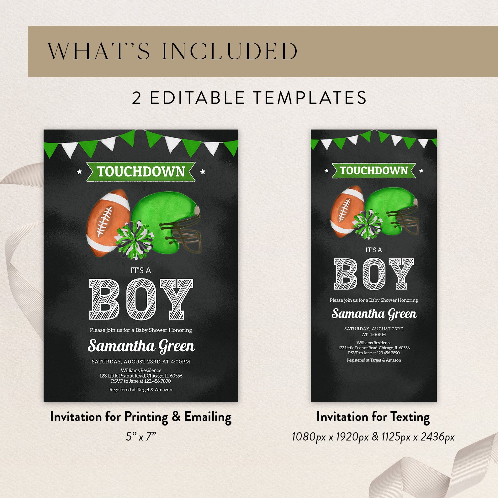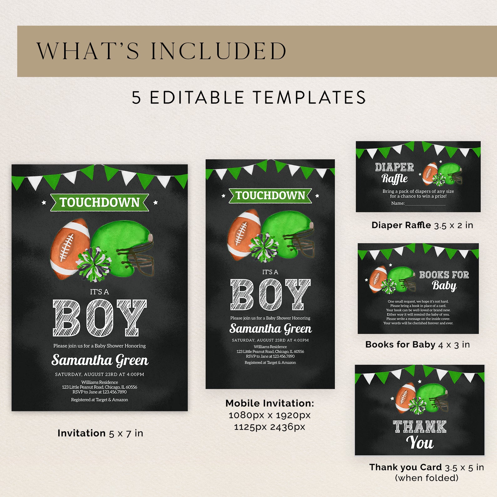 - Purchase this Touchdown Baby Shower Invite Bundle: Football Theme for Boy template