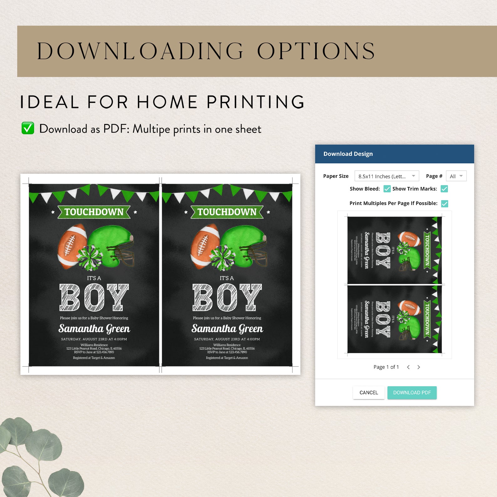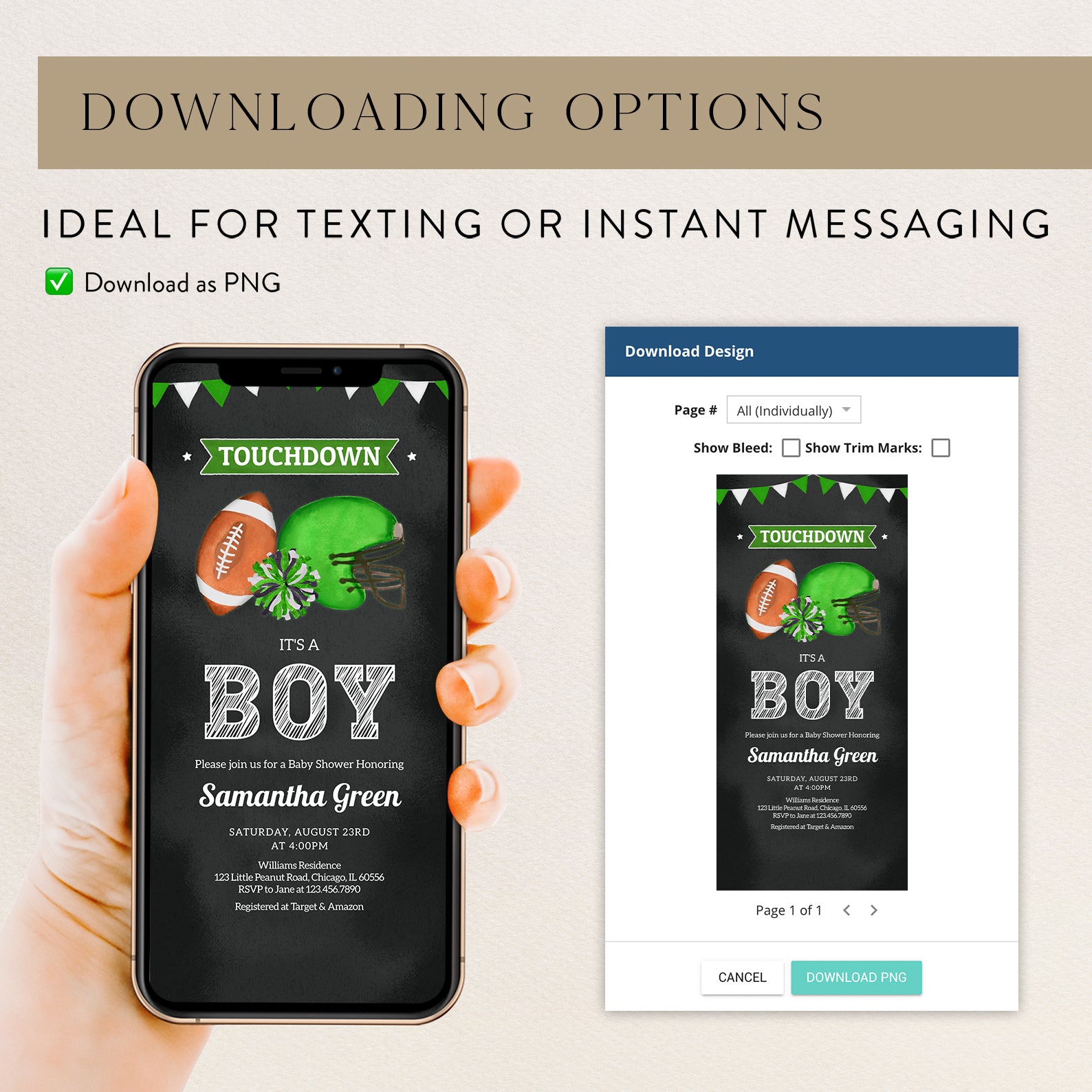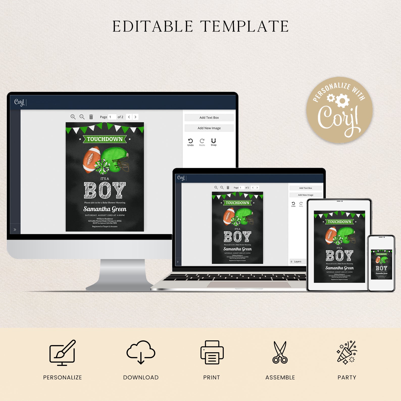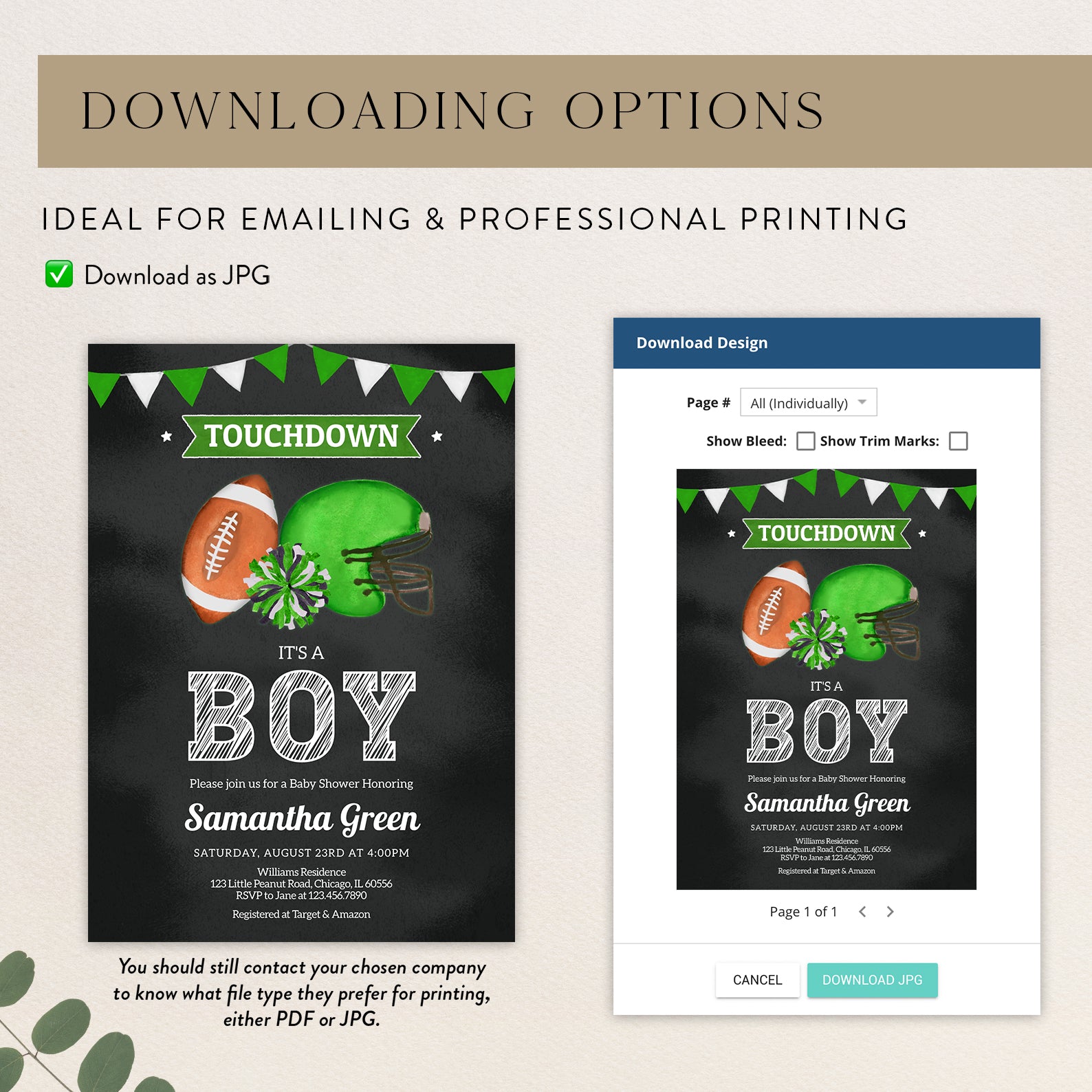 - Purchase this Touchdown Baby Shower Invite Bundle: Football Theme for Boy template