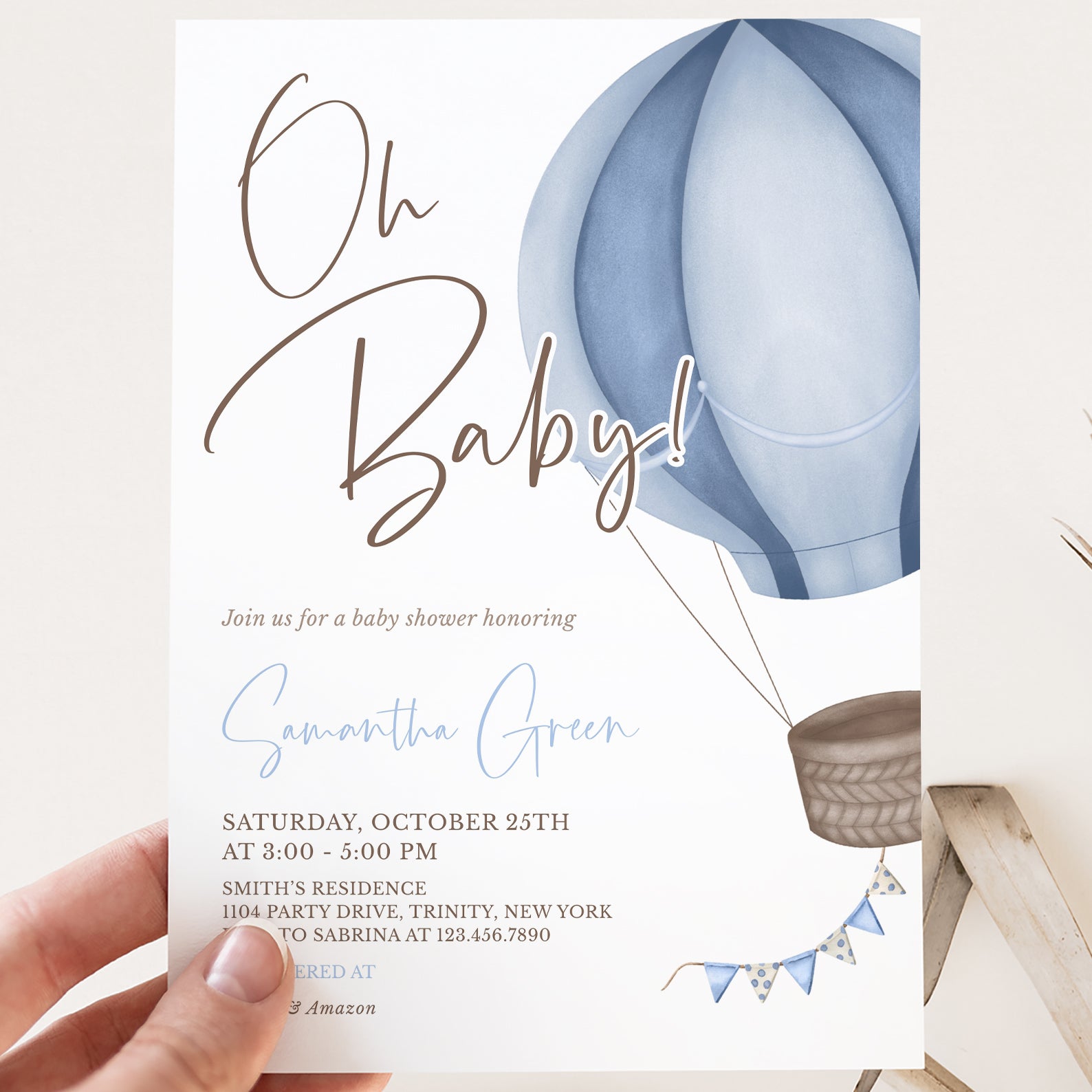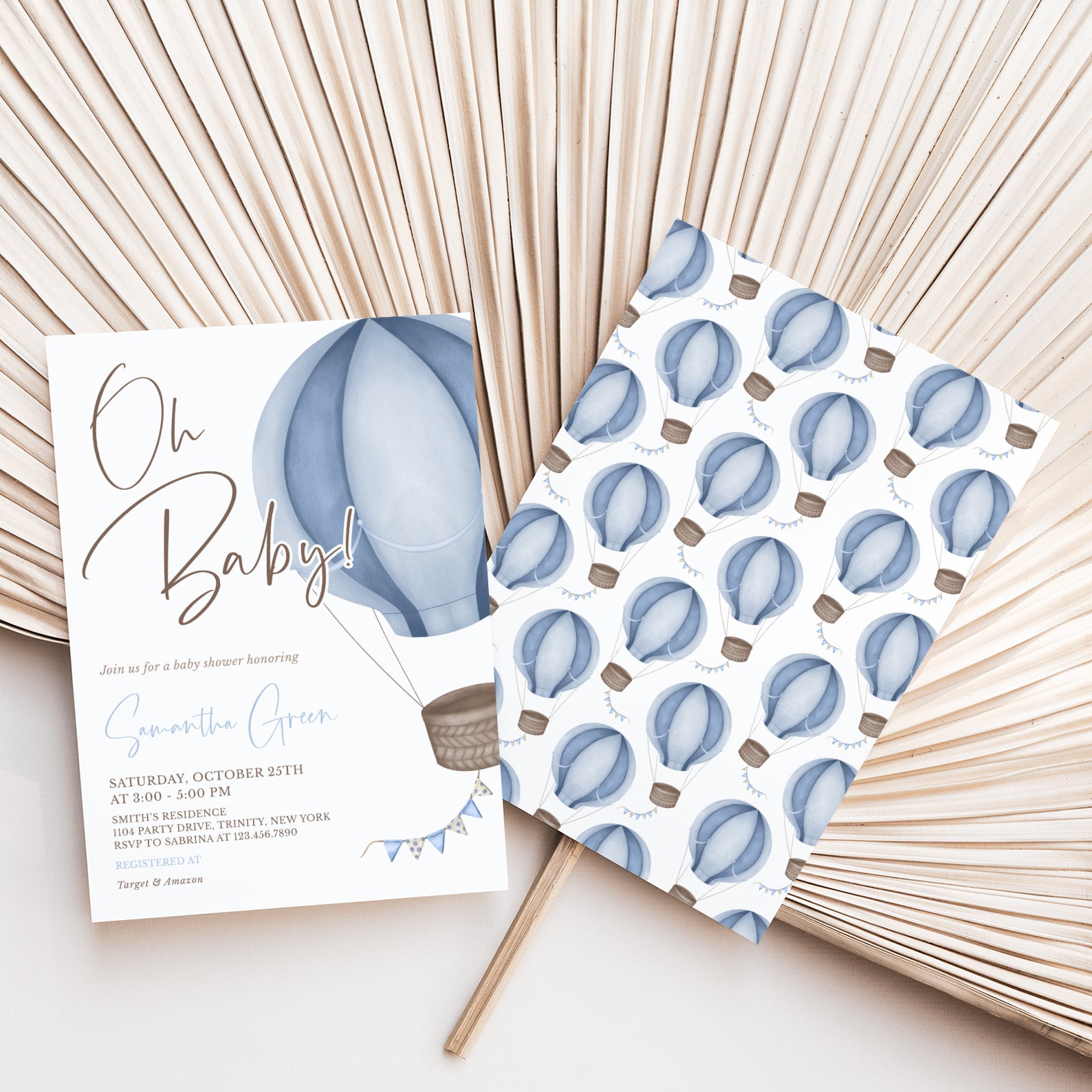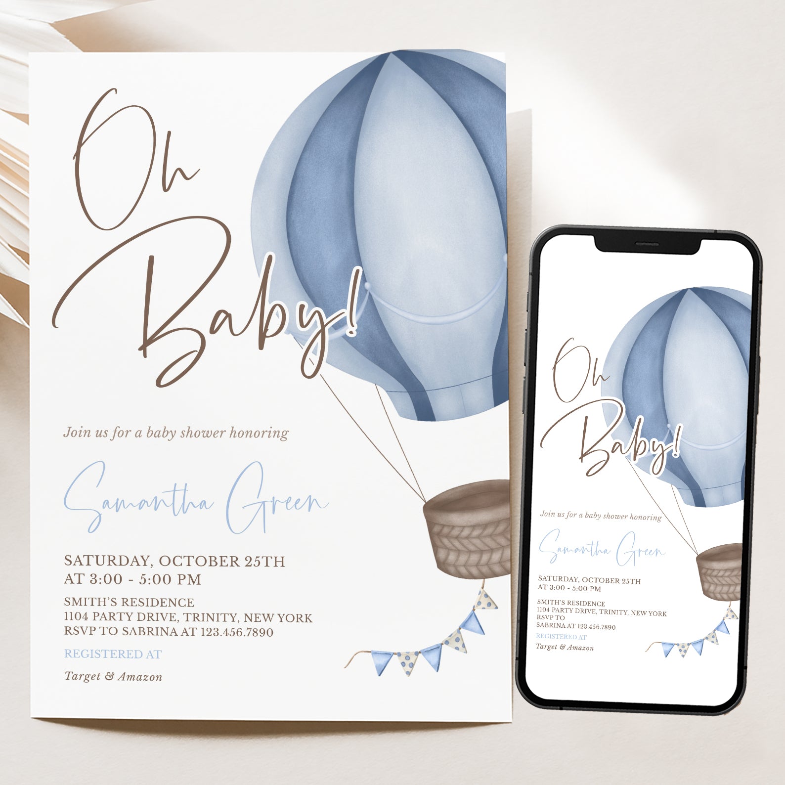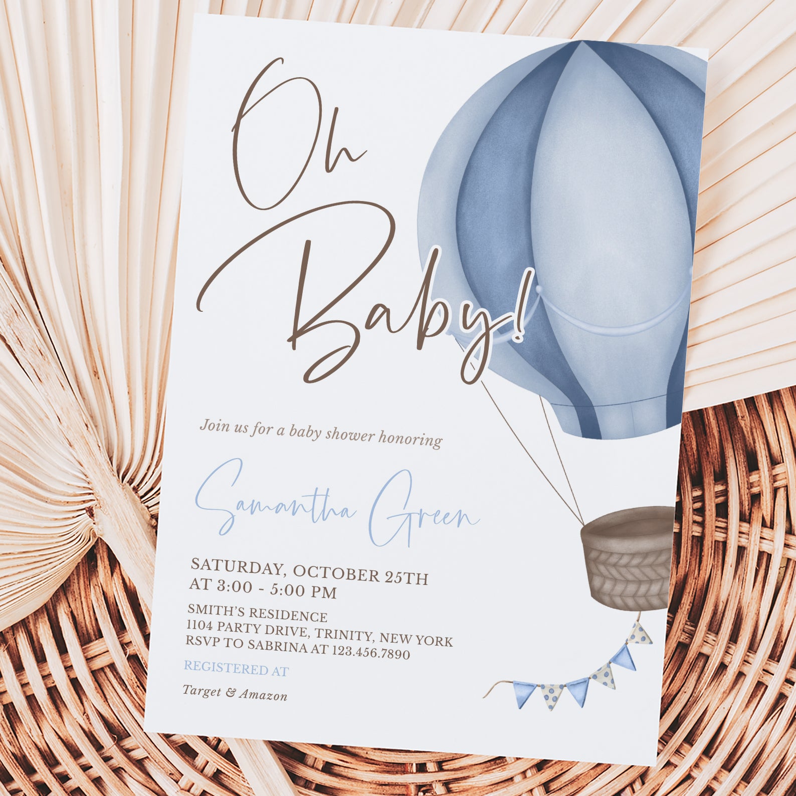 - Purchase this Oh Baby Hot Air Balloon Invite: Blue & Brown Baby Shower template