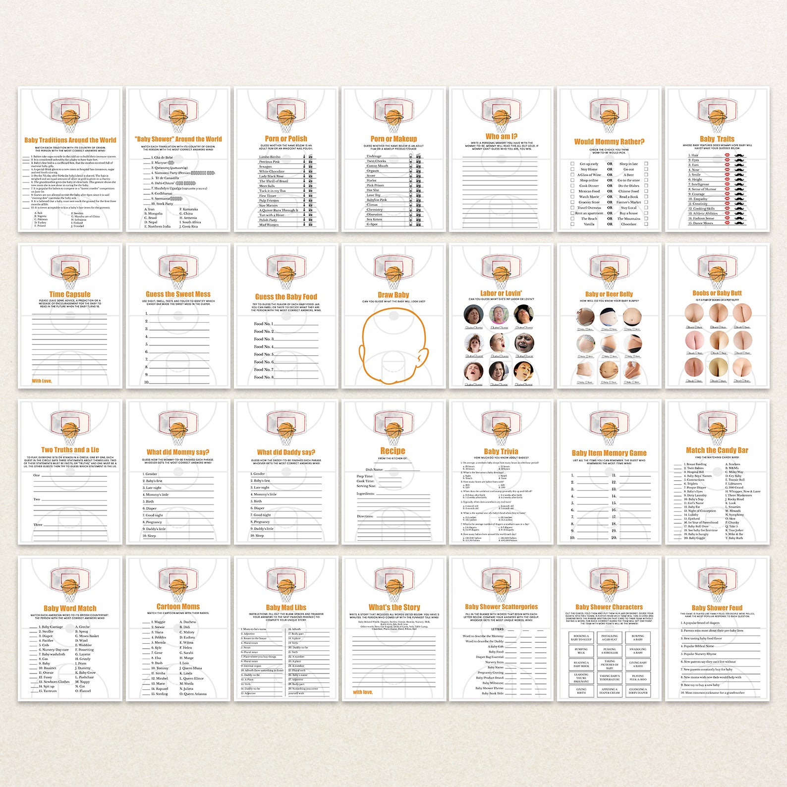 - Purchase this Our Little Champ Baby Shower Game Bundle: Basketball Theme template