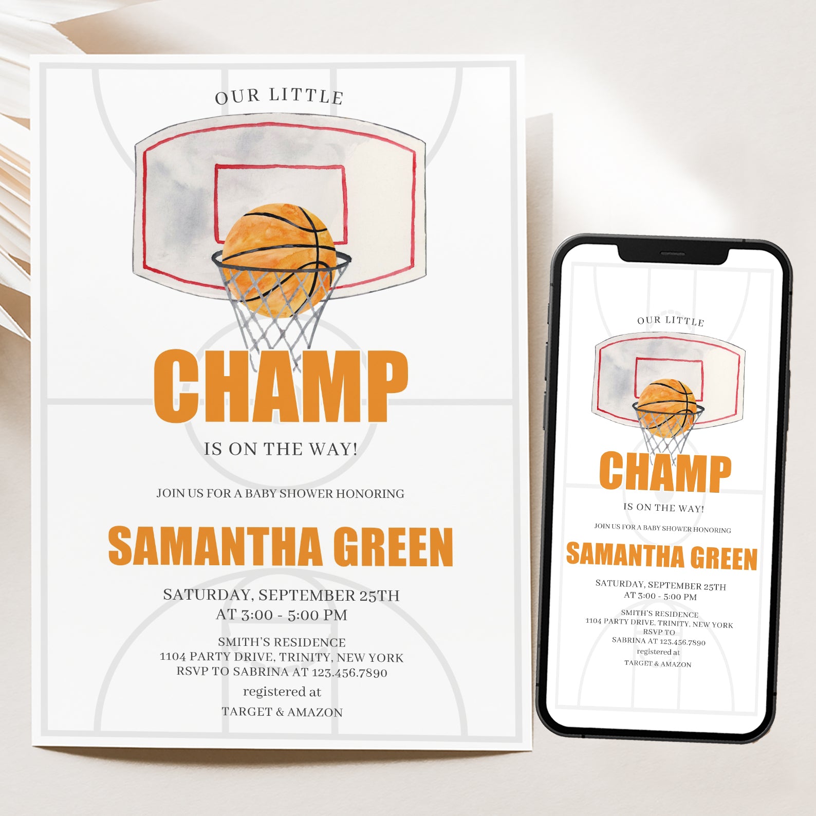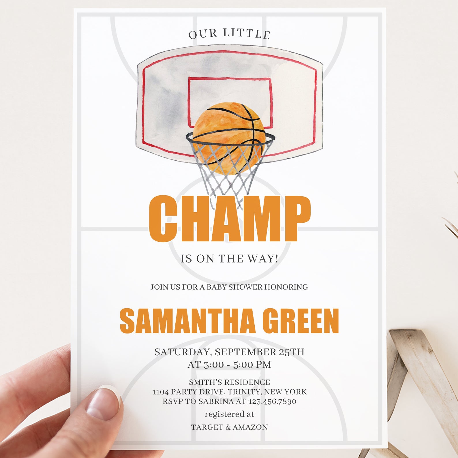 Our Little Champ Baby Shower Invite: Basketball Theme