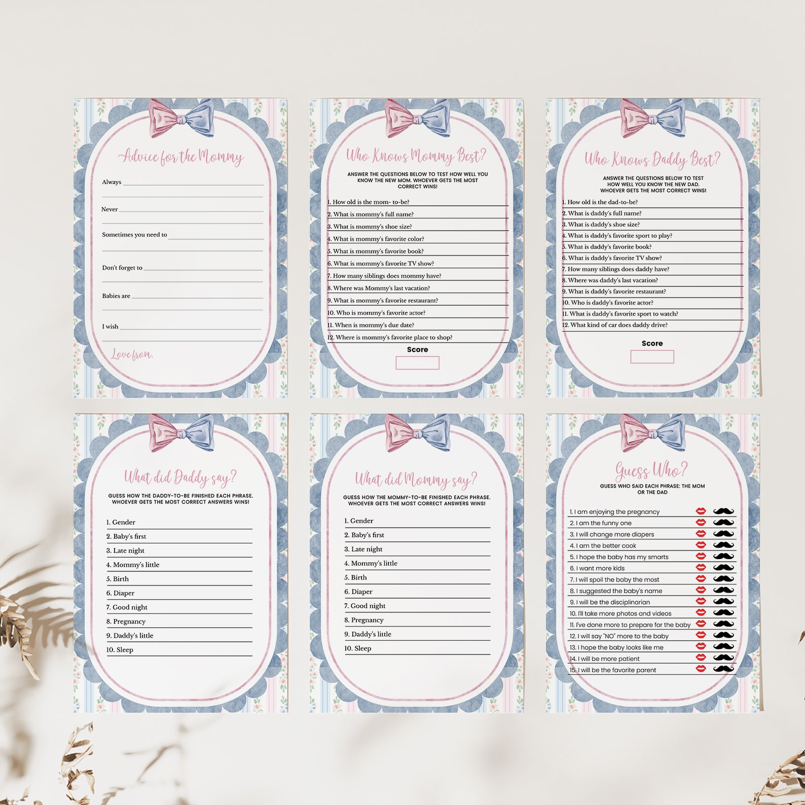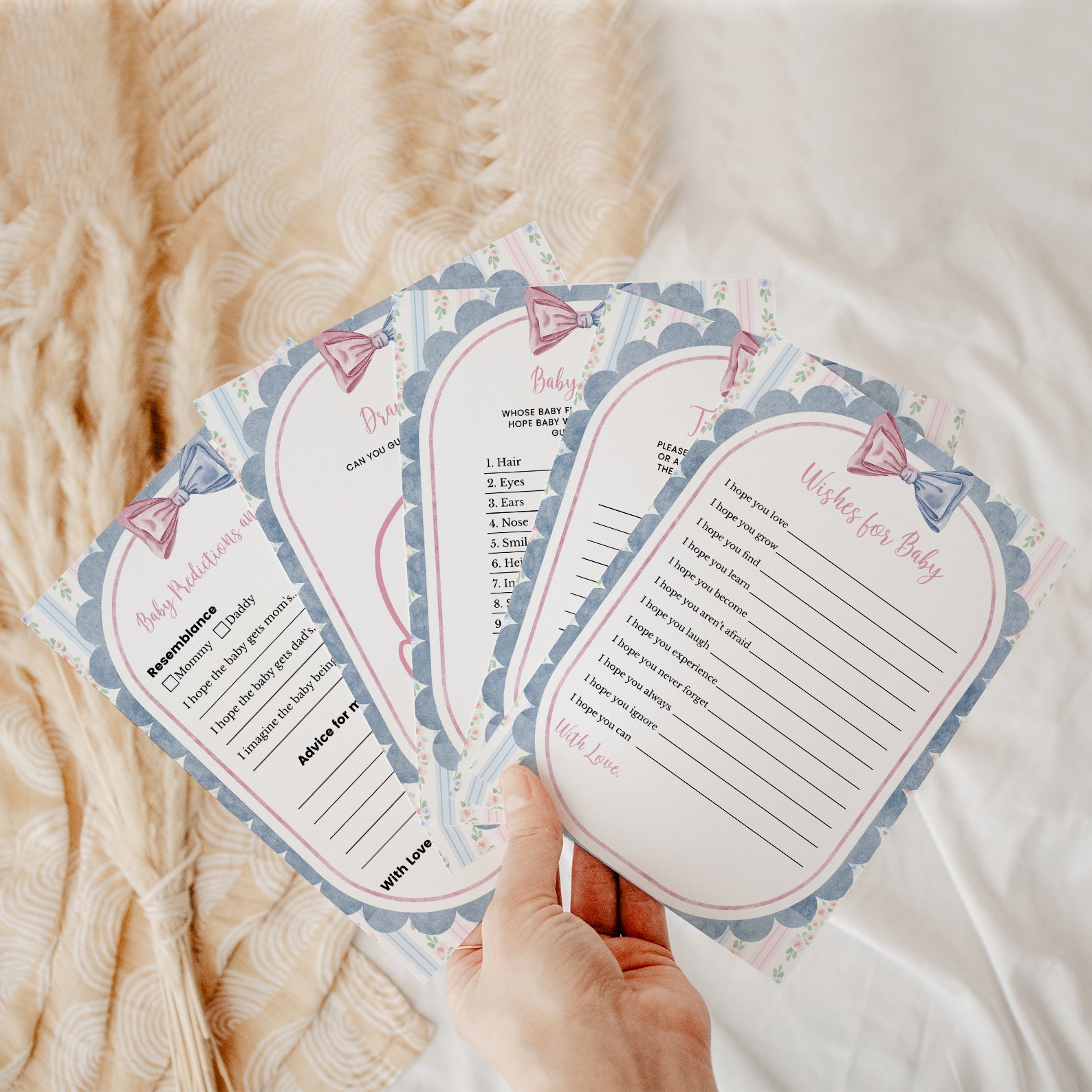 Pastel Floral Baby Shower Game Bundle with Ribbon & Scallops