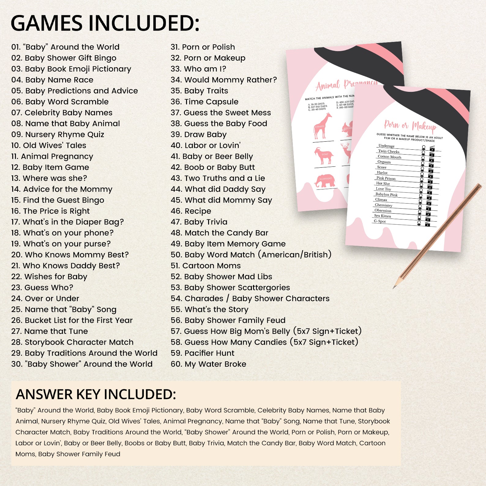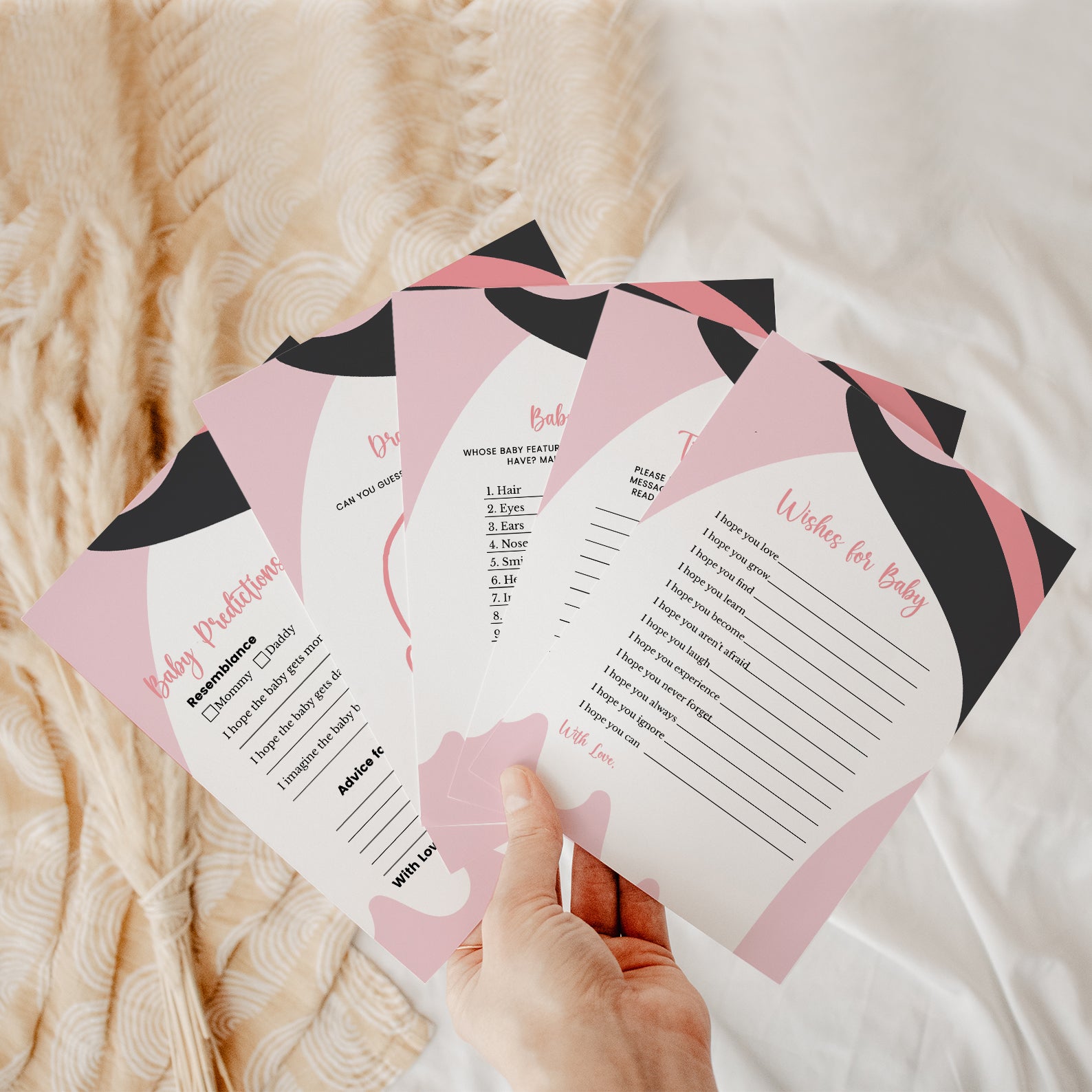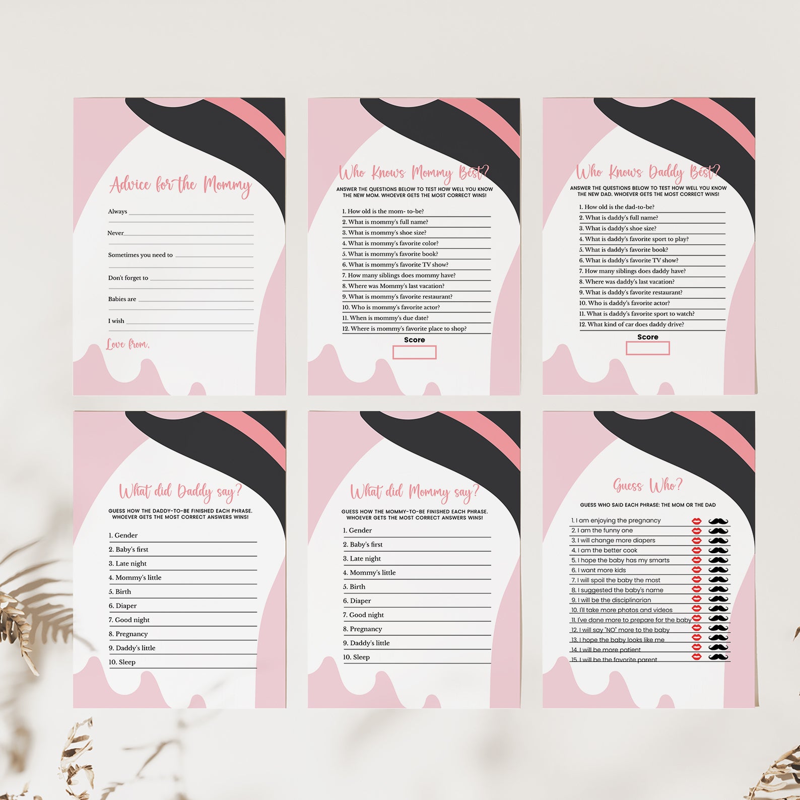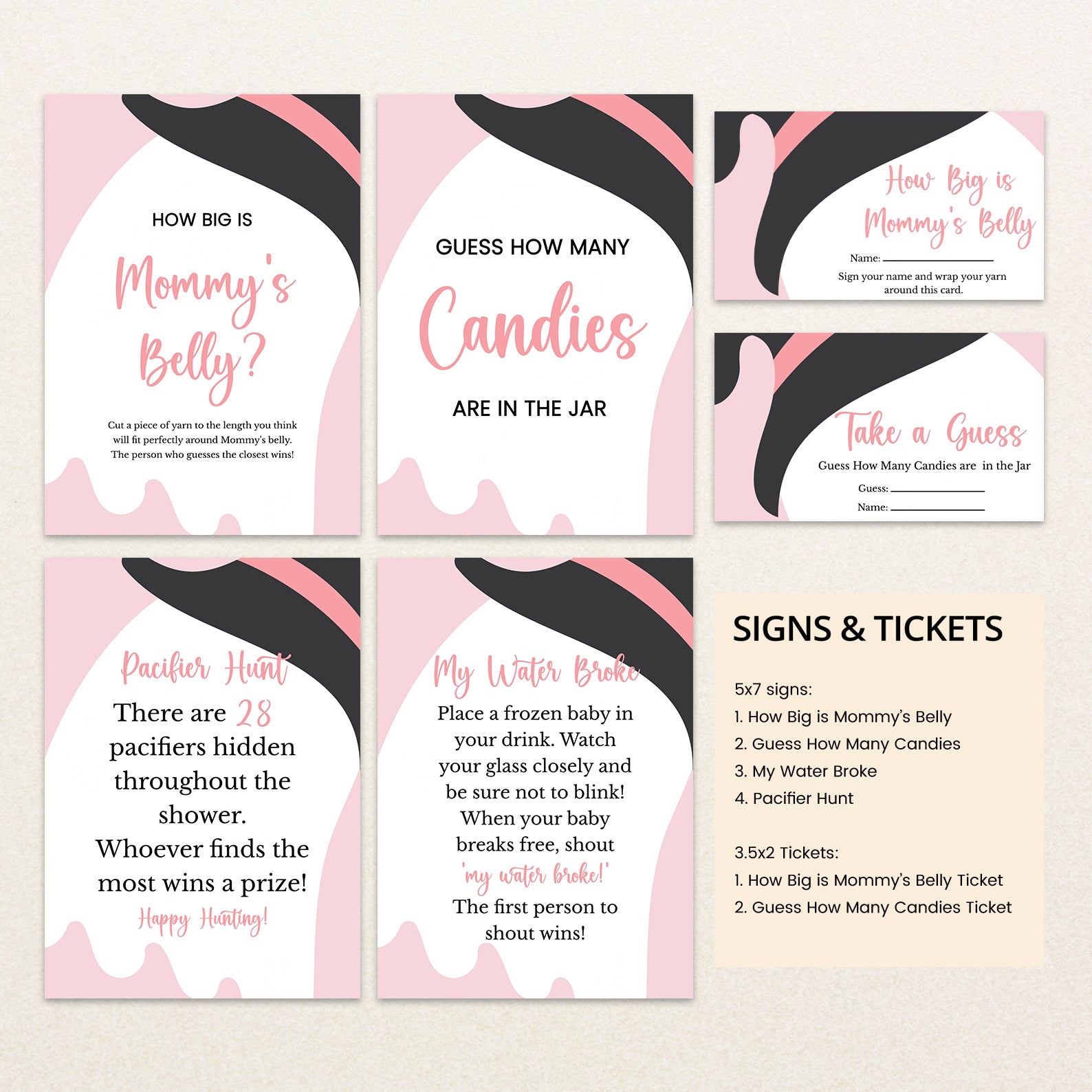Bring extra fun to your Halloween baby shower with this bundle of 60 editable baby shower games! Featuring a charming pink theme with playful Halloween touches—like a sweet ghost in a black and pink witch hat—these printable games are both festive and easy to customize. From classics like Baby Bingo to fun icebreakers, this set adds spooky charm and interactive joy to your little boo’s celebration.